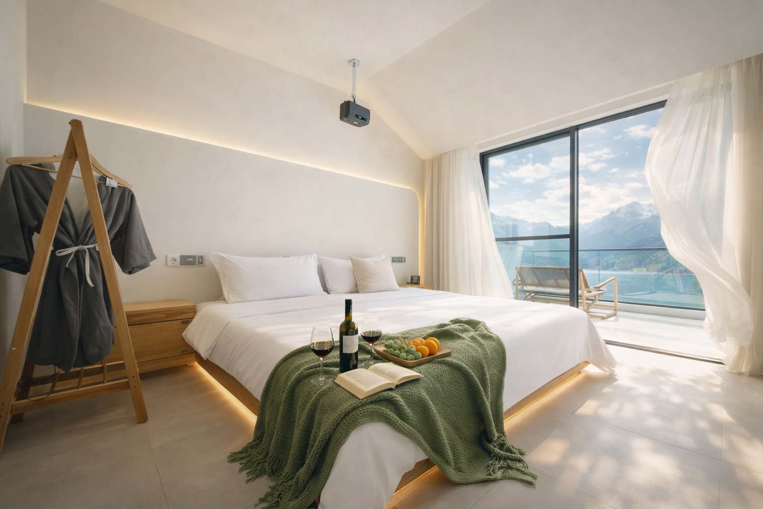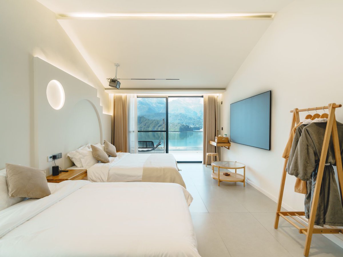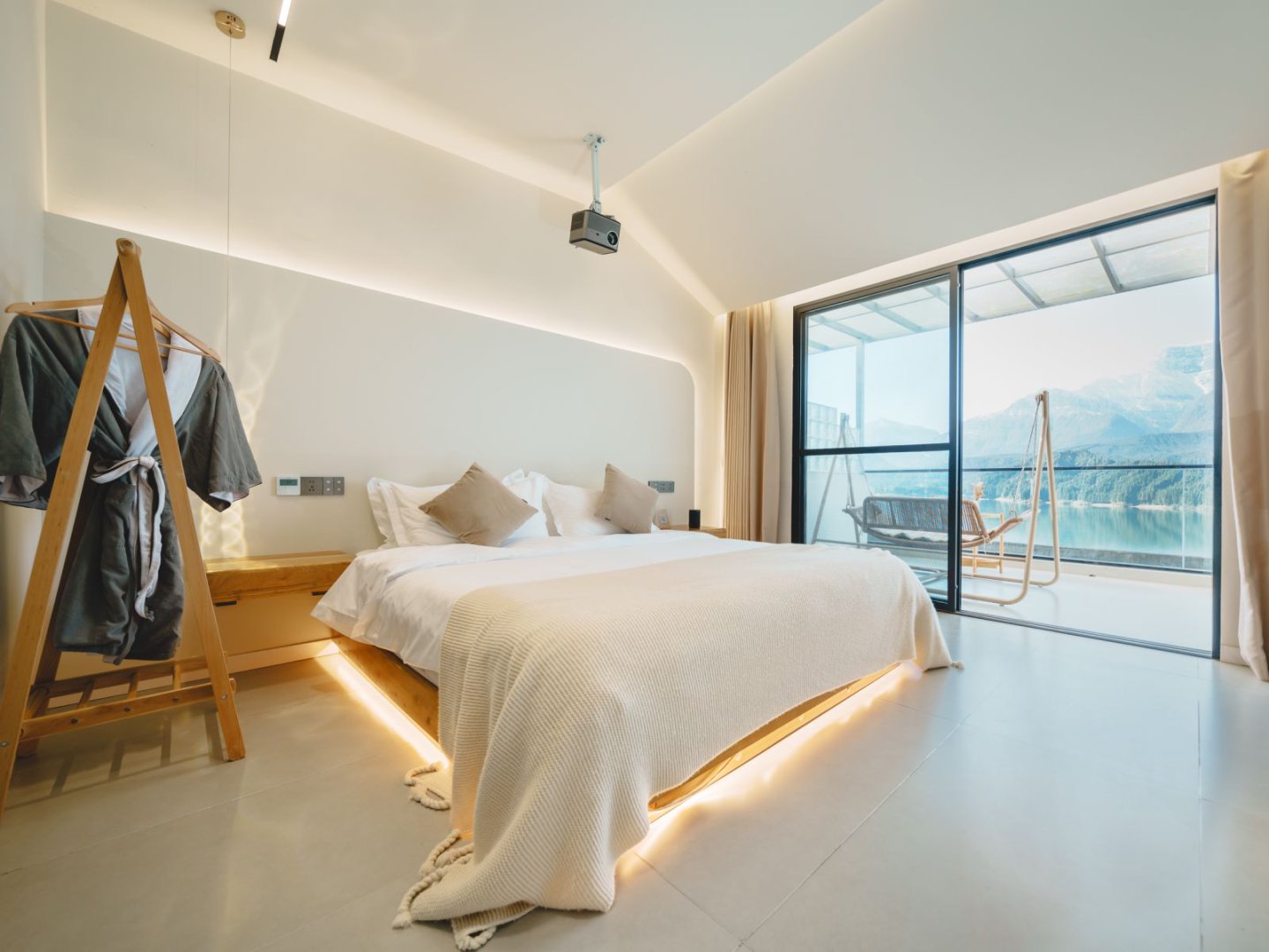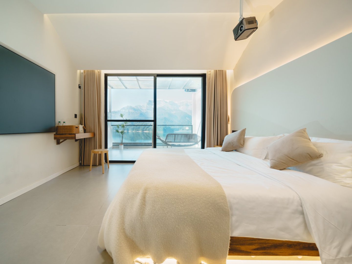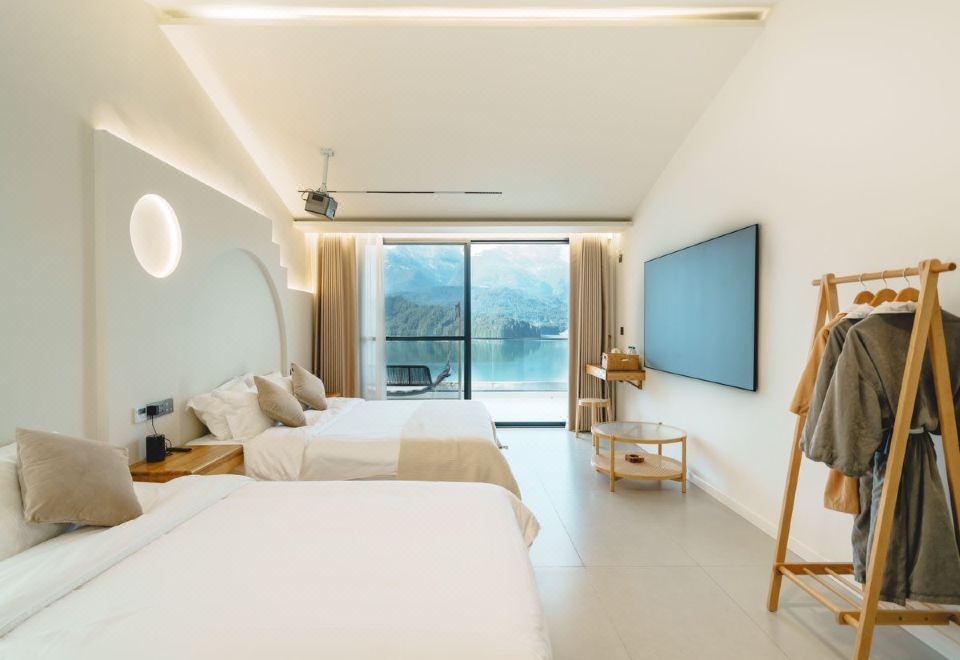 梦港家庭房丨山湖景露台-百寸投影-乳胶床垫-智控-空调