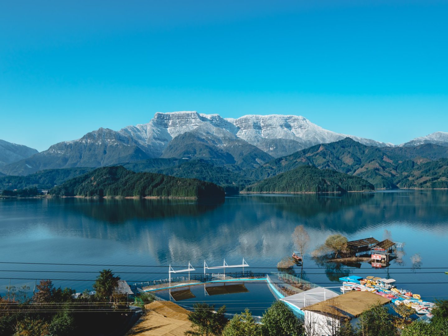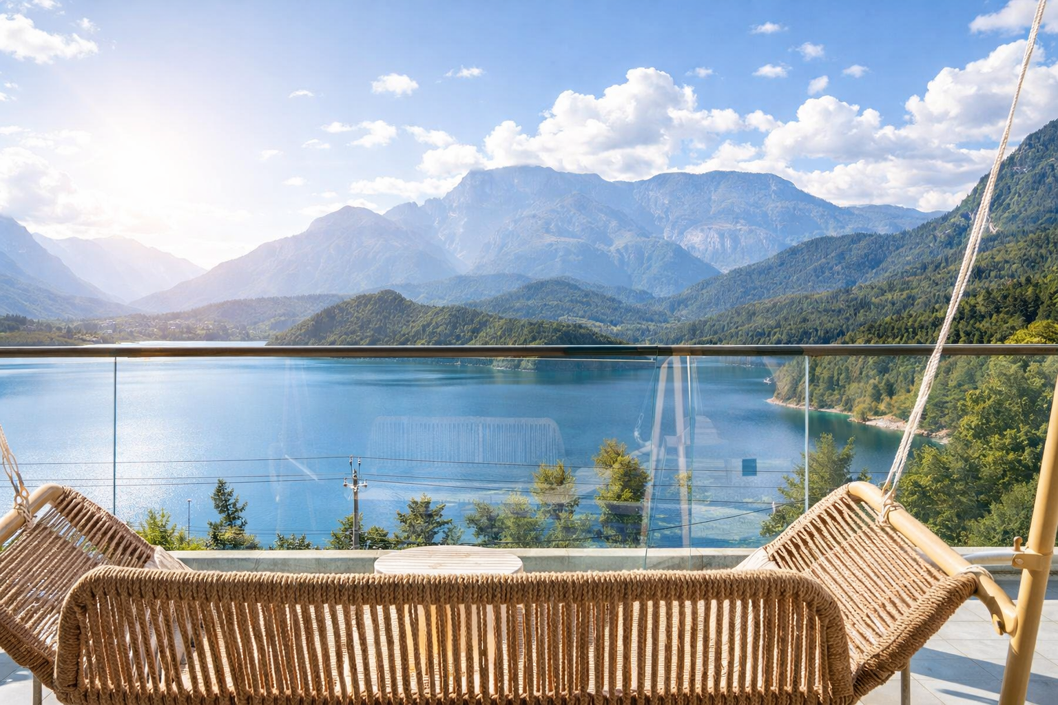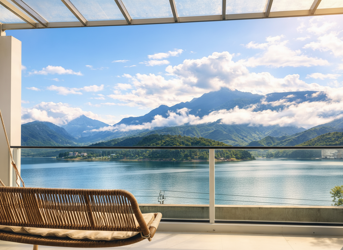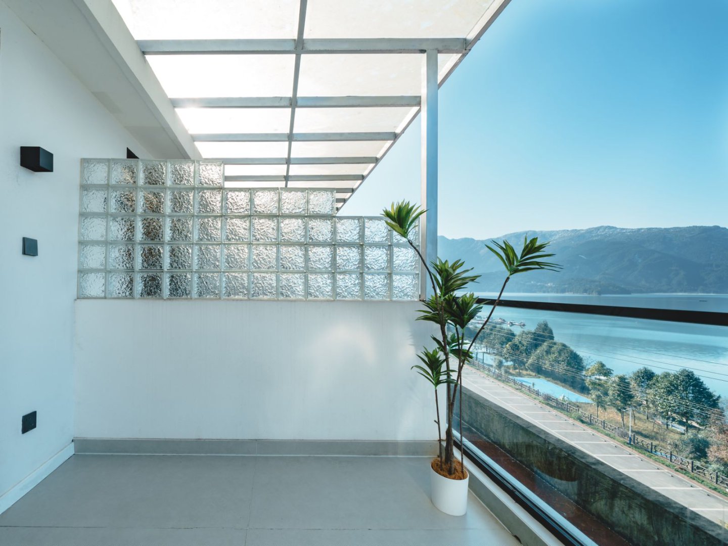 梦港家庭房丨山湖景露台-百寸投影-乳胶床垫-智控-空调