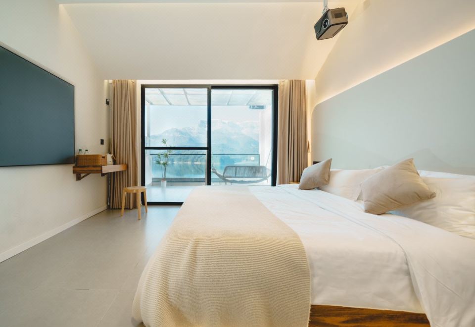 楠溪大床房丨山湖景露台-百寸投影-乳胶床垫-智控-空调