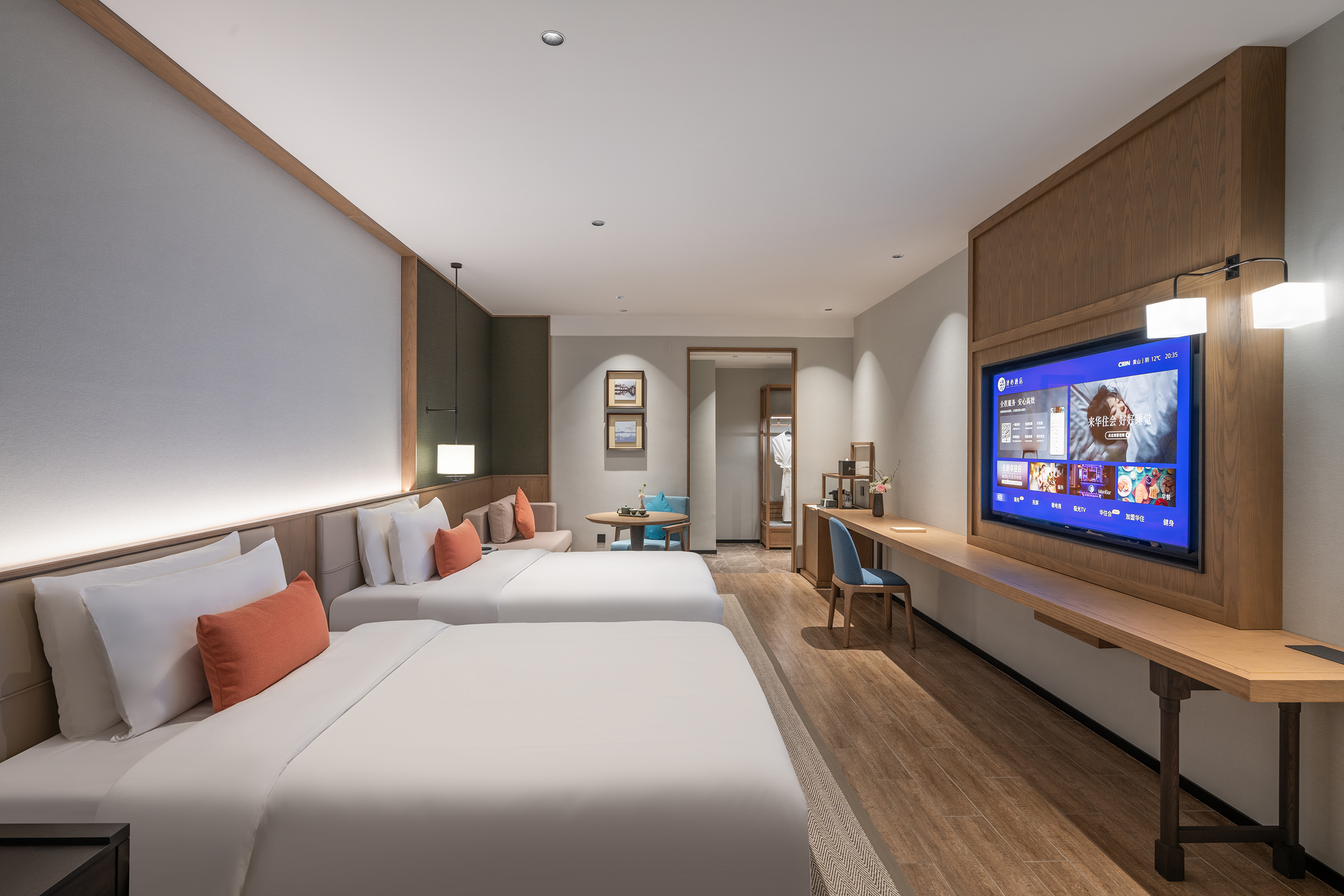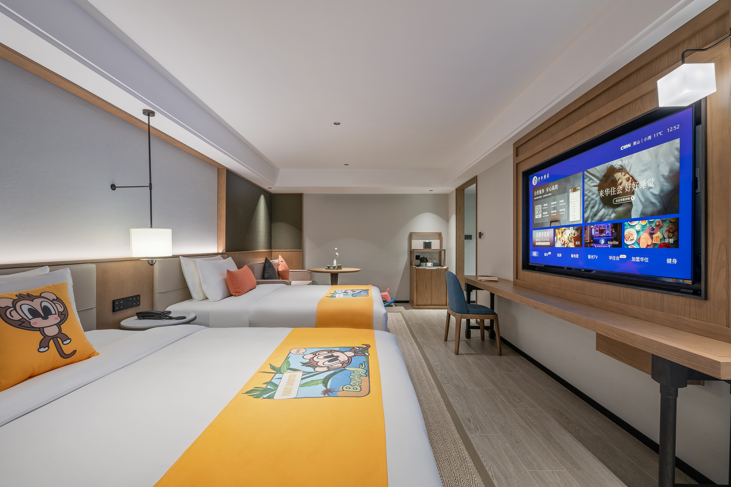 心悦高级双床房(冰箱+KINGKOIL床垫+65寸可投屏电视+徕芬高速吹风机)