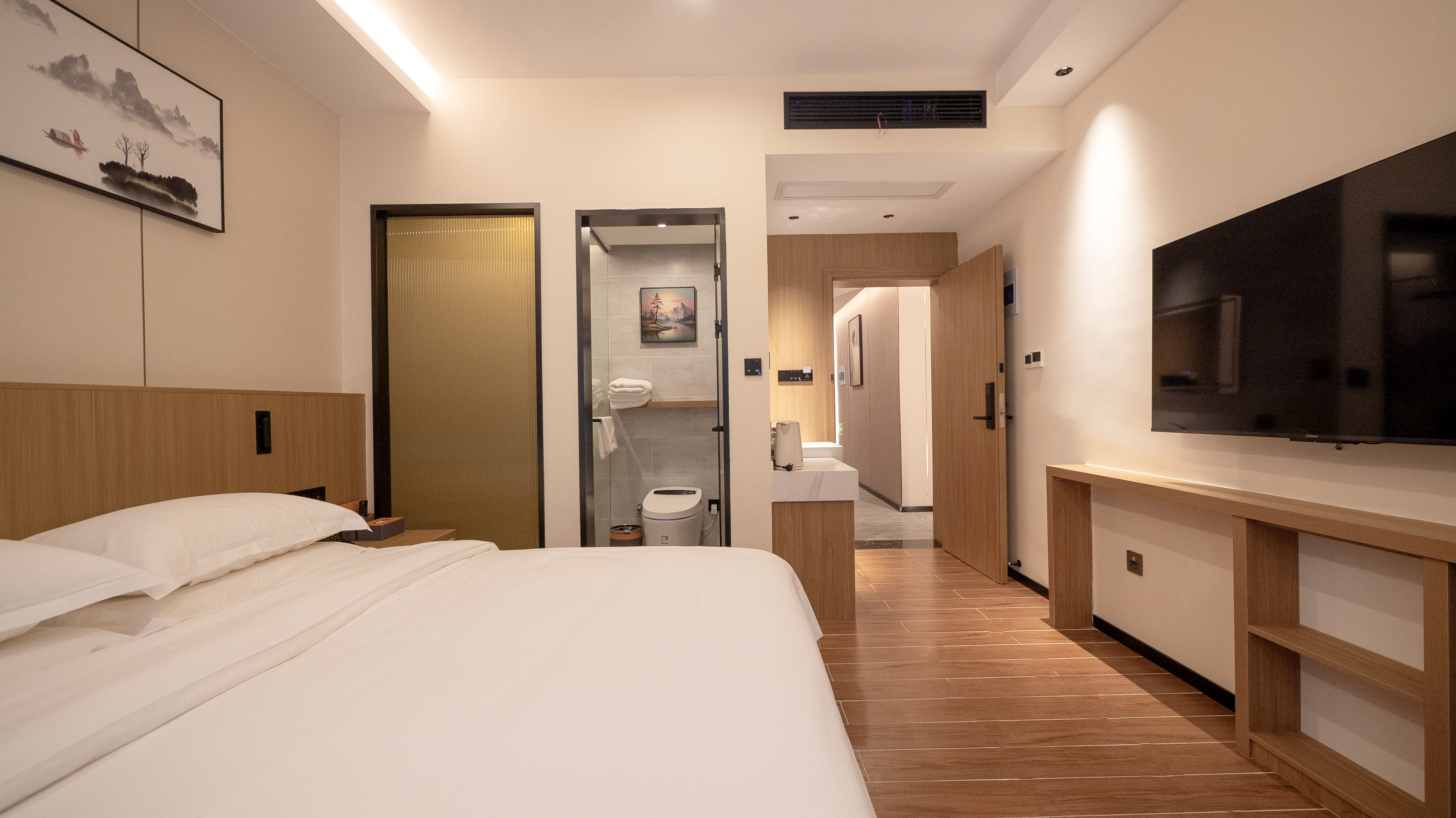 特惠大床房+55寸投屏电视+迷你冰箱+梦百合零压床垫+智能衞浴