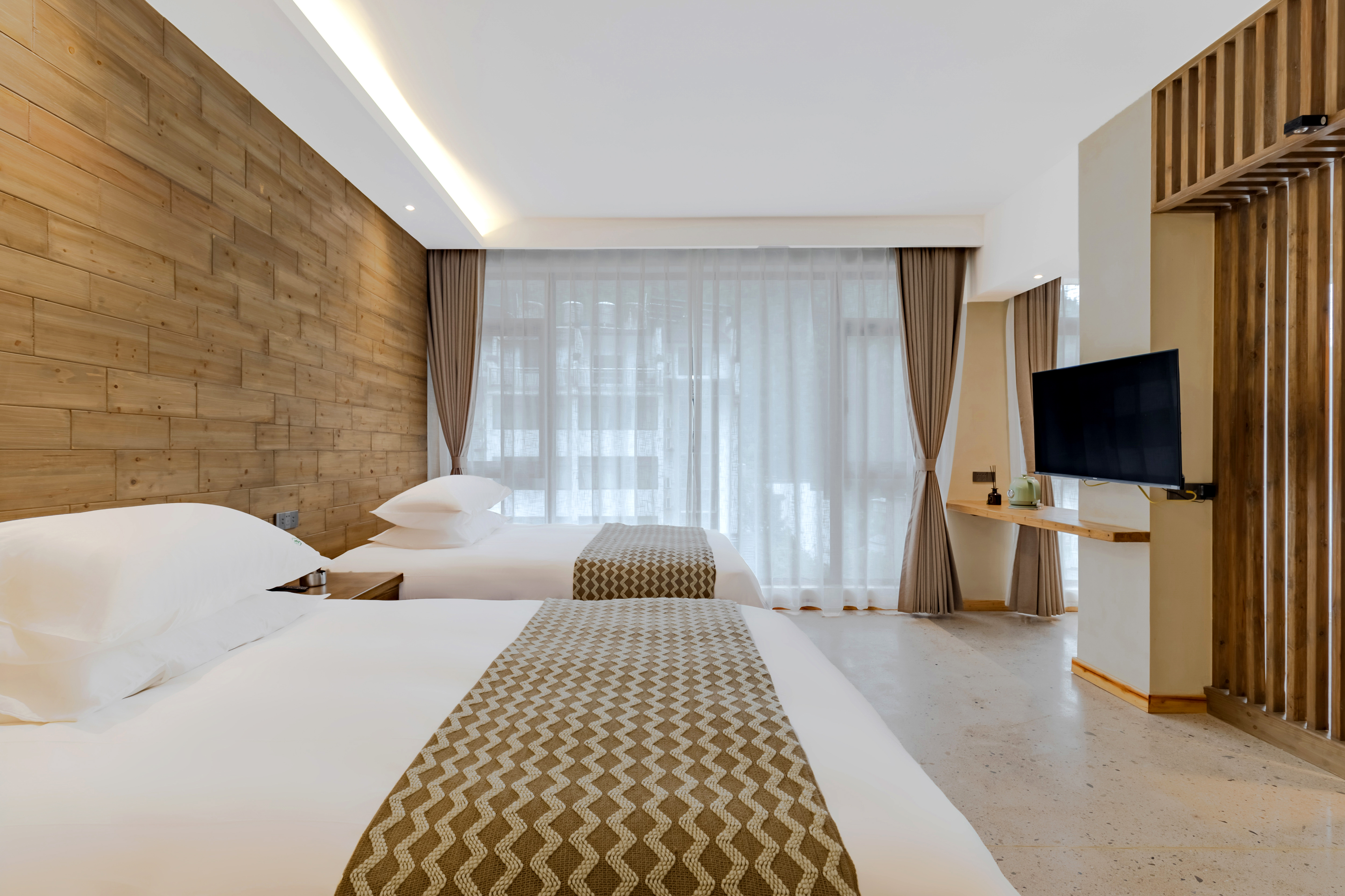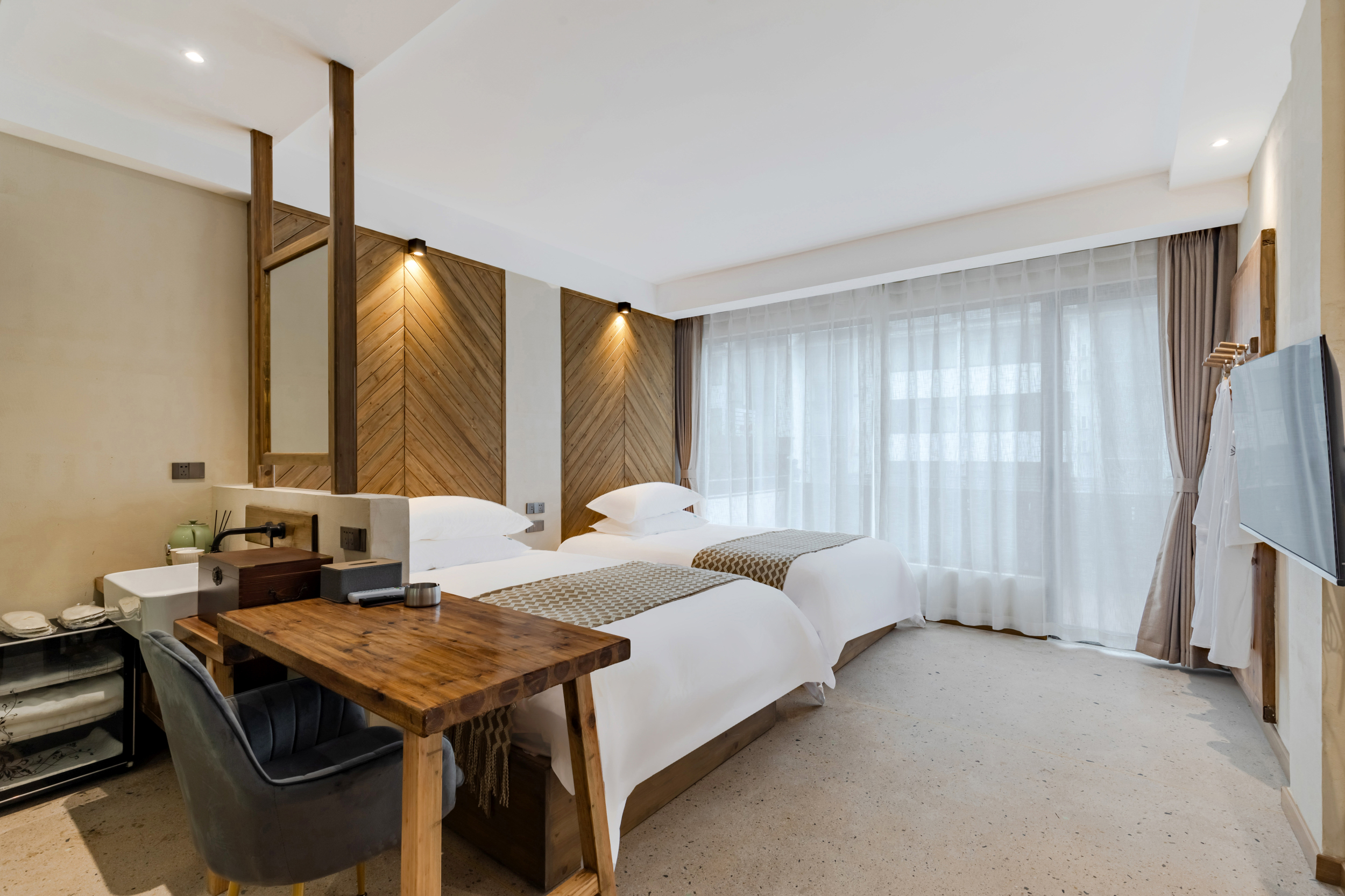 问安·侘寂风豪华双床套房|地暖中央空调+定制床垫+智能马桶