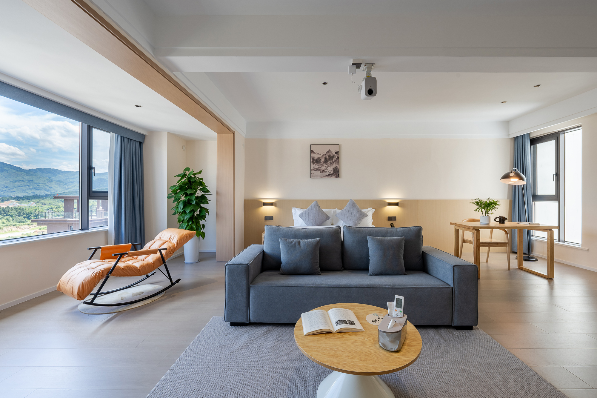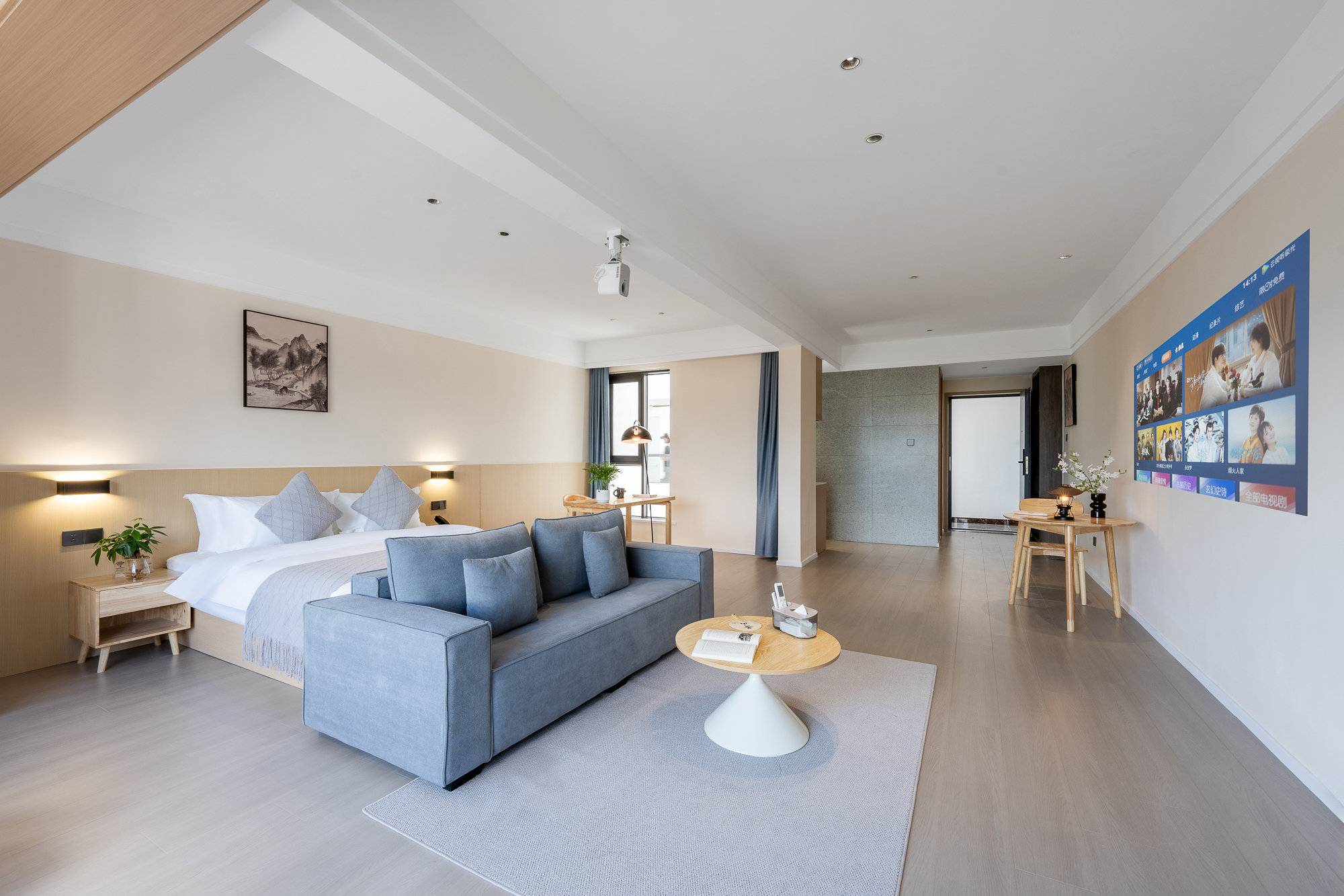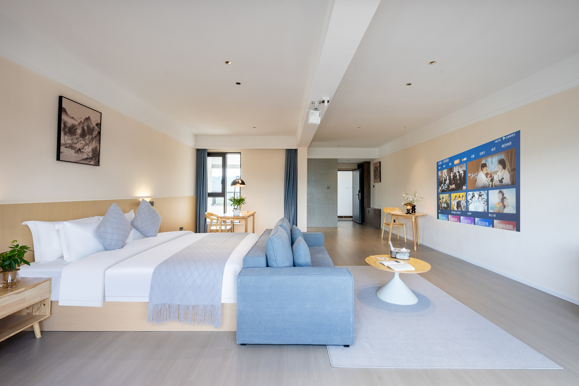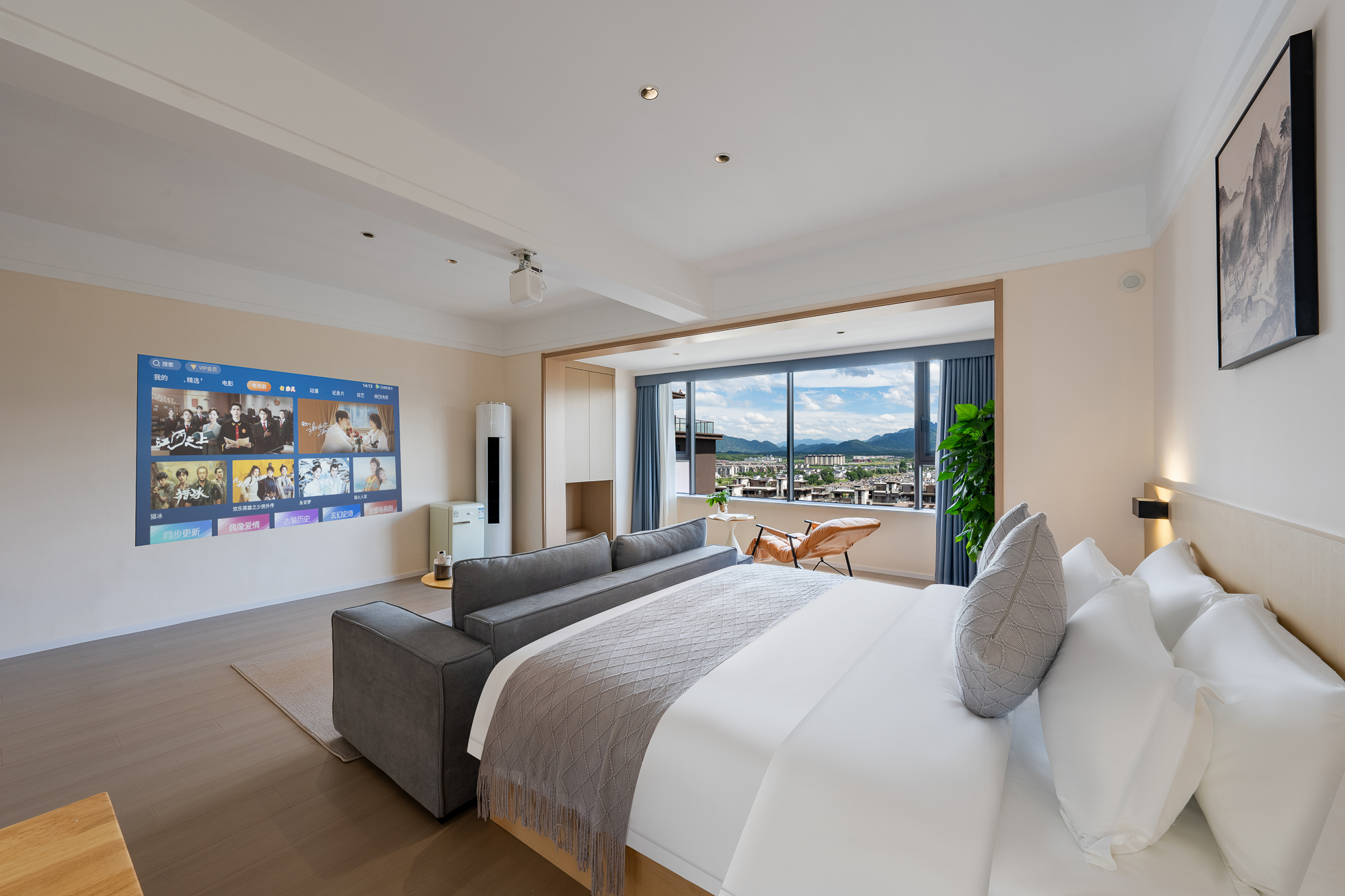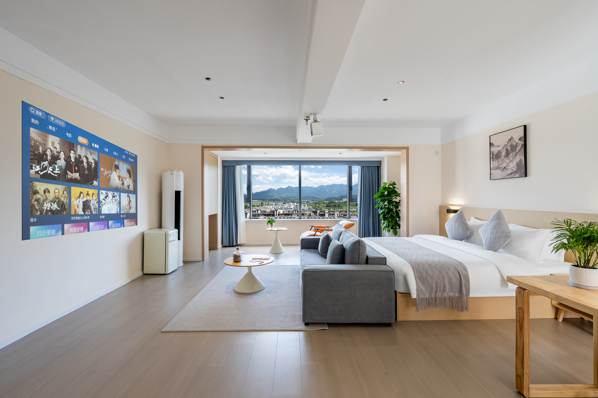 一室一廳一衞投影大床房-小冰箱+小米百寸可投屏投影+零重力乳膠床墊+智能馬桶+躺看黃山山景