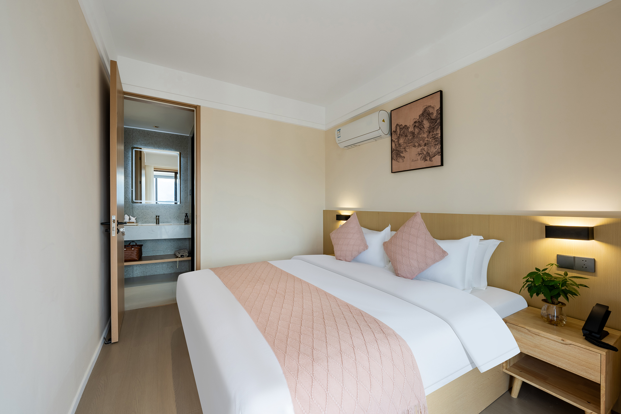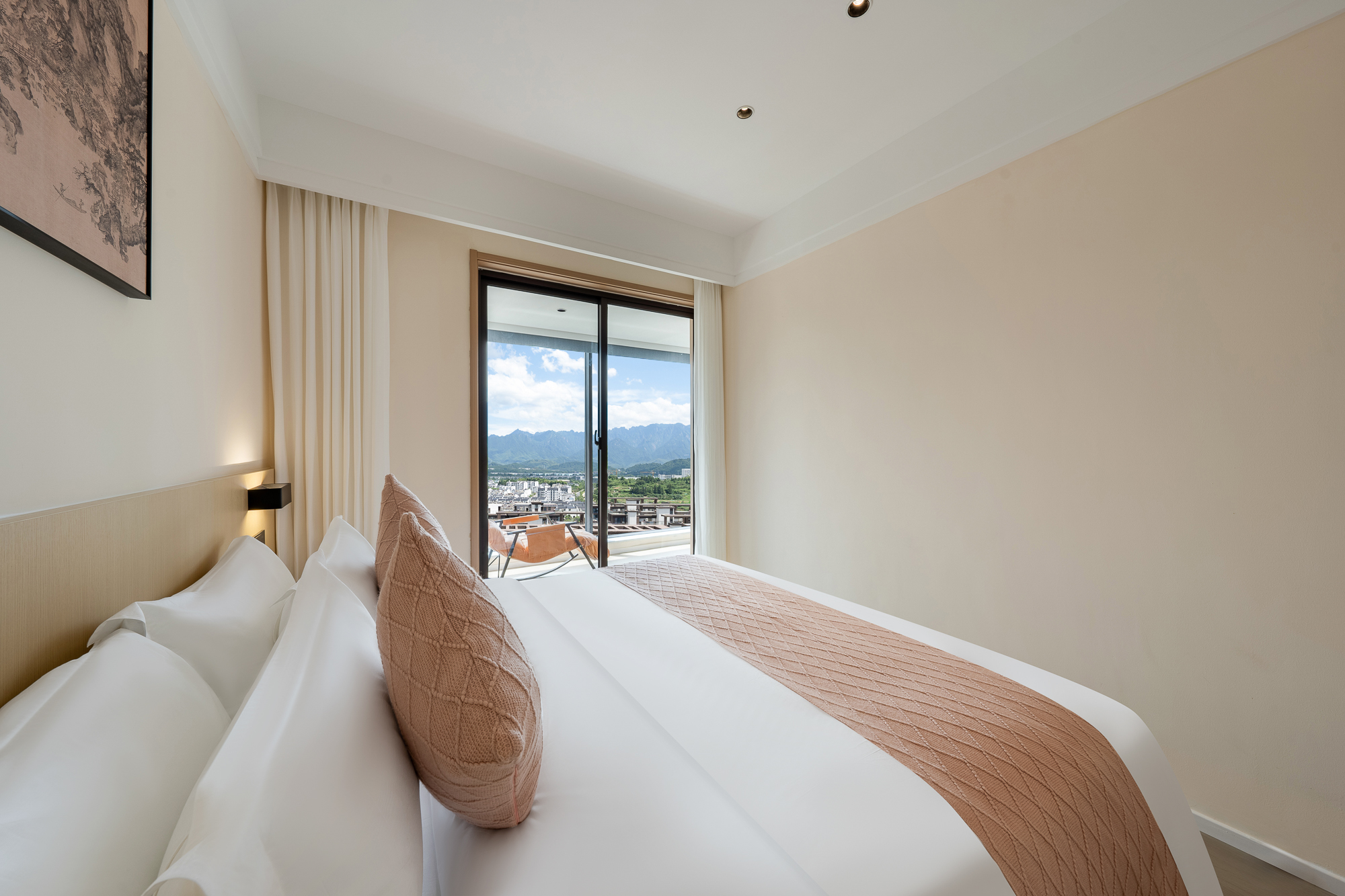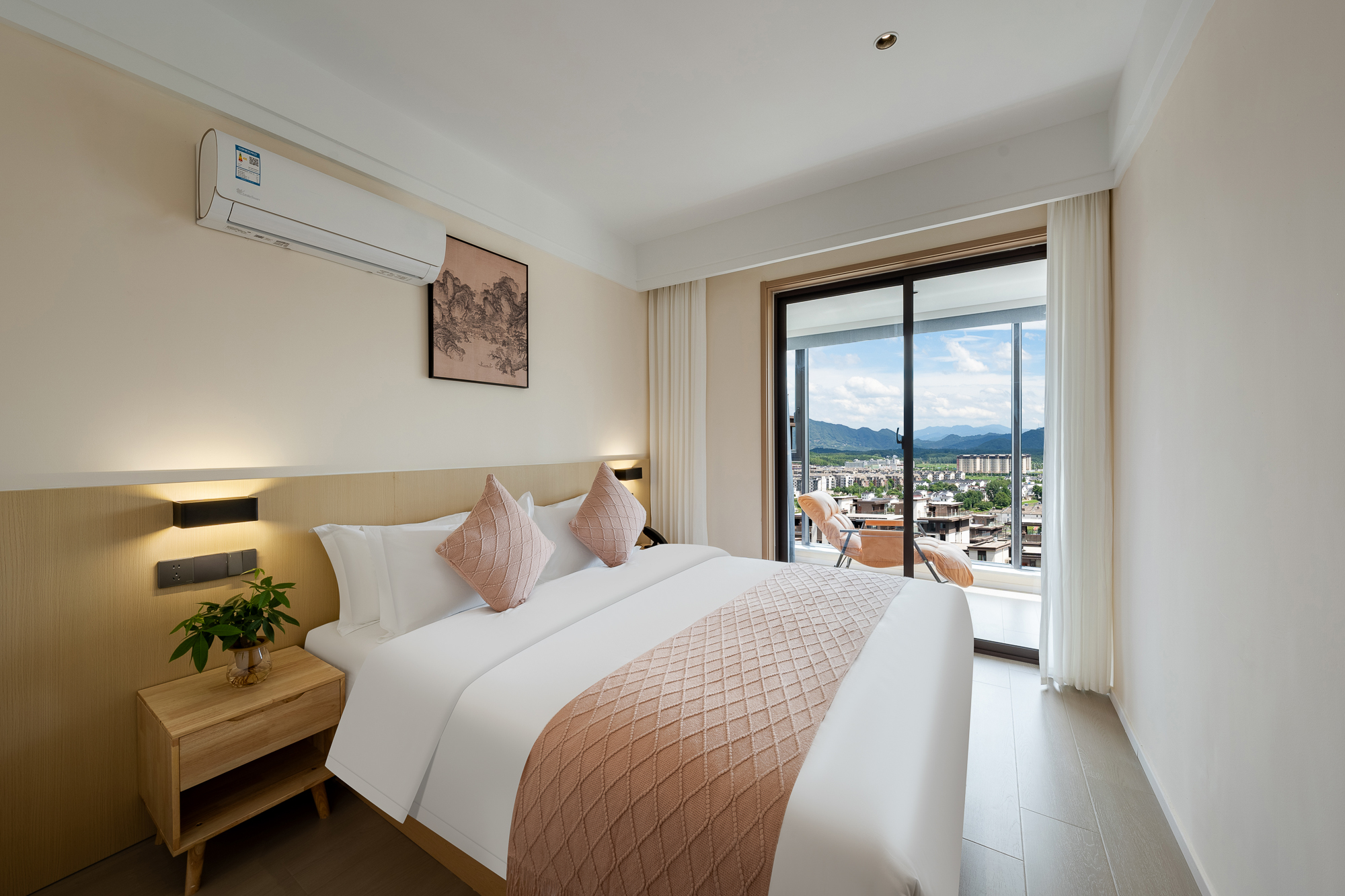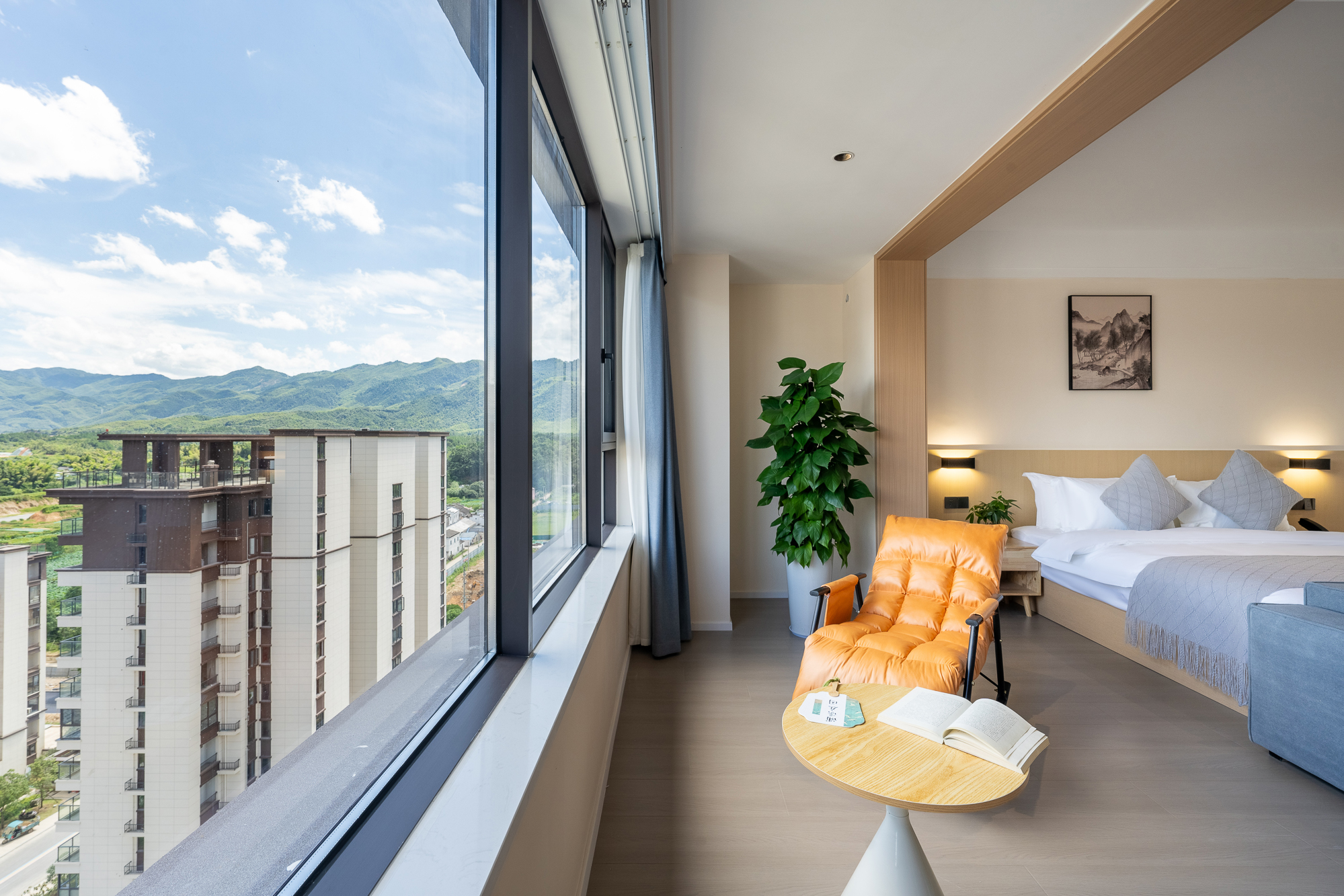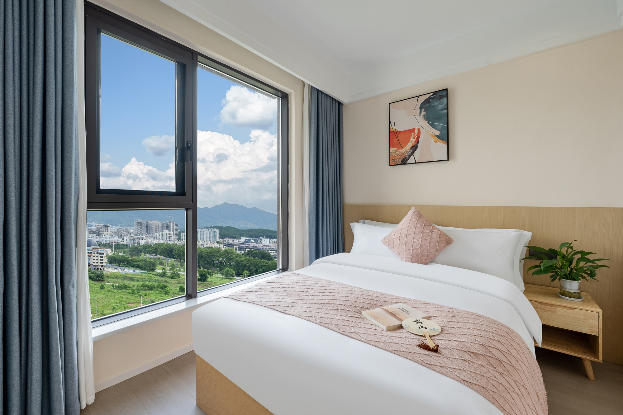 一室一廳一衞投影大床房-小冰箱+小米百寸可投屏投影+零重力乳膠床墊+智能馬桶+躺看黃山山景