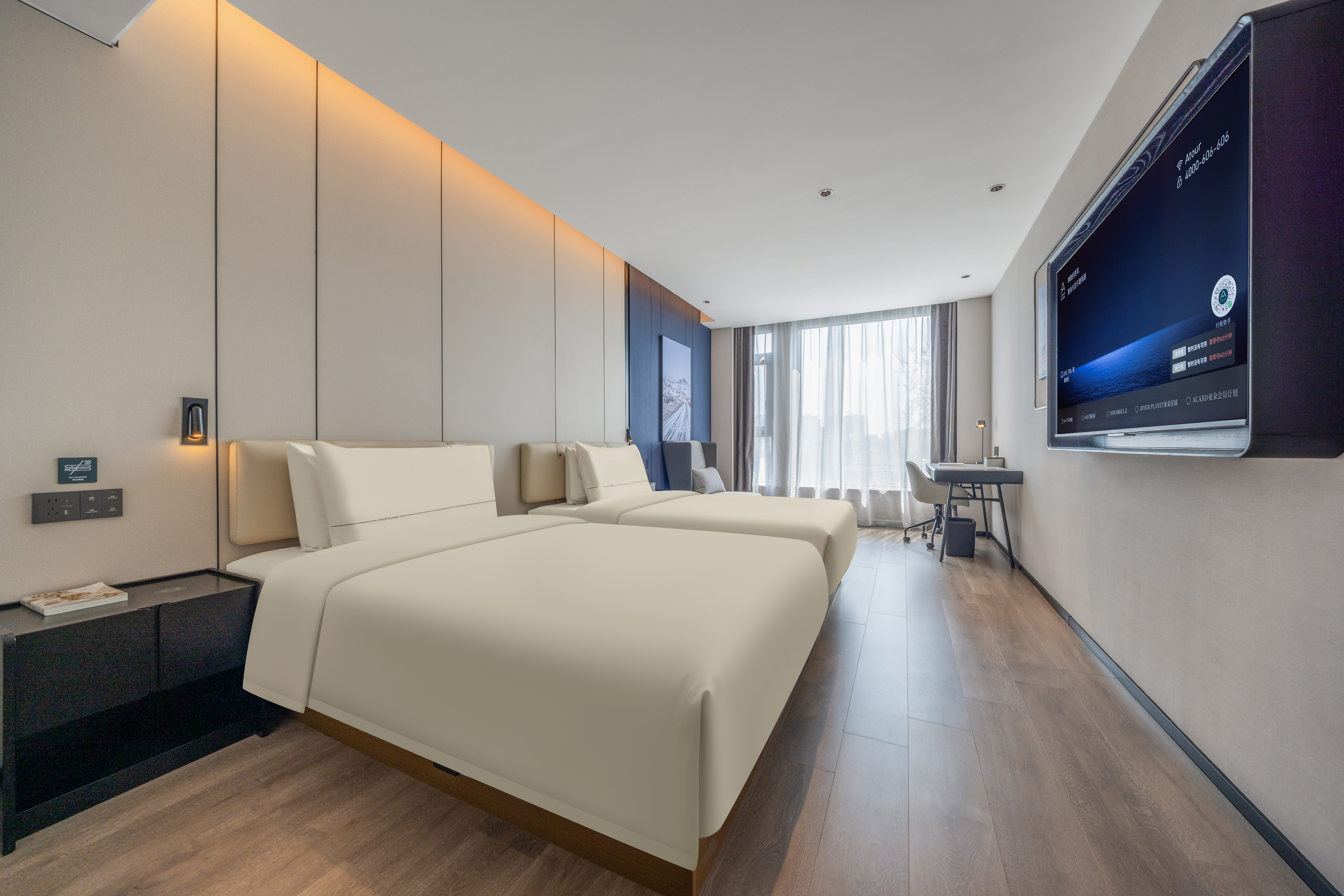 尊享江景双床房·深睡床垫+PRO枕+65寸投屏电视+小冰箱