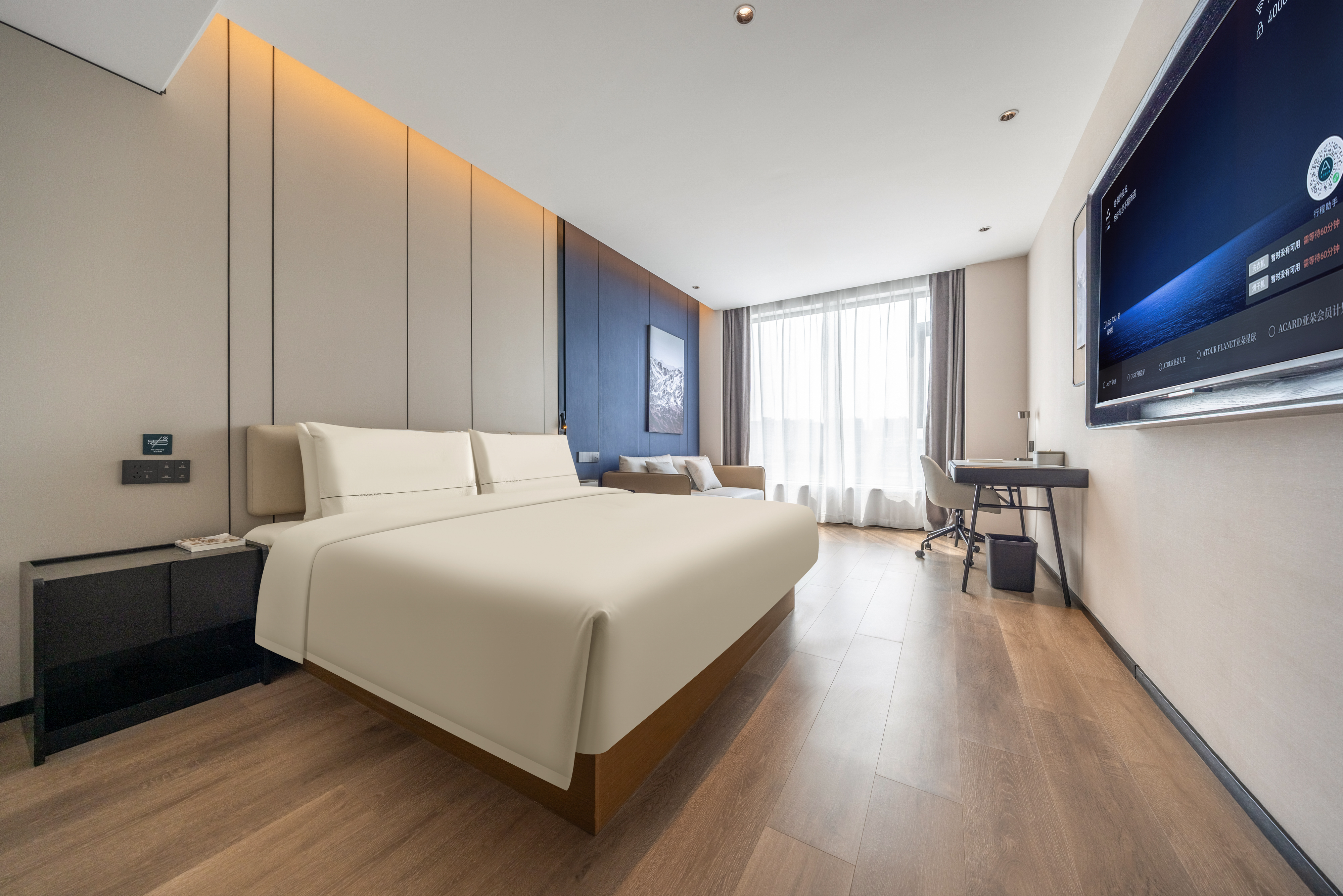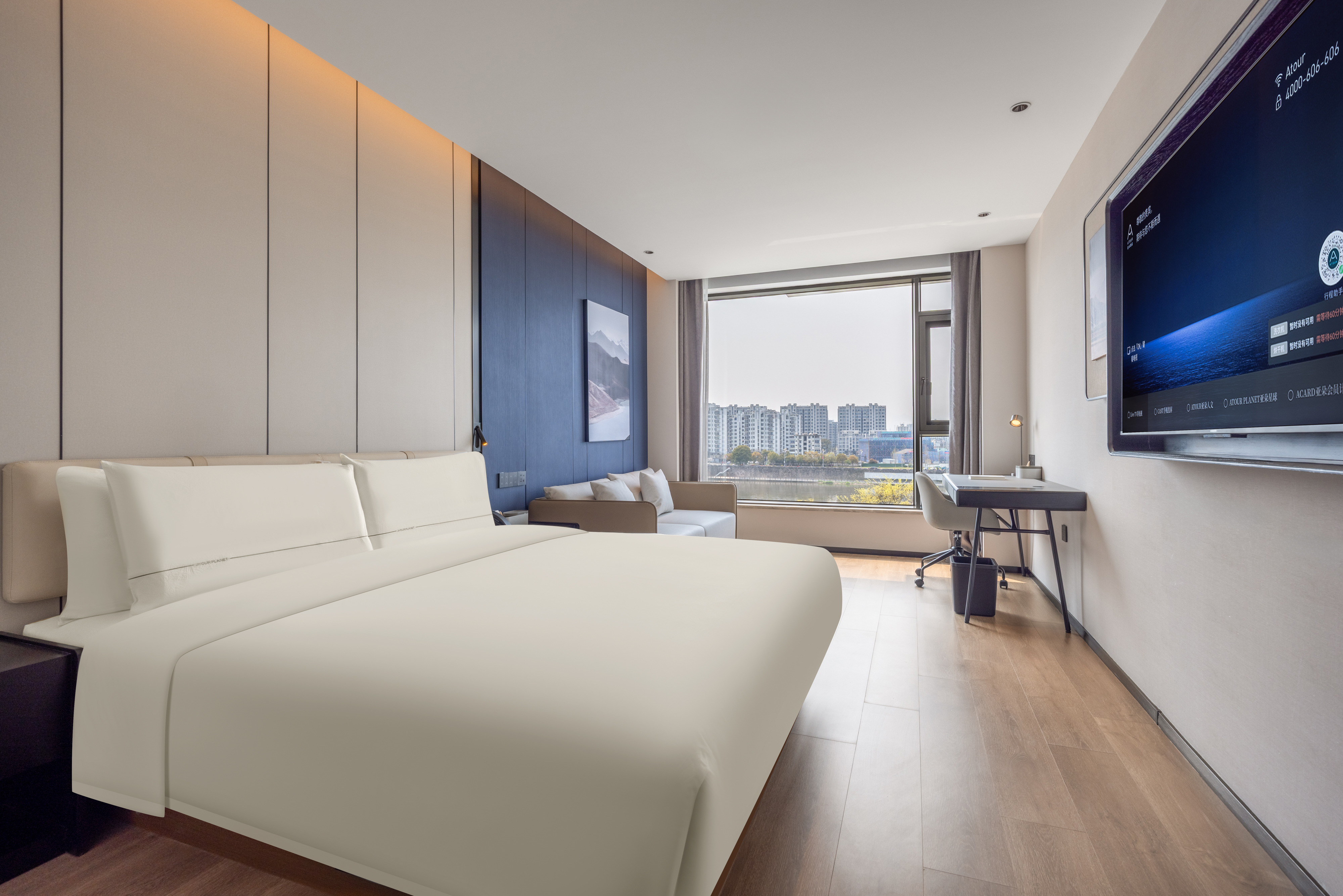 高级江景大床房·深睡床垫+PRO枕+65寸投屏电视+小冰箱