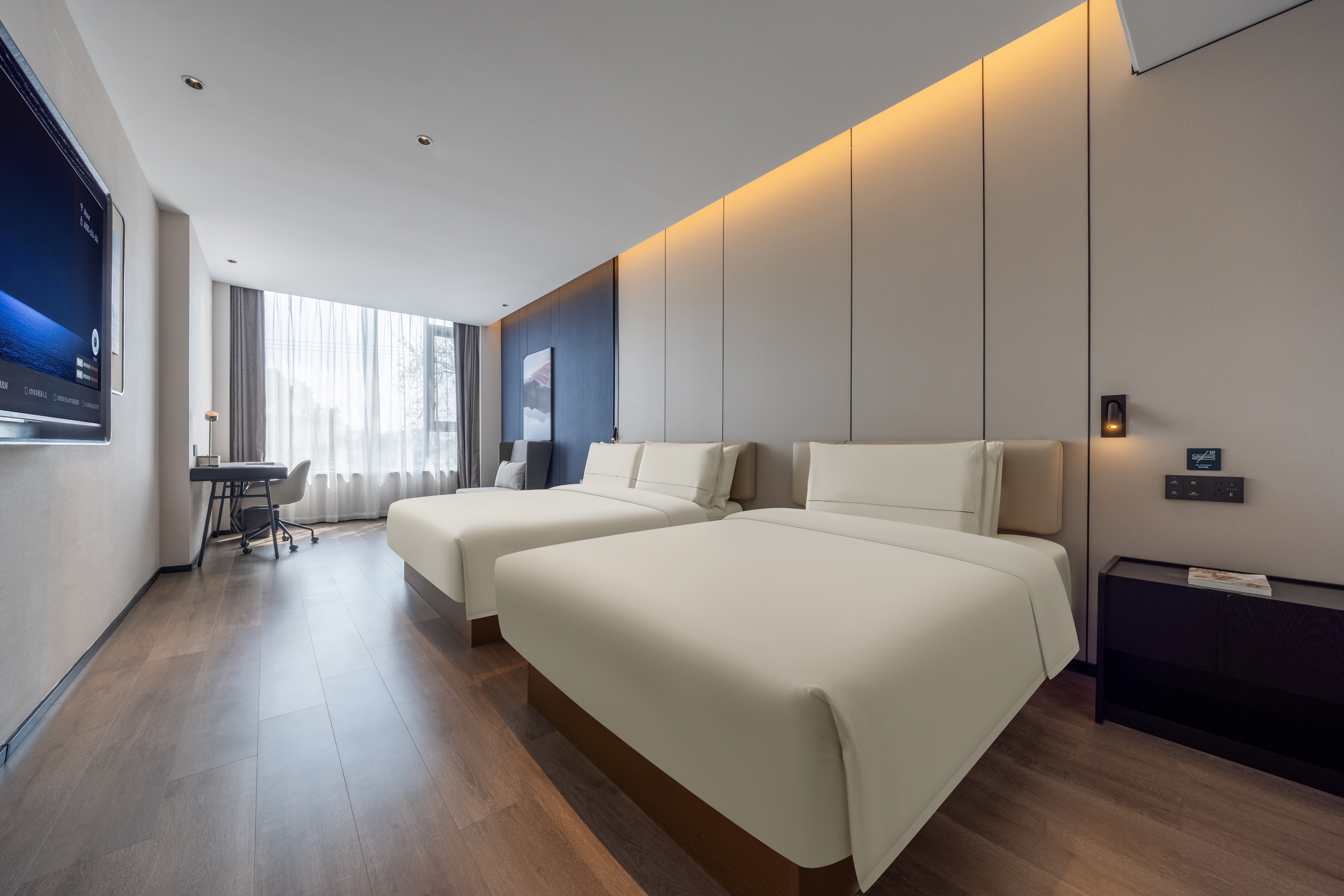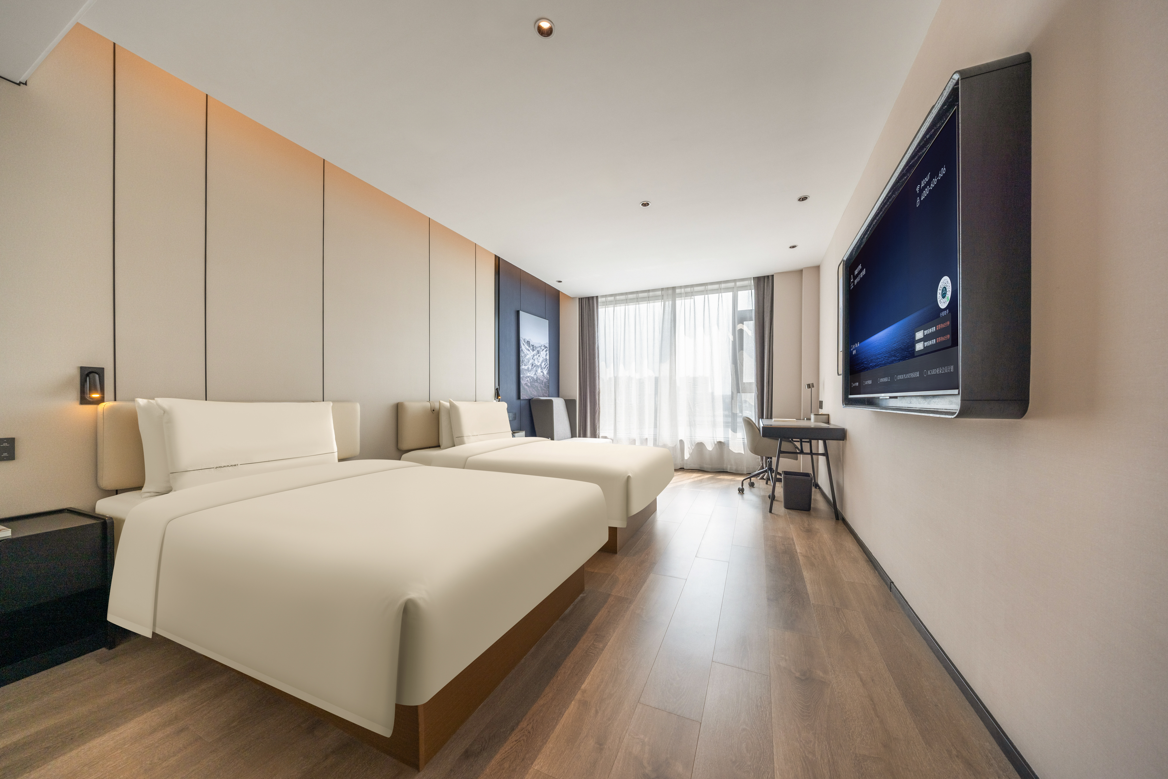 尊享江景双床房·深睡床垫+PRO枕+65寸投屏电视+小冰箱