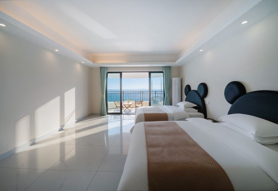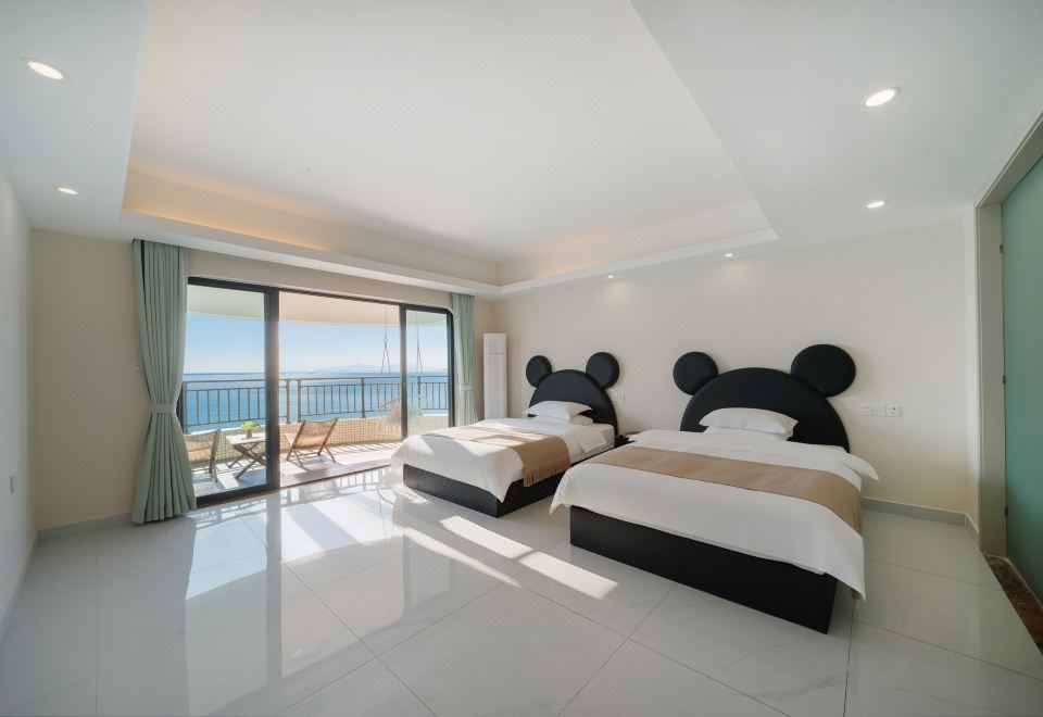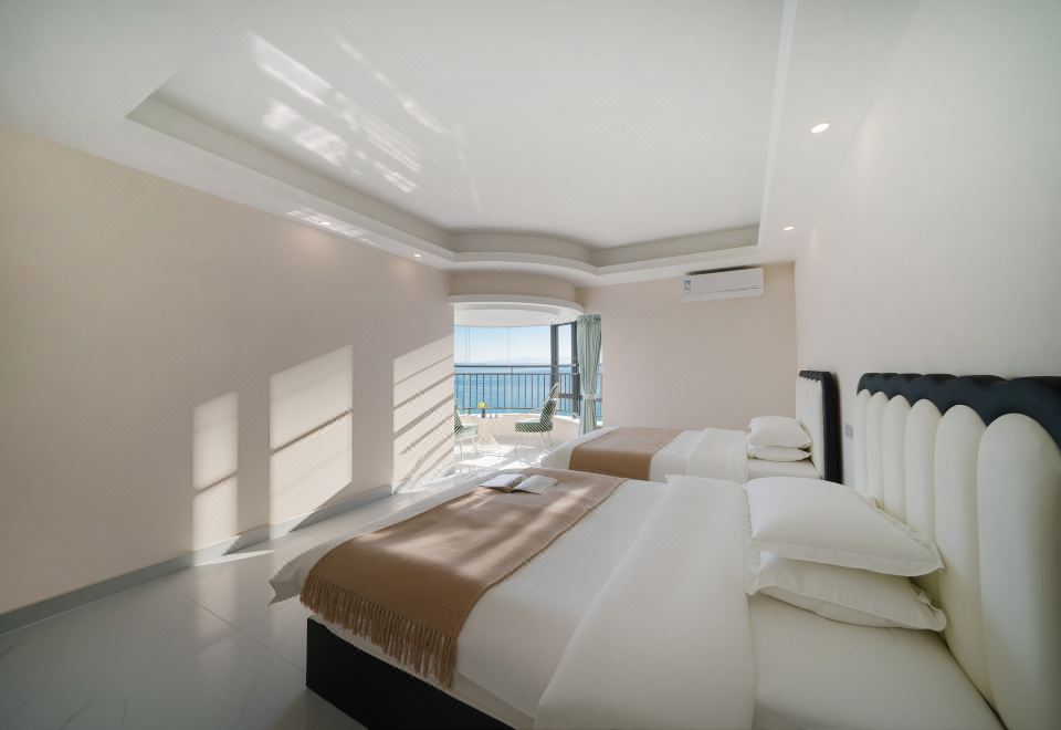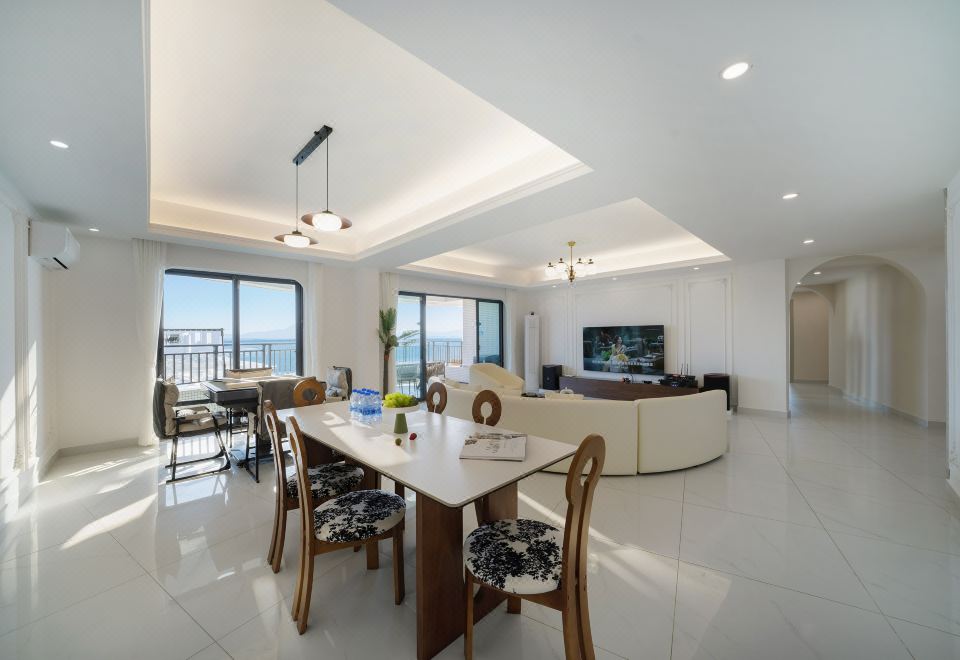 奶油风·云端高空270°海景五居室(奢阔阳台+麻将+KTV)
