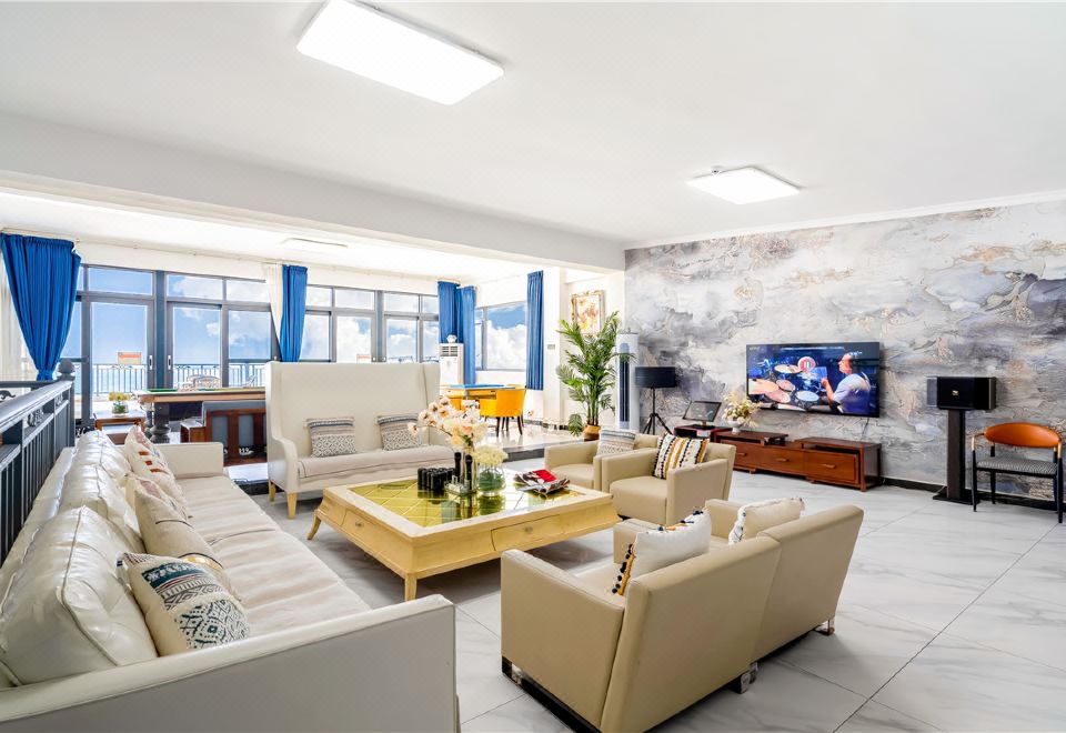 【一线海景 | 滑梯泳池| 草坪 | 会议厅】 -海景婚礼.十四房轰趴别墅+全套房+私家泳池+KTV+烧烤+自动麻将+桌球