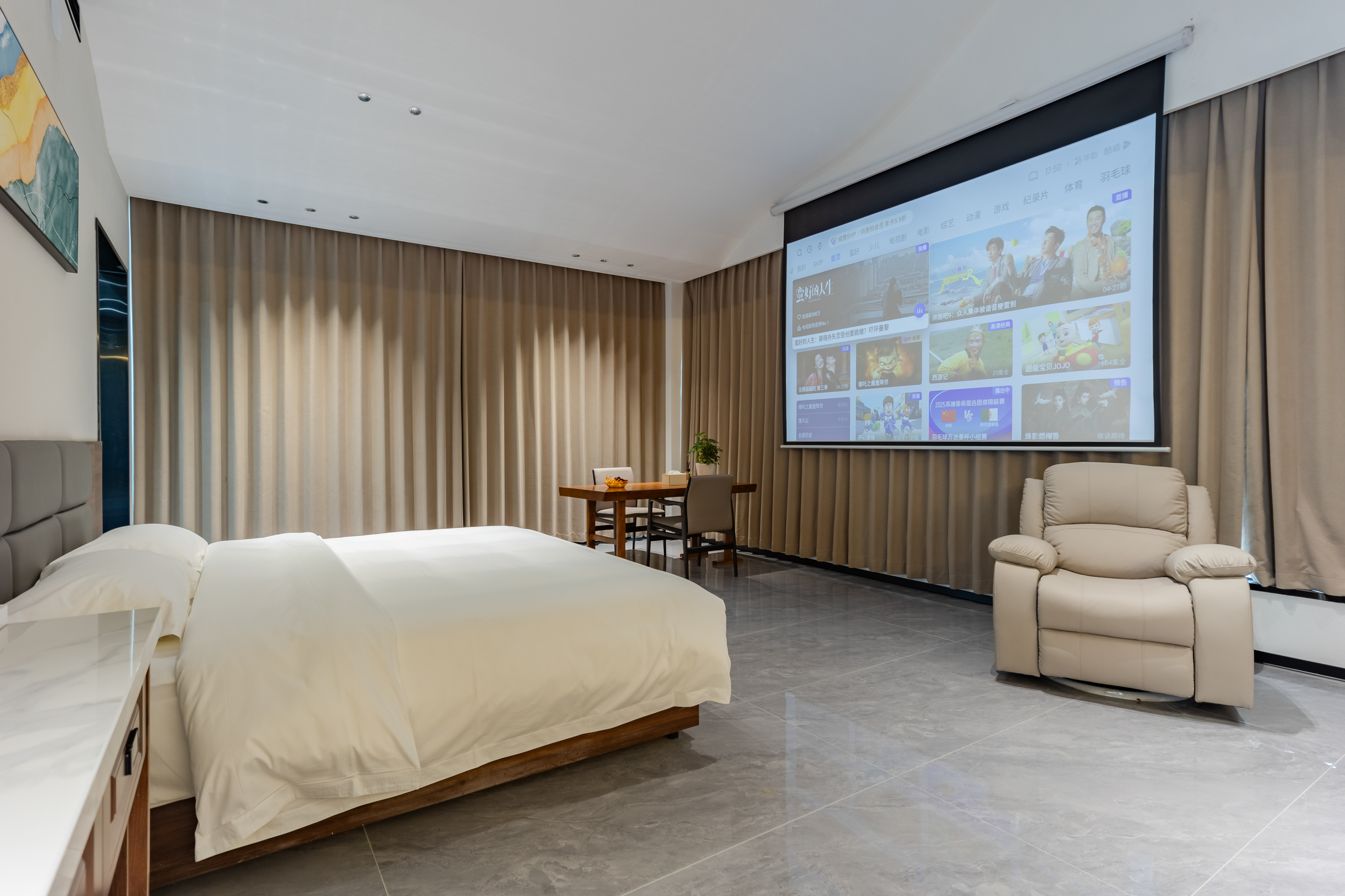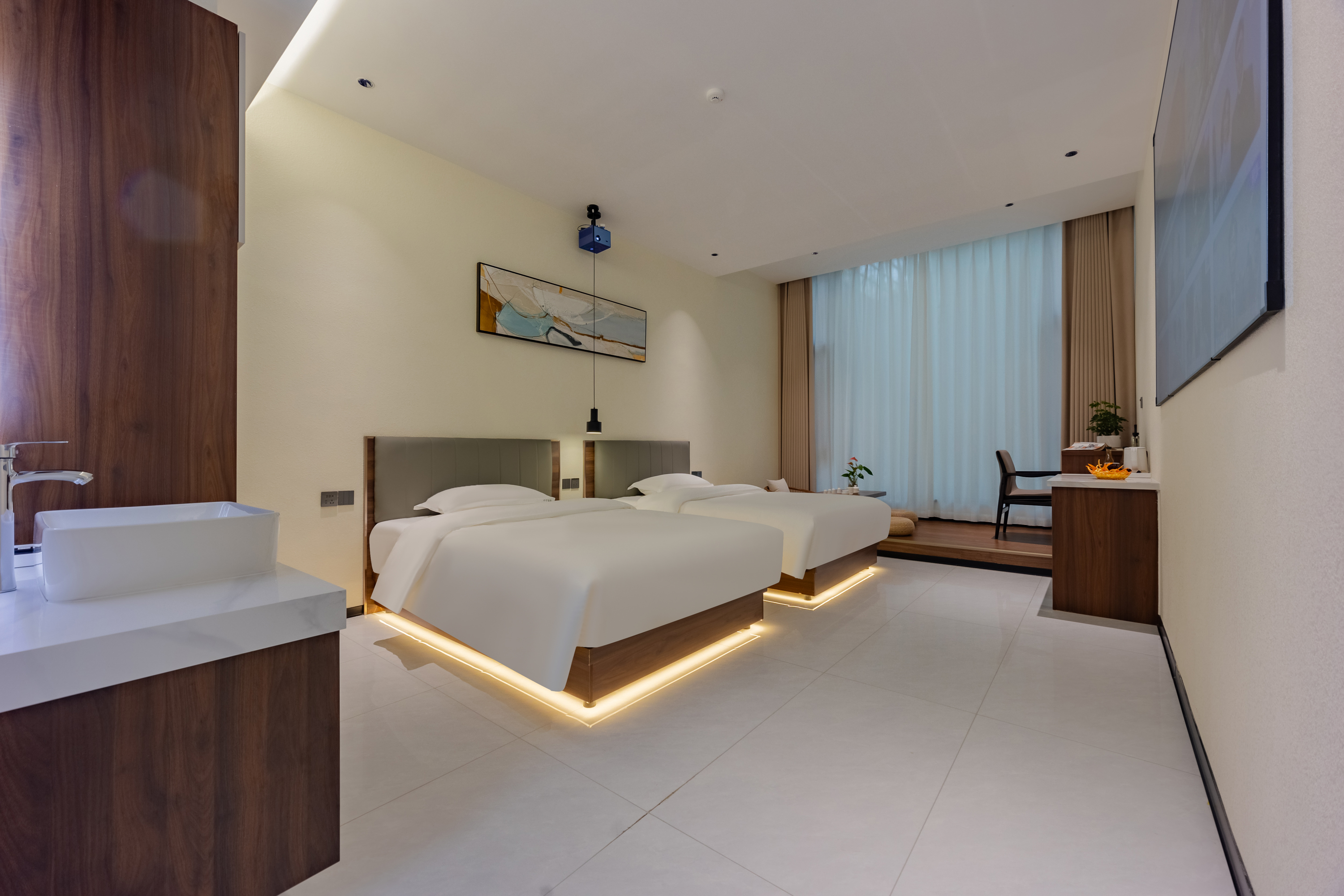 花朝投影双床房(地暖+语音客控+日式茶台+乳胶枕)