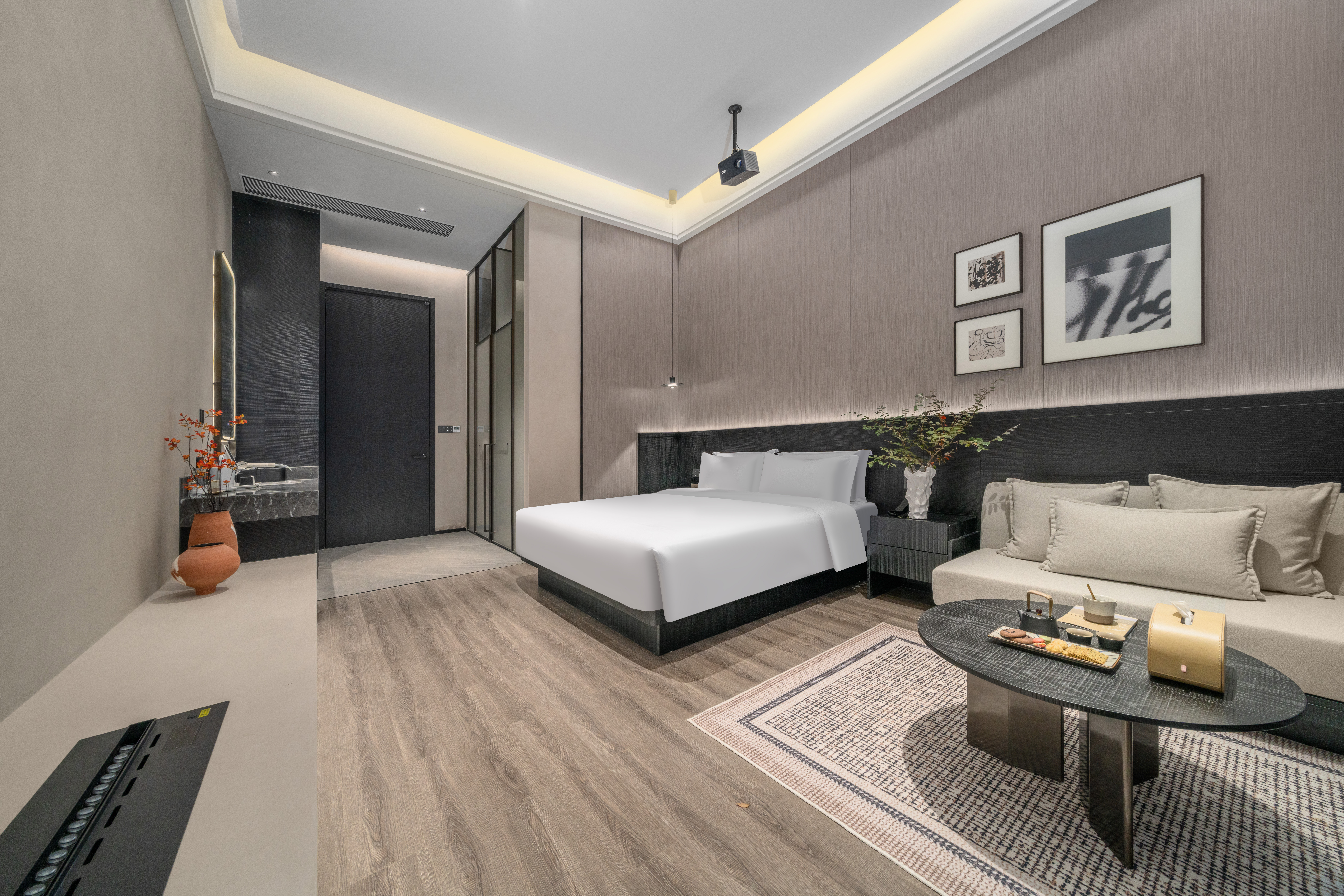 松影·月泊大床房|AI客控+4k投影+私享庭院+智能壁爐