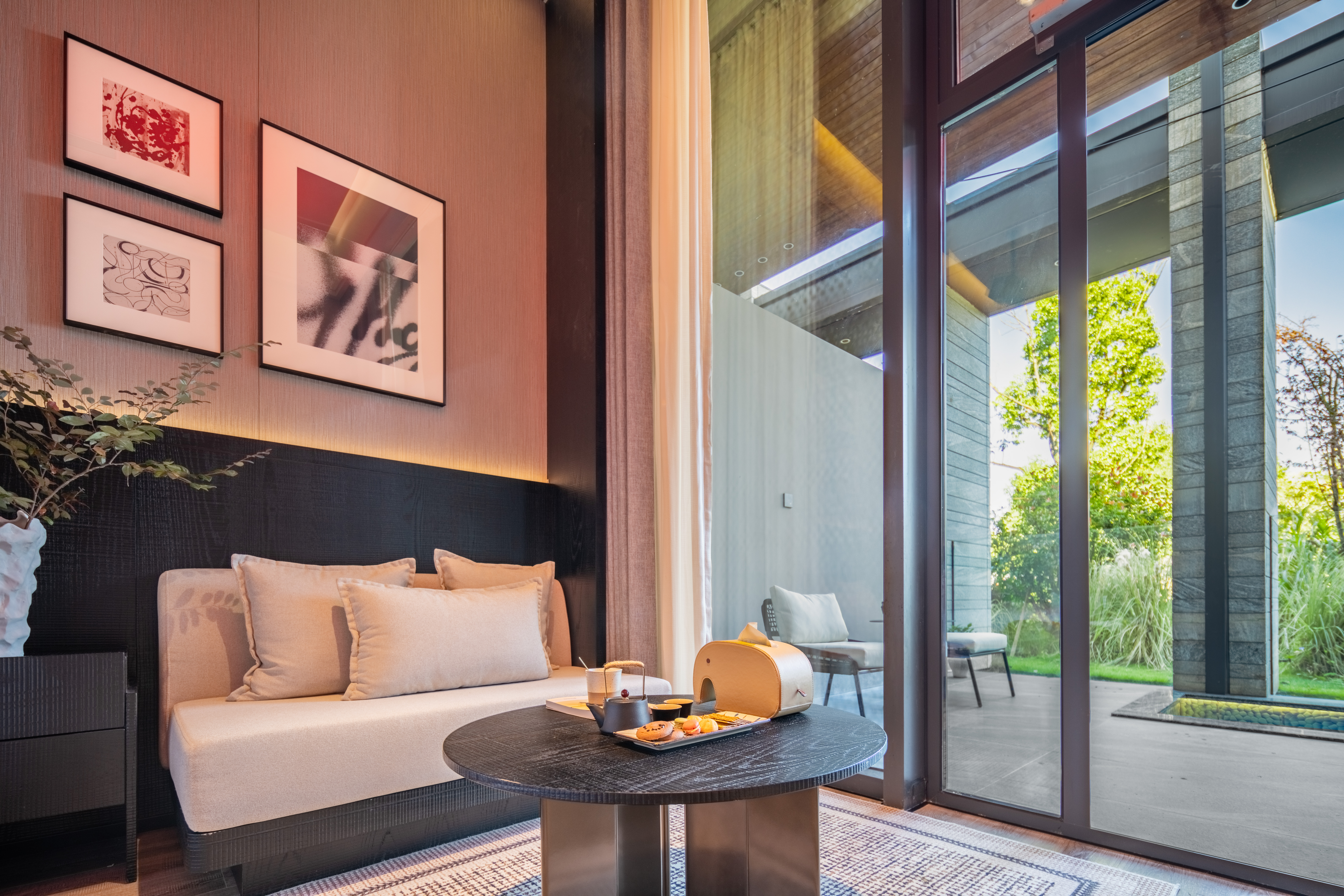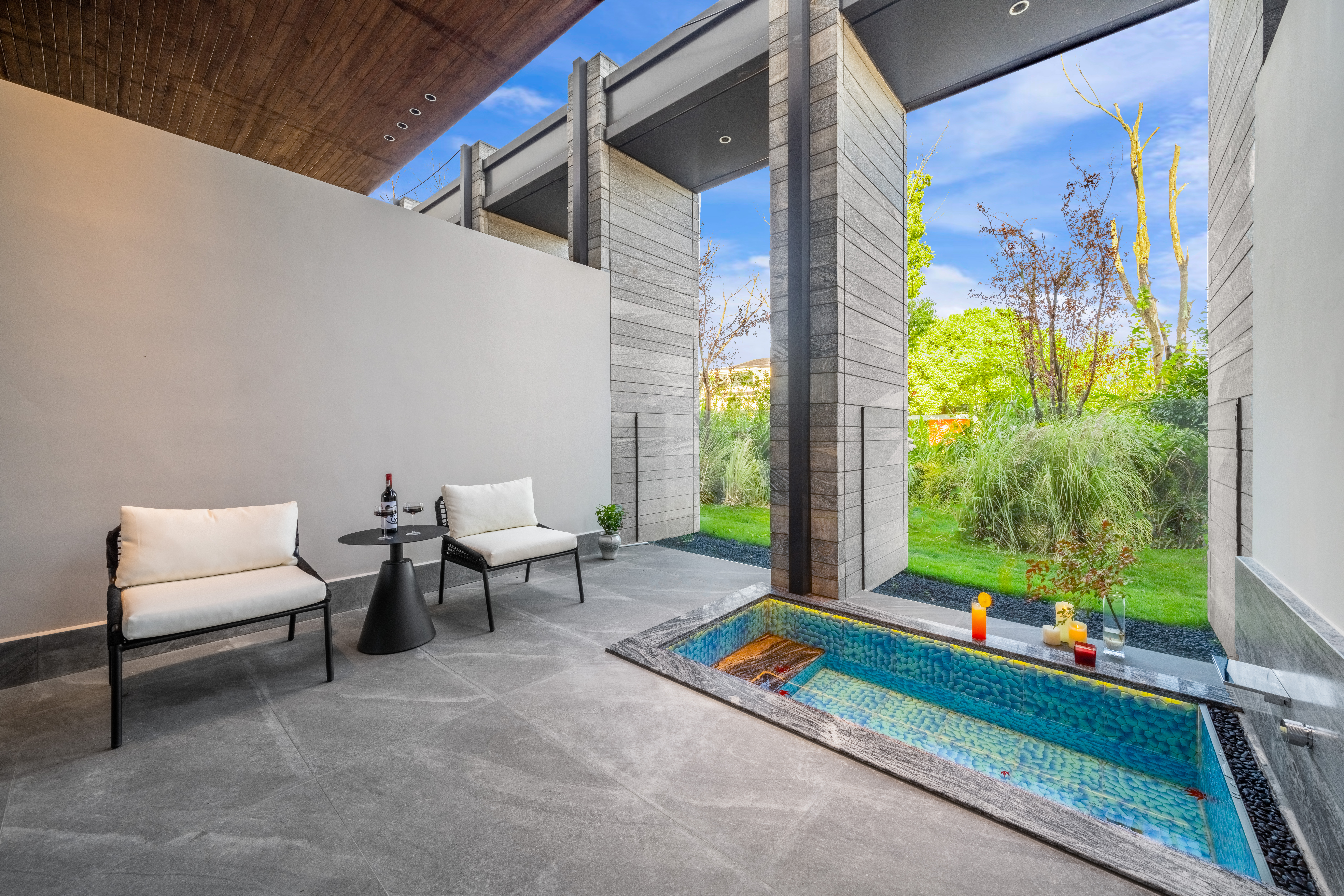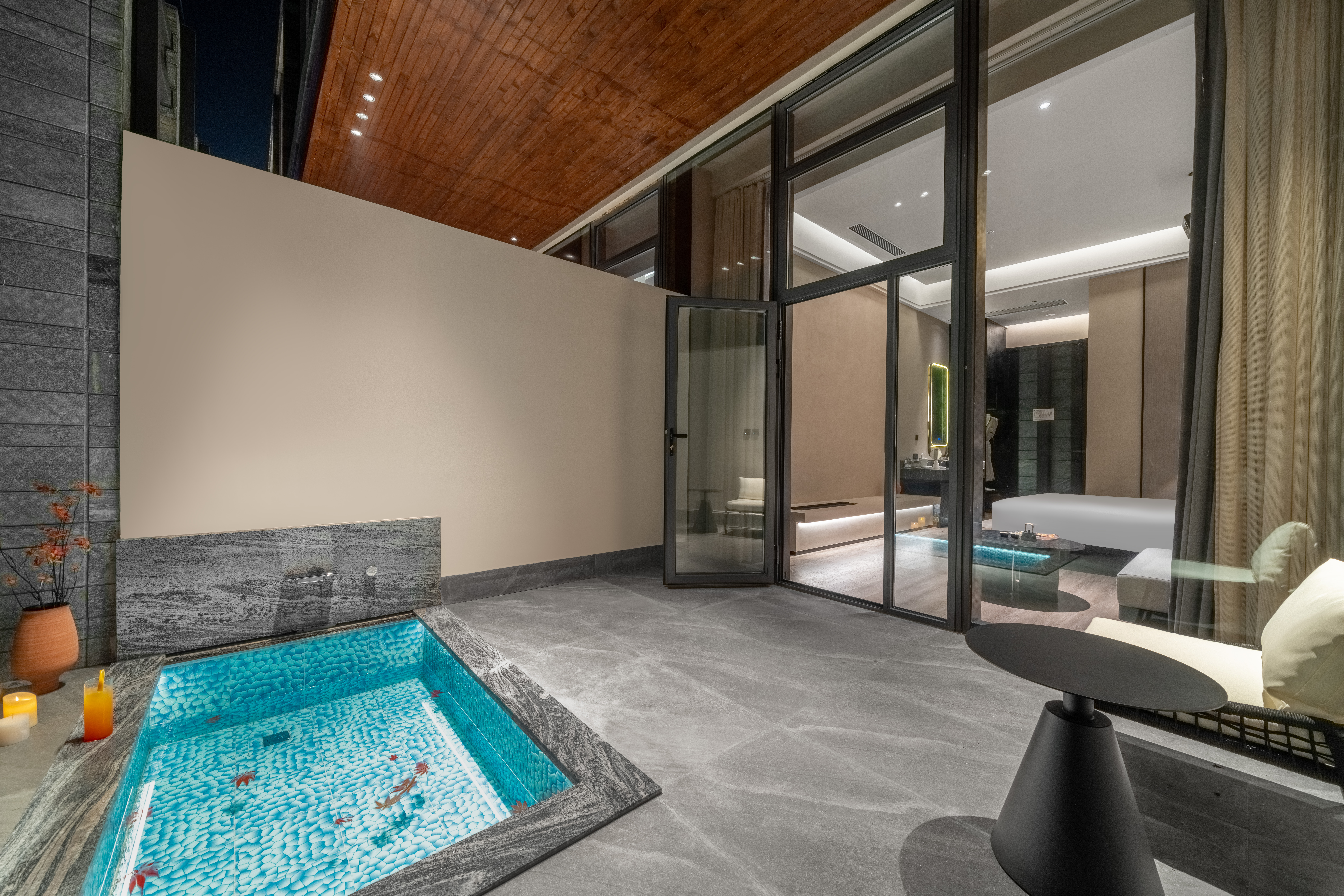 茉語·靜瀾大床房|AI客控+4k投影+私湯庭院泡池+智能壁爐