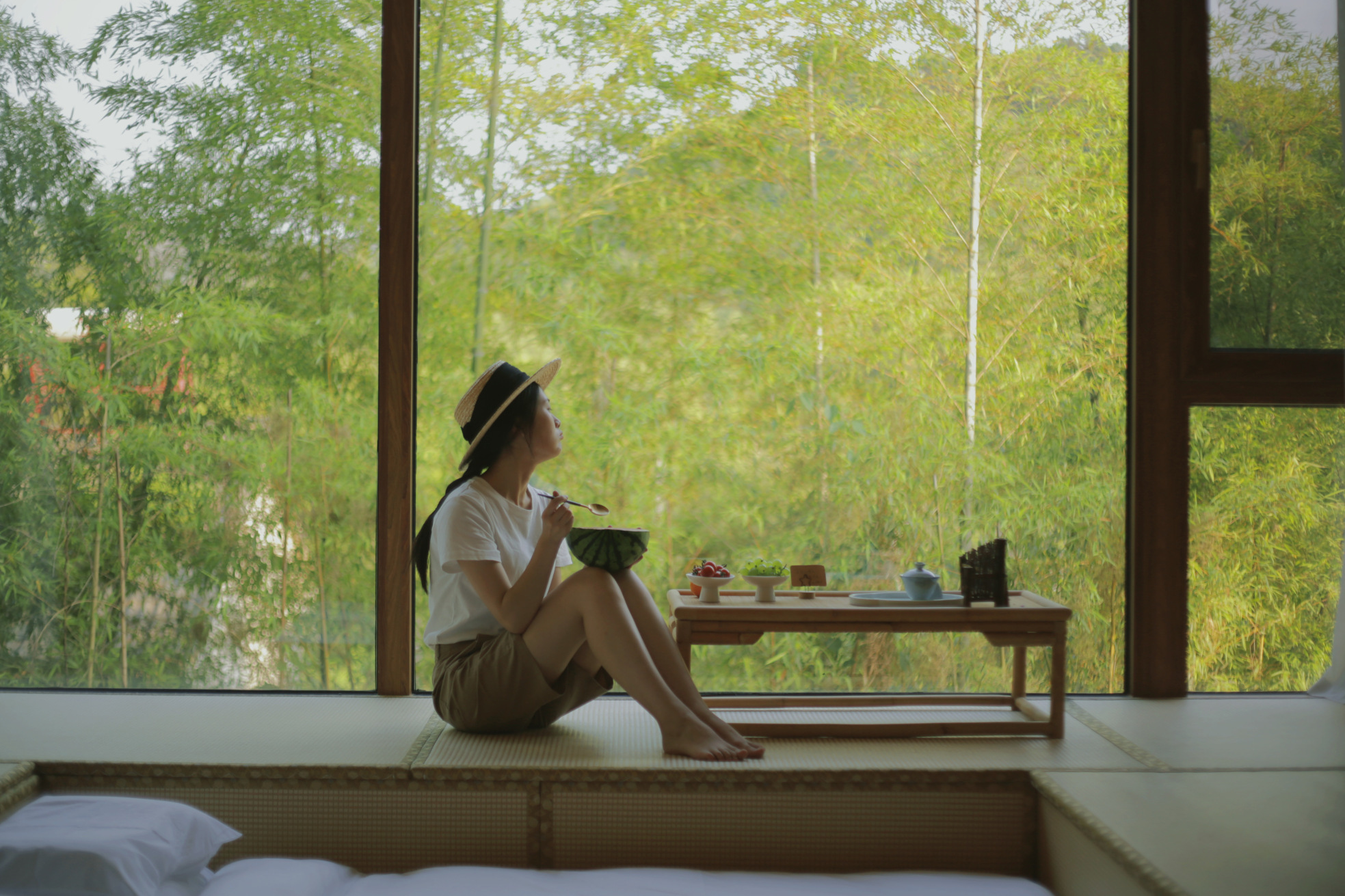 書竹·寶寶不掉床·下沉式榻榻米「環茶山美景+品茗茶几+高清投影」