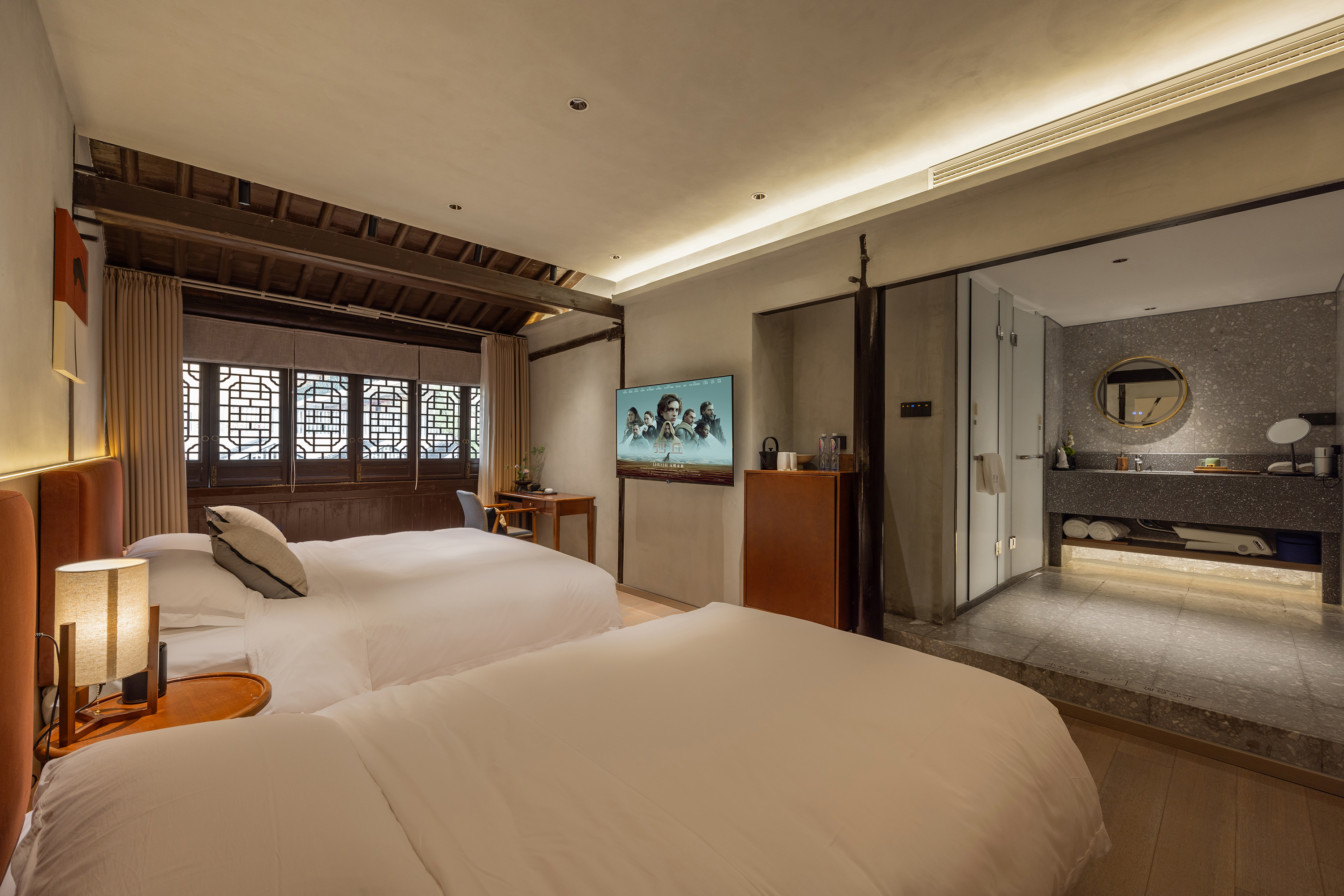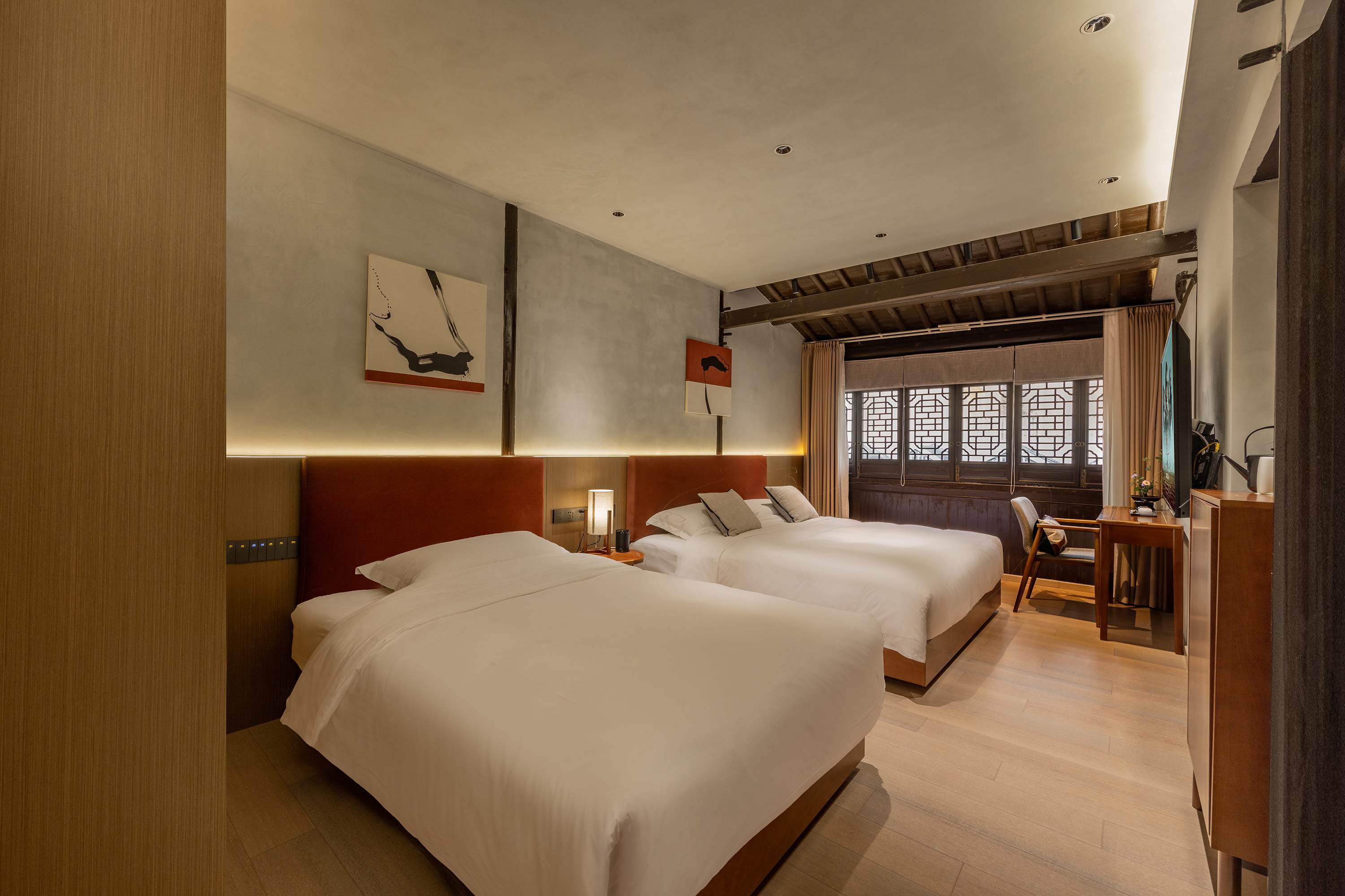 謝池春枕水豪華雙床間(河景·全屋智控·科勒衞浴·戴森吹風機)