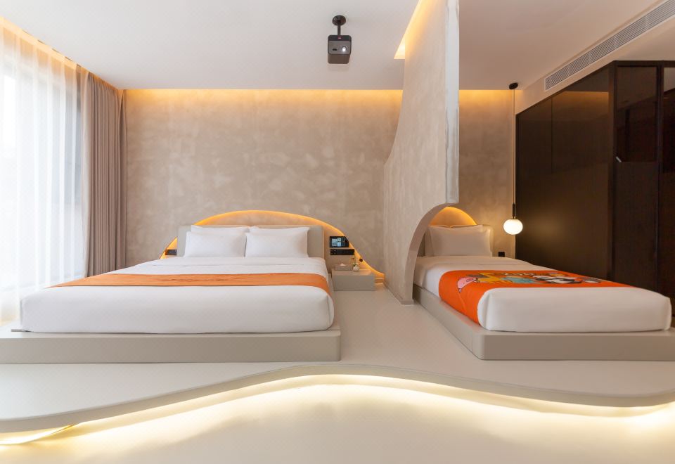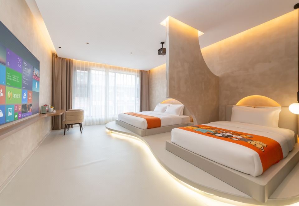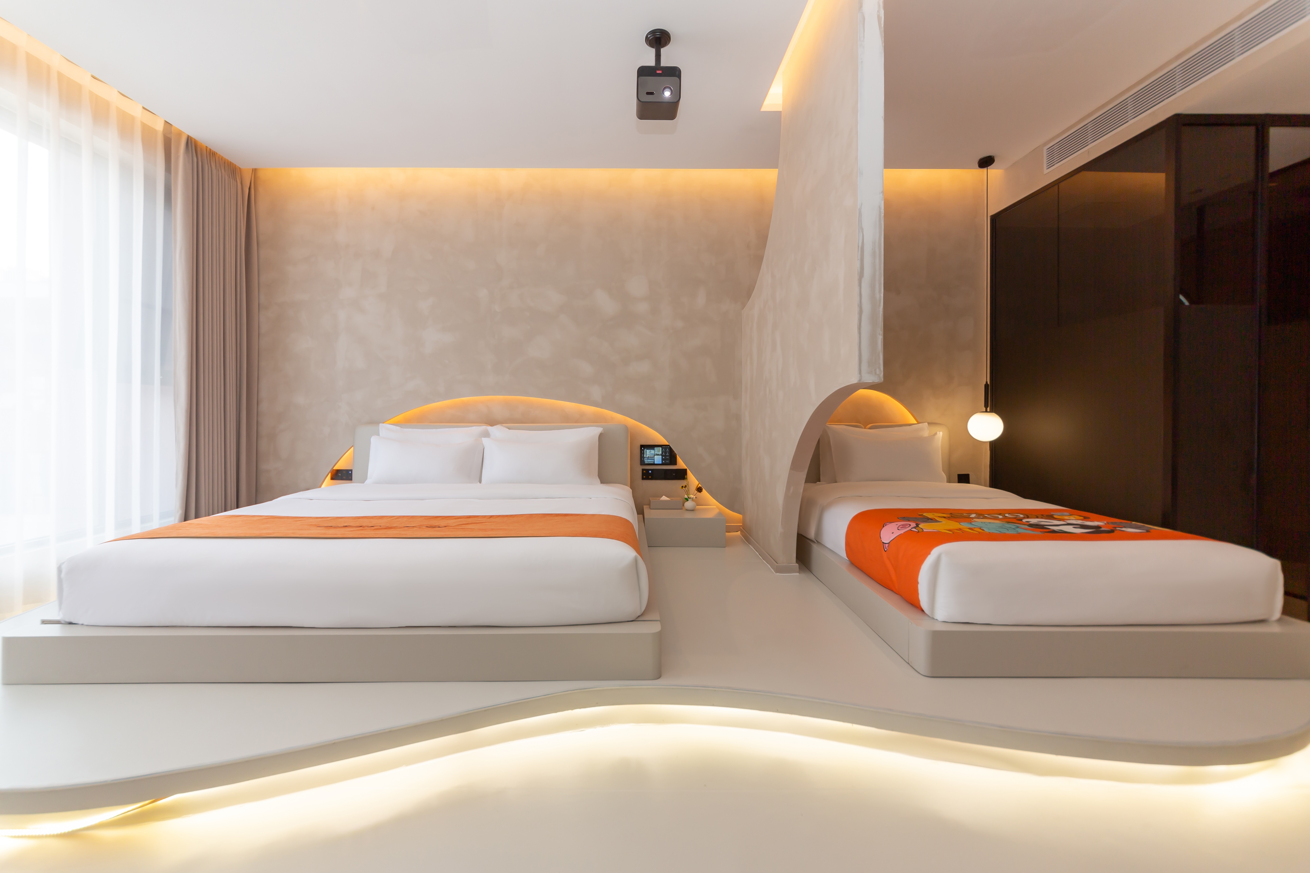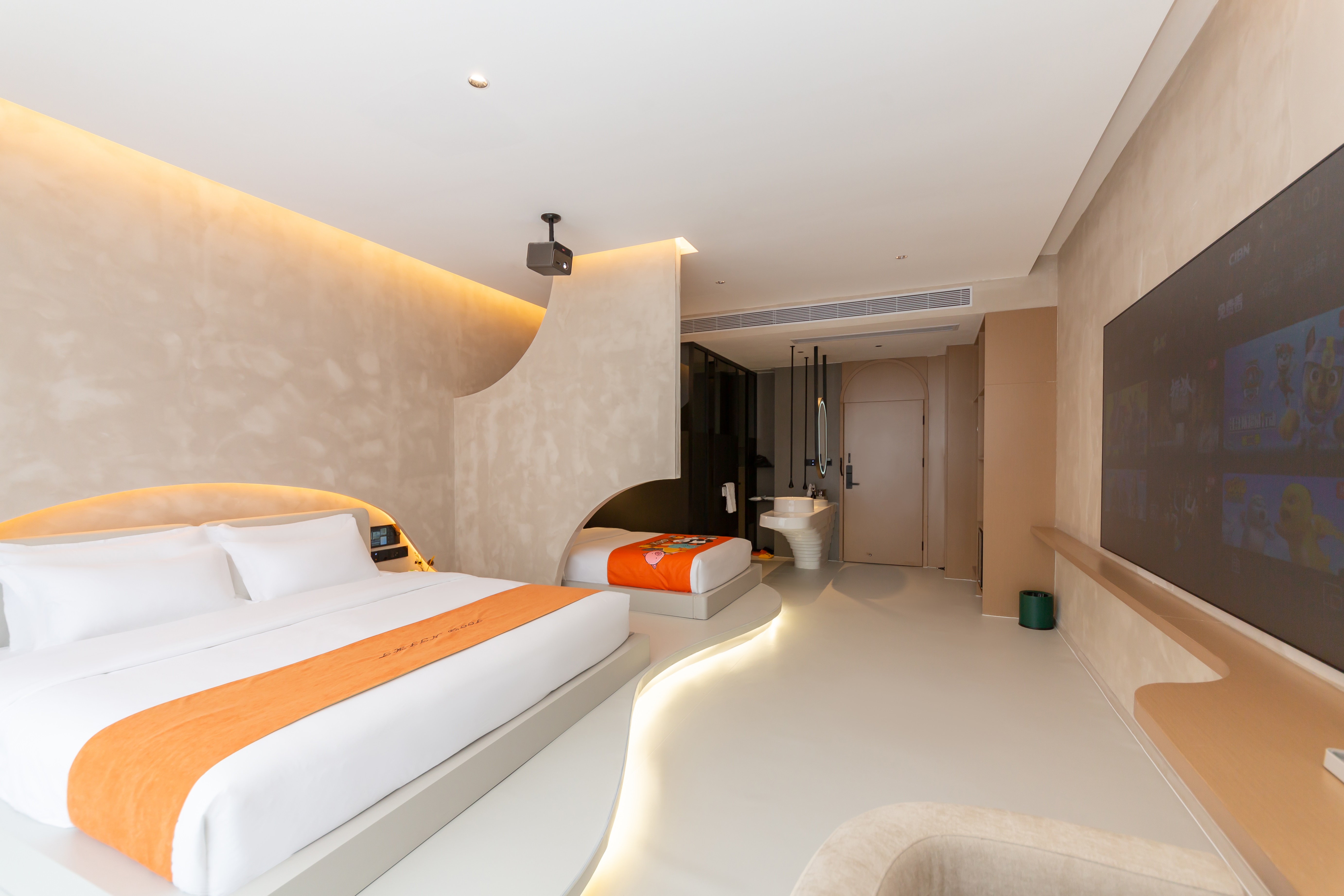 温馨亲子房双床-地暖+智能客控+慕思床垫+超清大投影屏
