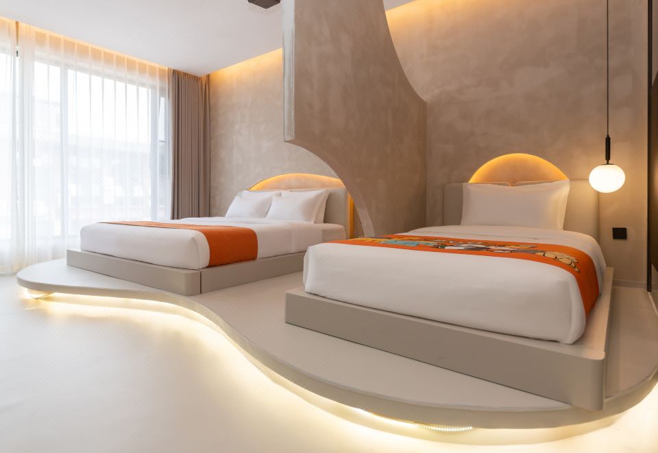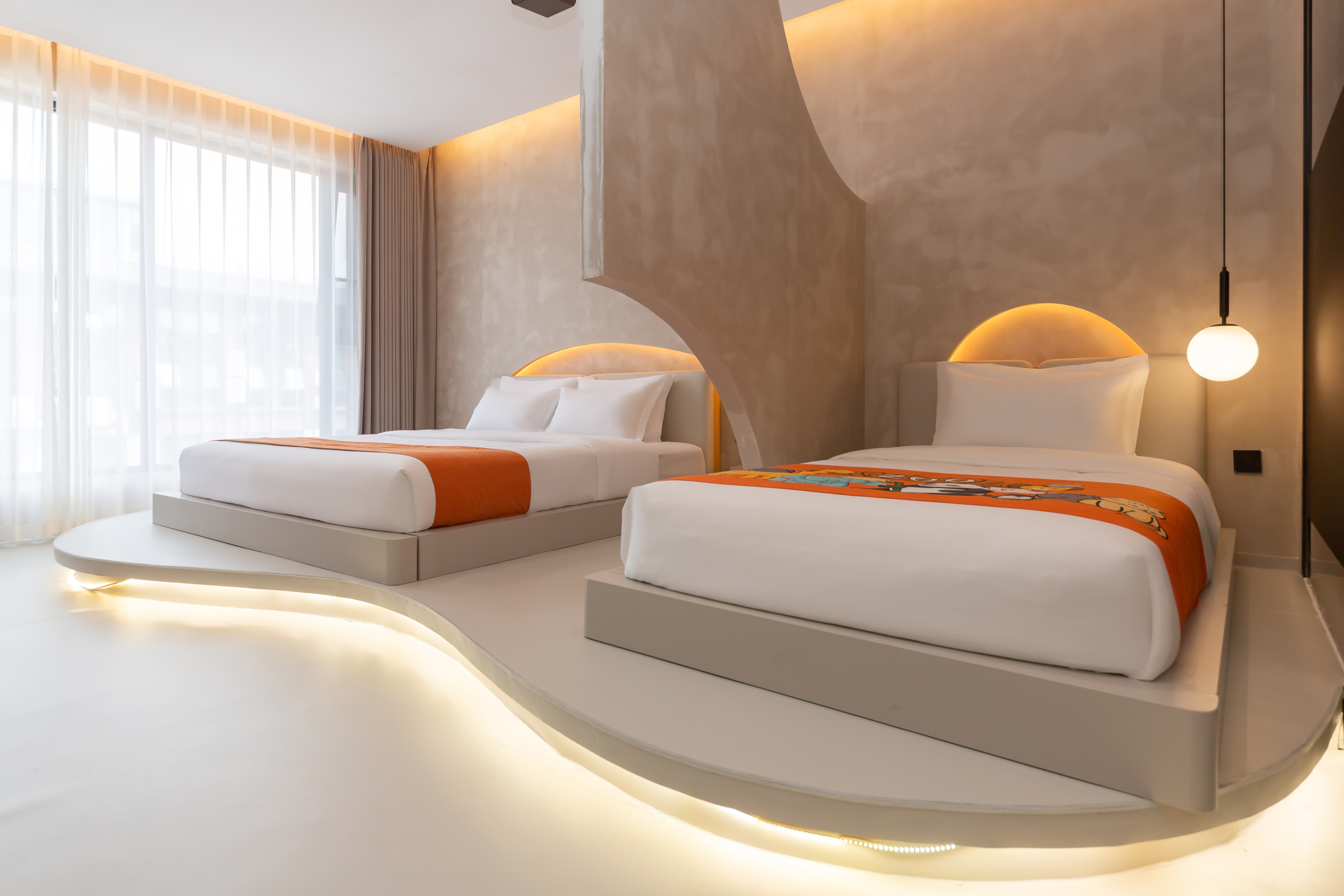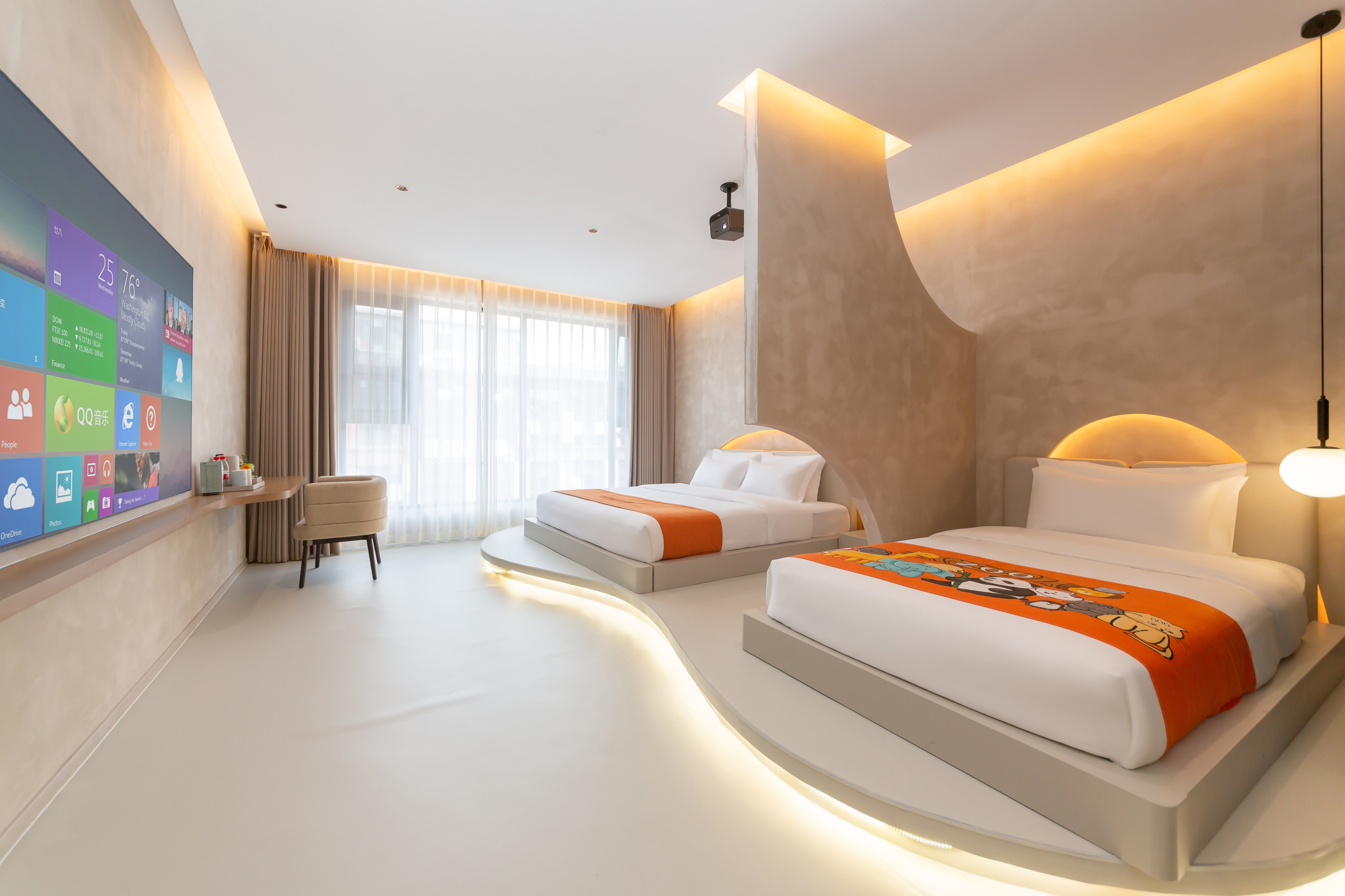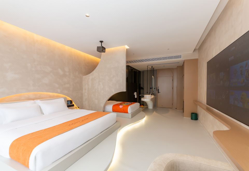 温馨亲子房双床-地暖+智能客控+慕思床垫+超清大投影屏