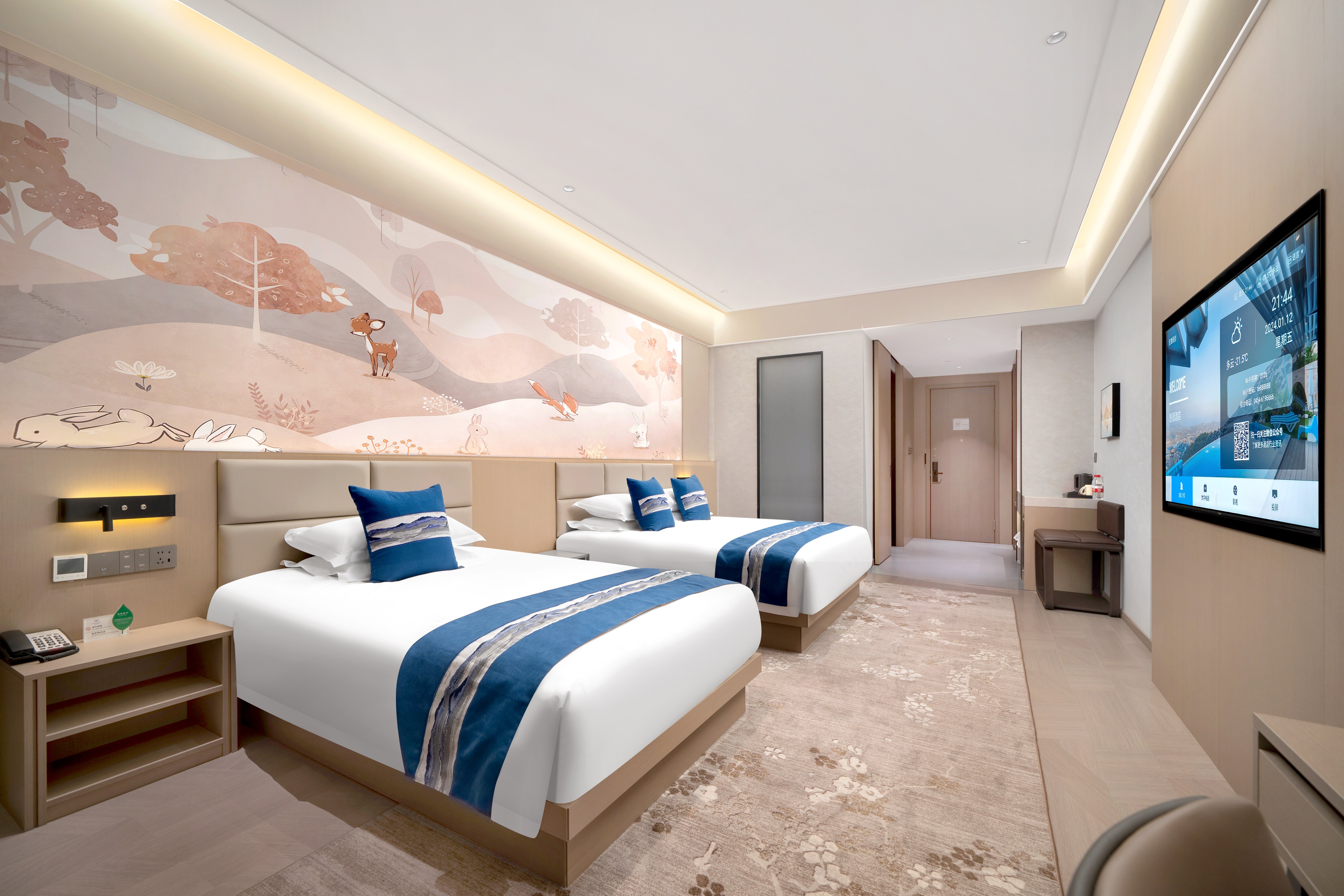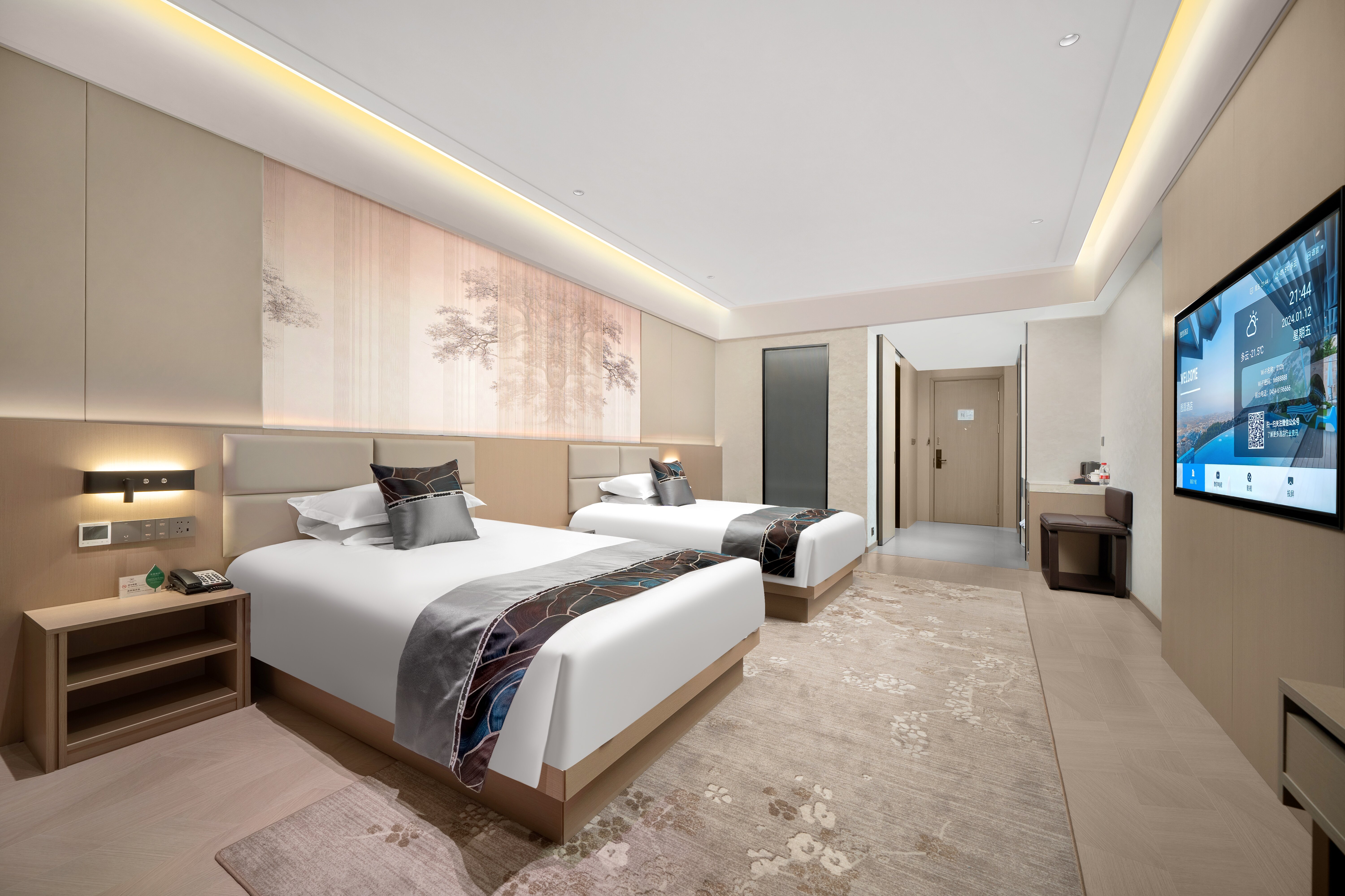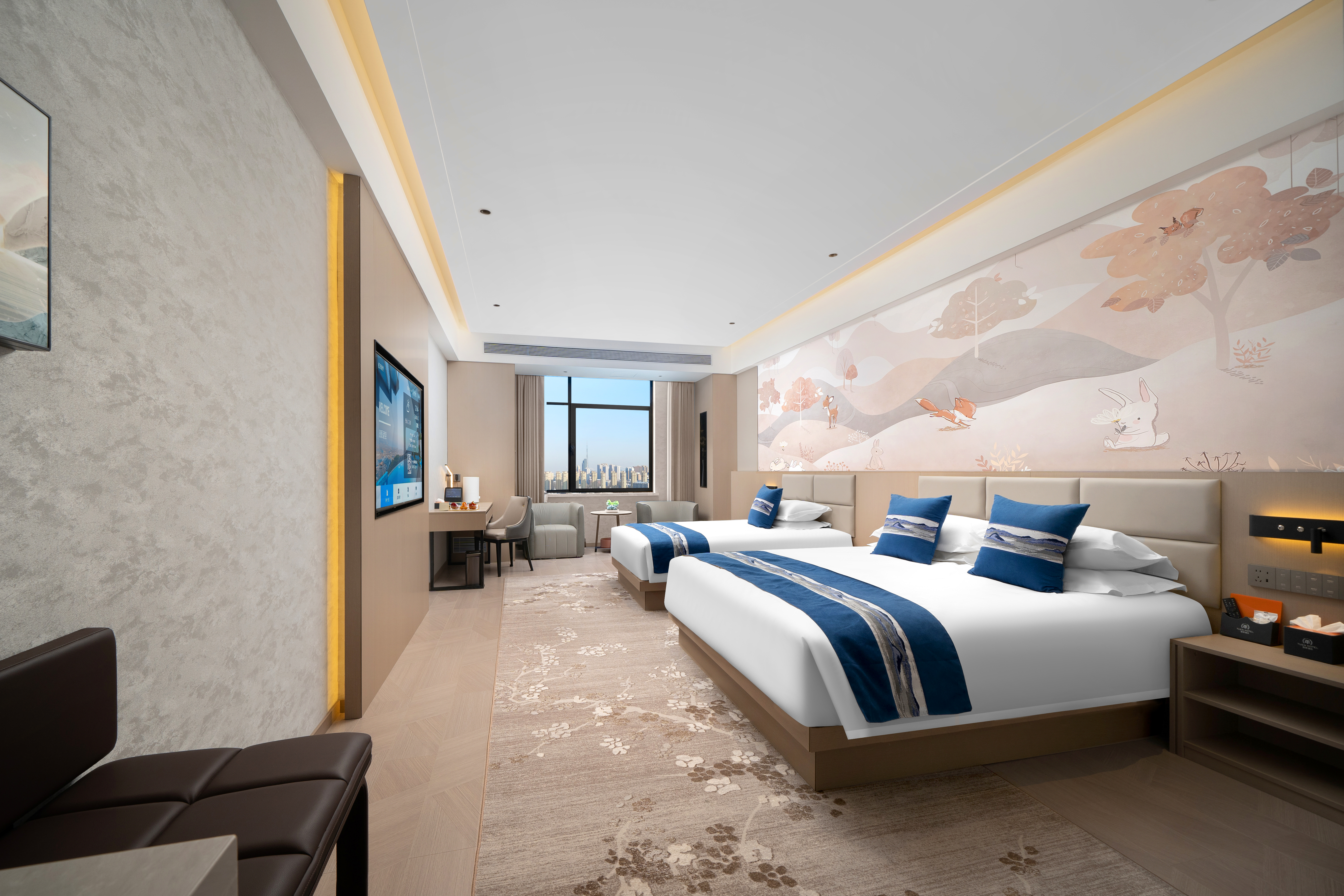 慕思·景观奢华双床房(办公桌椅+小冰箱+智能马桶)