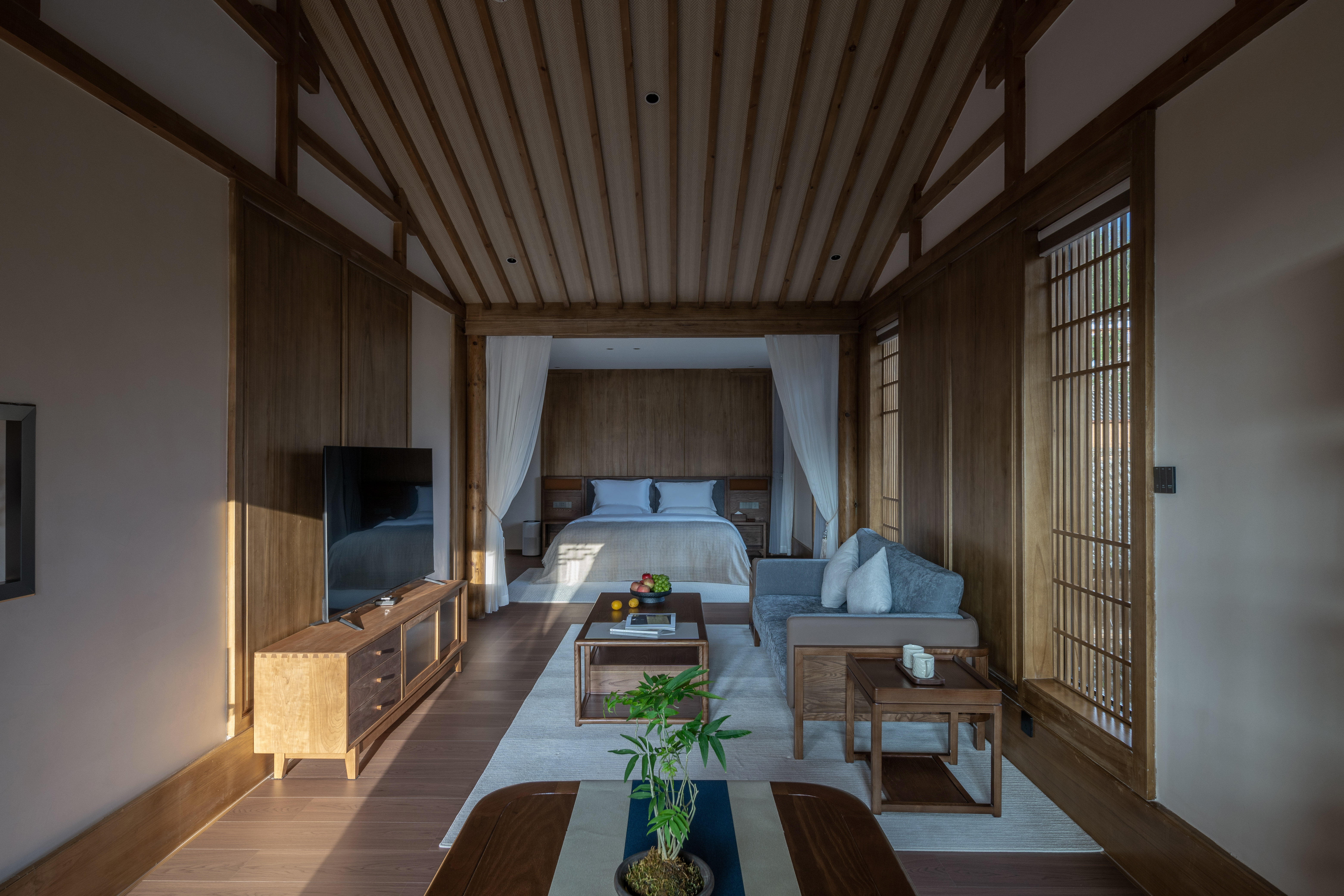 竹喧·豪华景观大床套房(科勒智能马桶衞浴+金可儿床垫+全屋中央冷暖空调+智能语音系统)