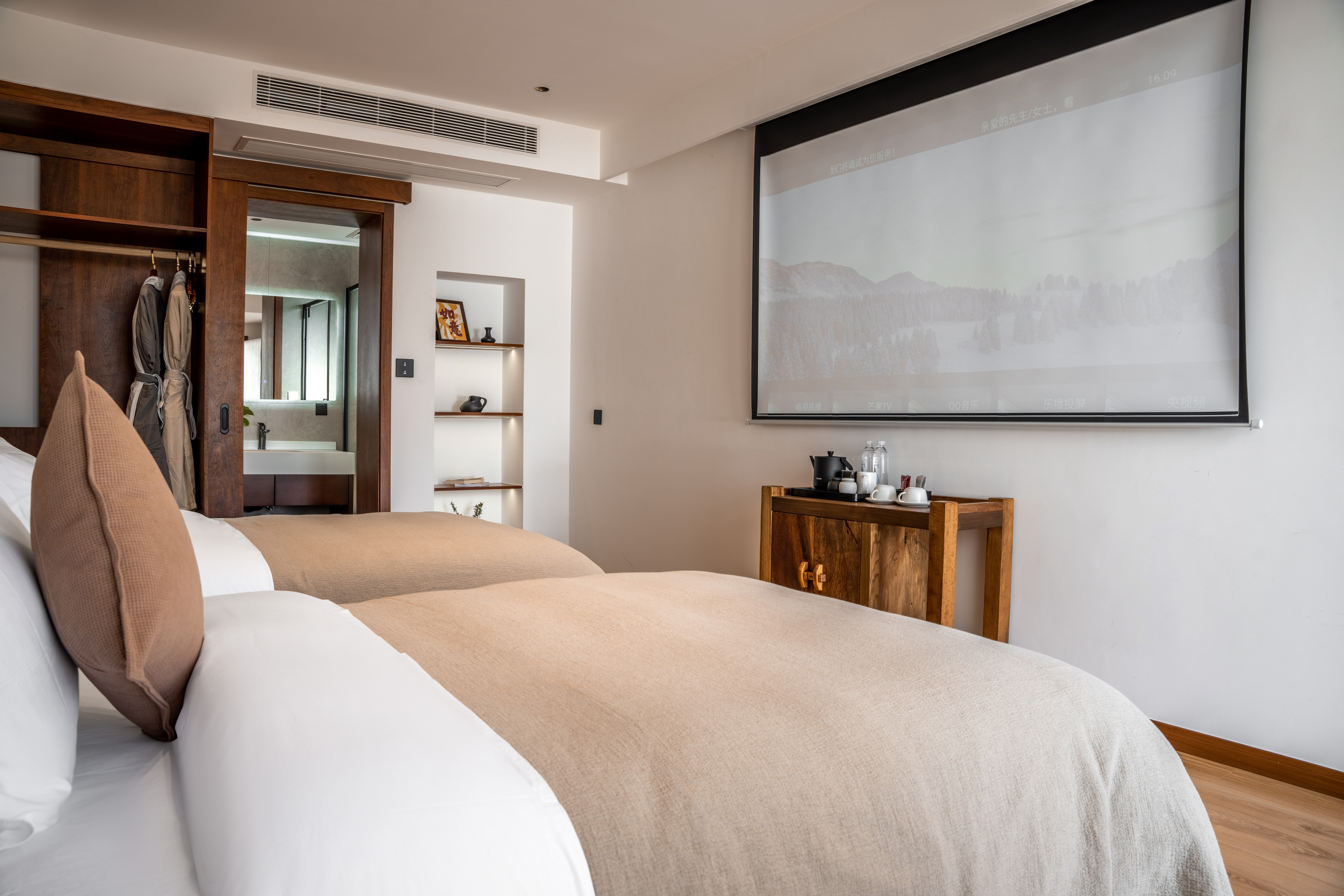 寻梦.院景双床房(私人庭院-中央空调+白鹅绒被+投影+深睡眠床垫+智能语音系统)