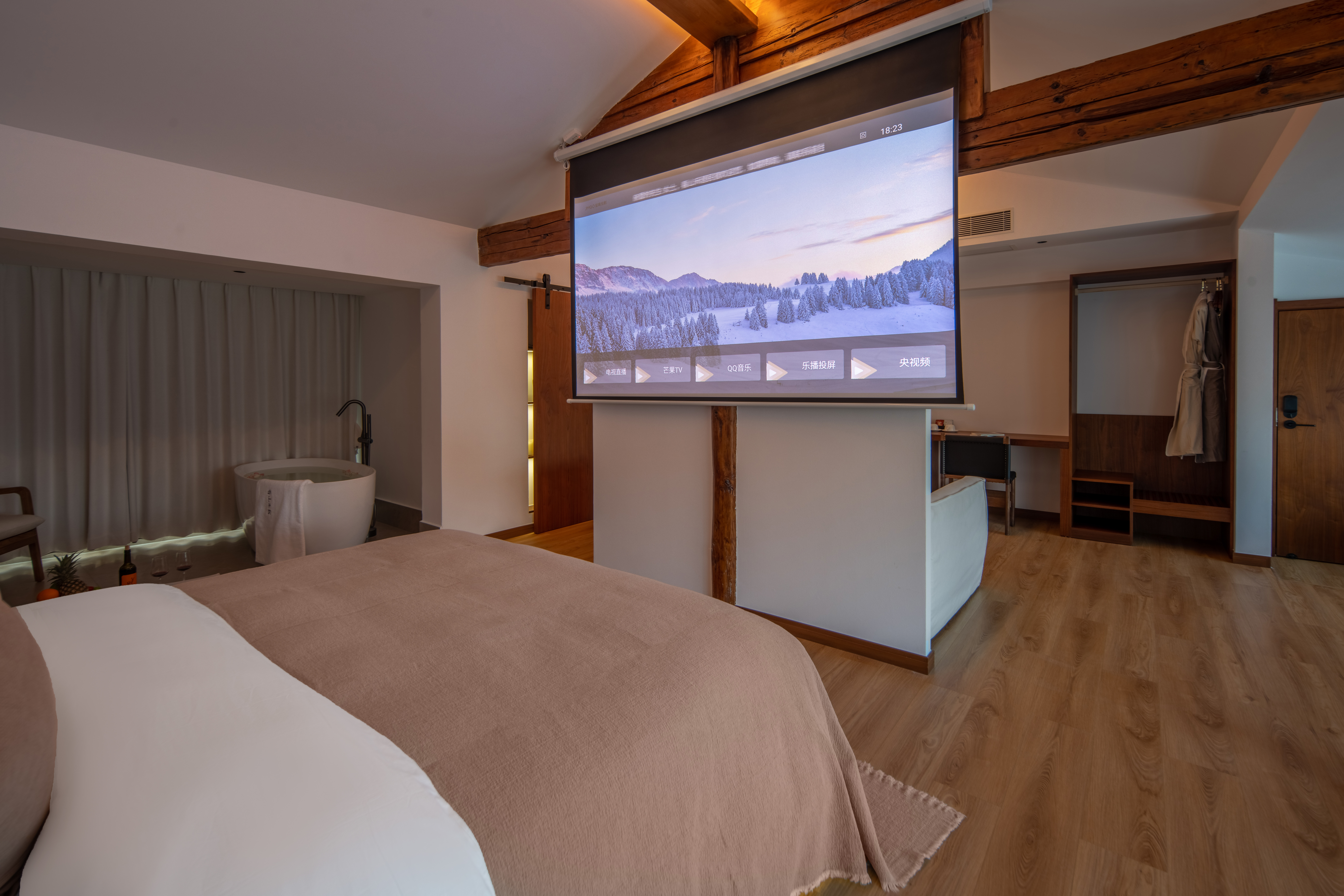 留题.景观豪华大床房(中央空调+白鹅绒被+投影+深睡眠床垫+智能语音系统)