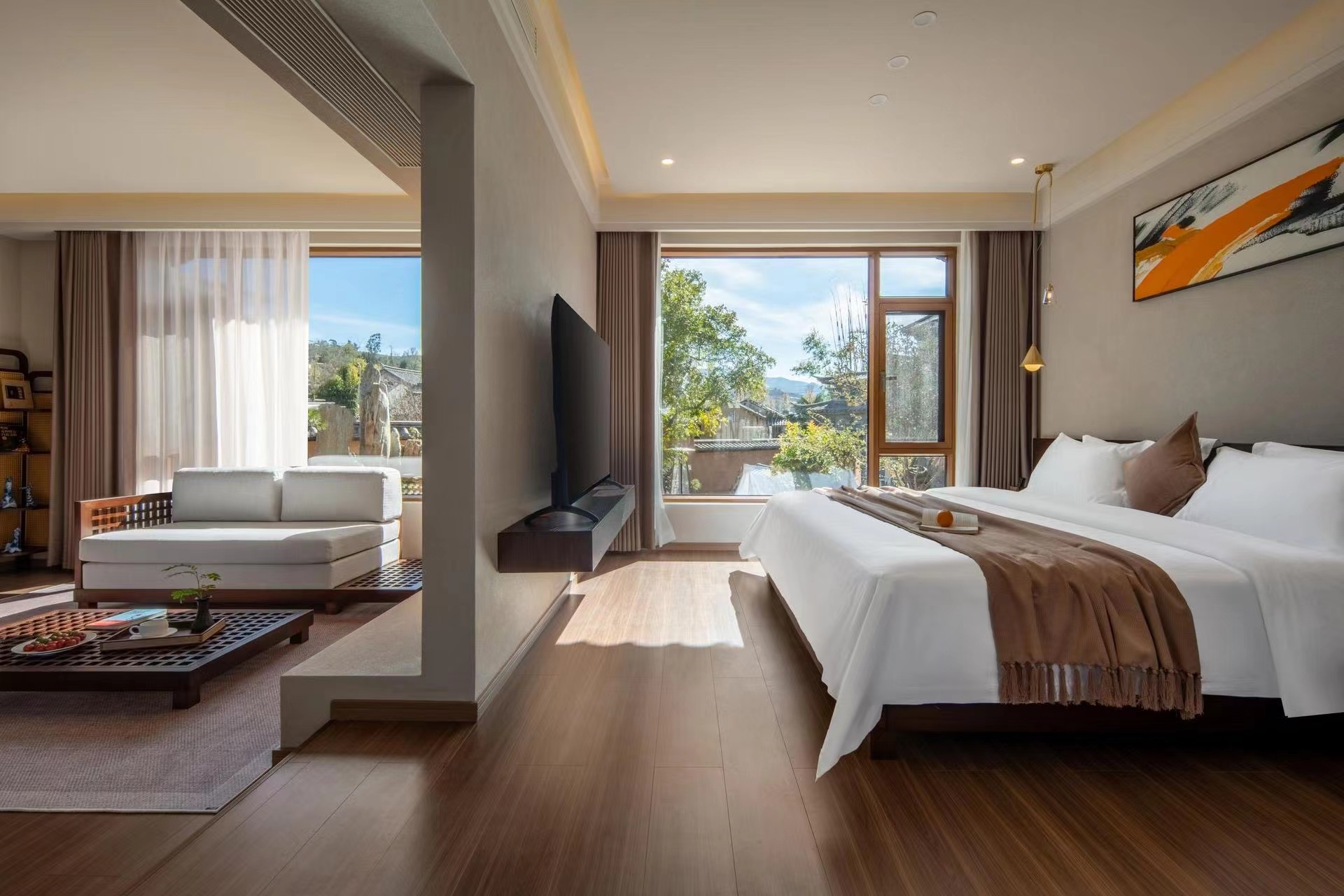 镜山山景大床房|独享阳台+中央空调+慕思床垫+独享客厅