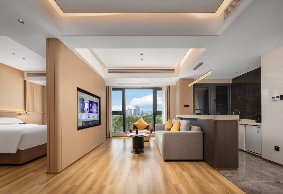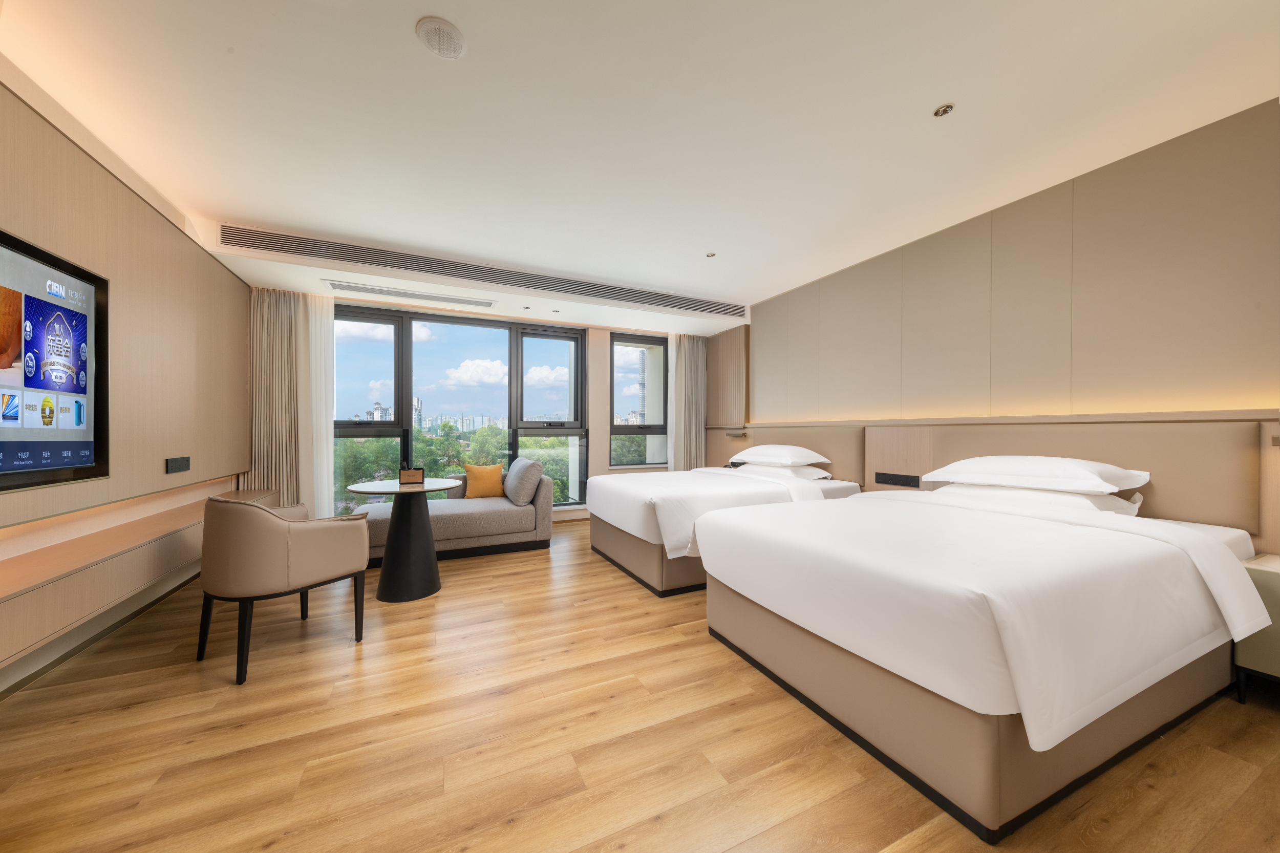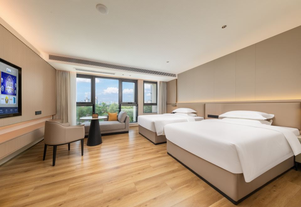 轻奢城景双床房(46平大空间+坐卧长沙发+独立分区+智能客控+65寸高清投屏)
