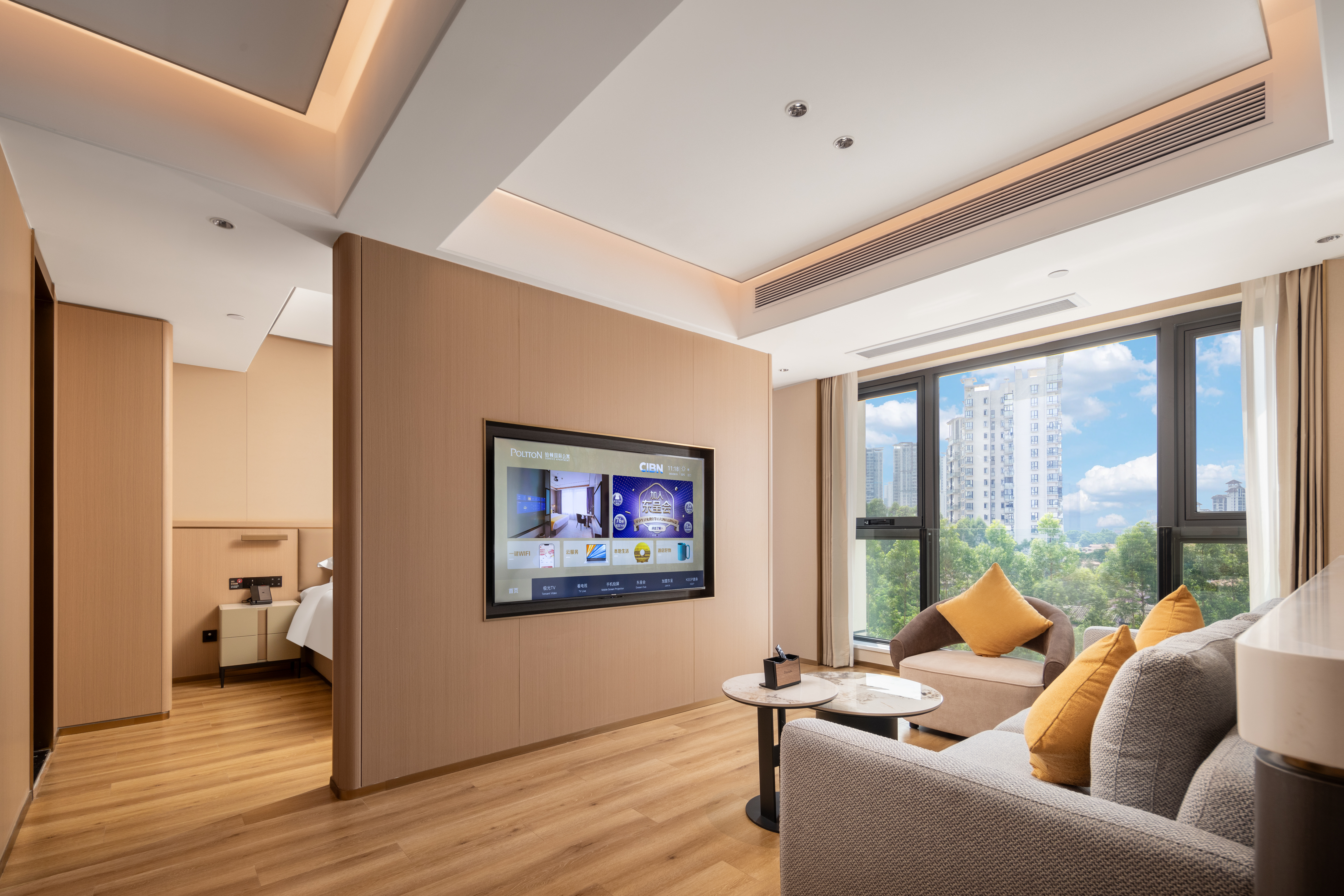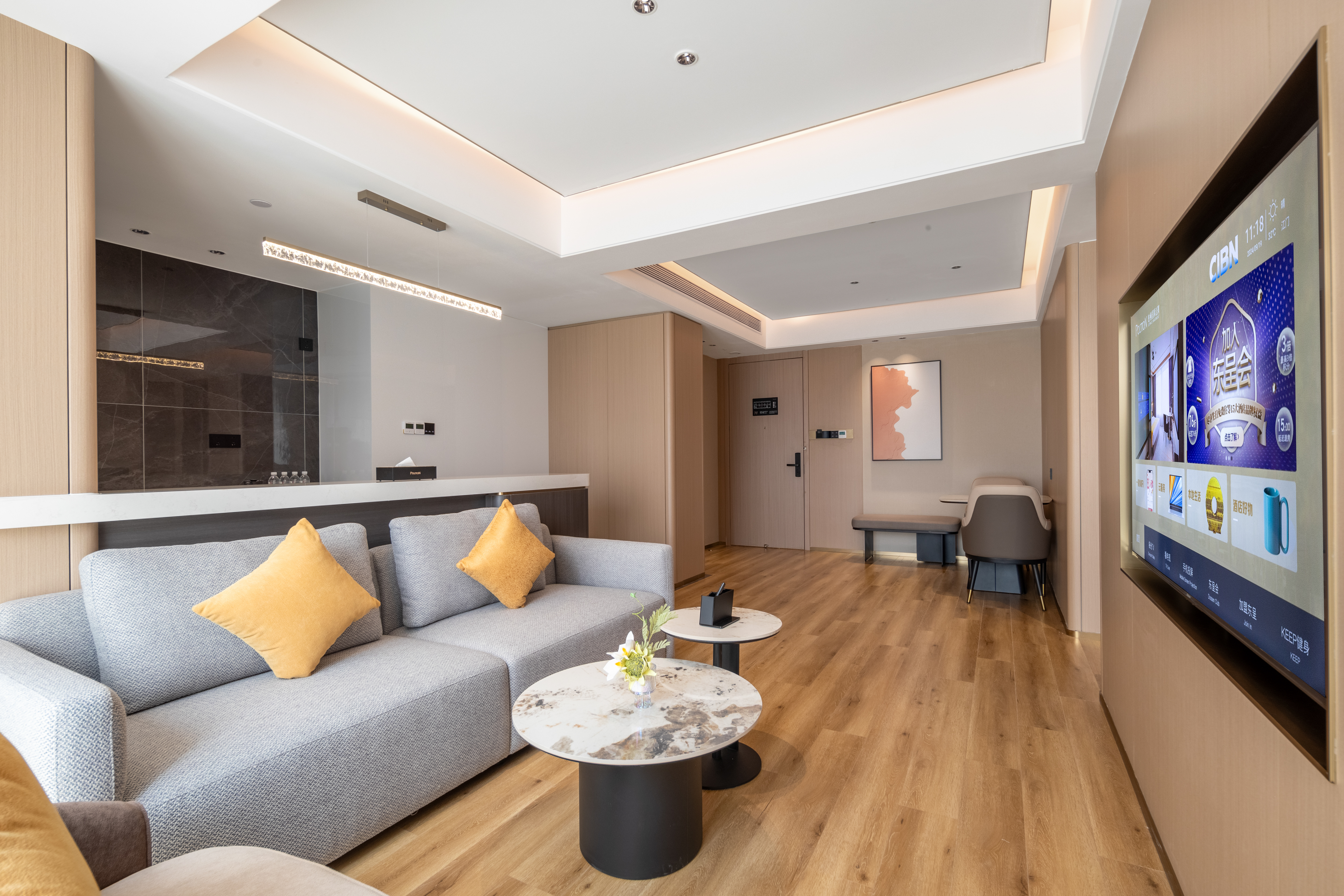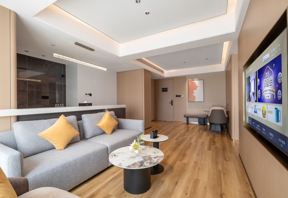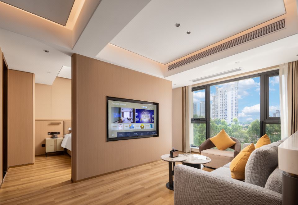奢享豪华套房(60平大空间+180度全景落地窗+大会客区+坐卧长沙发+65寸高清投屏)