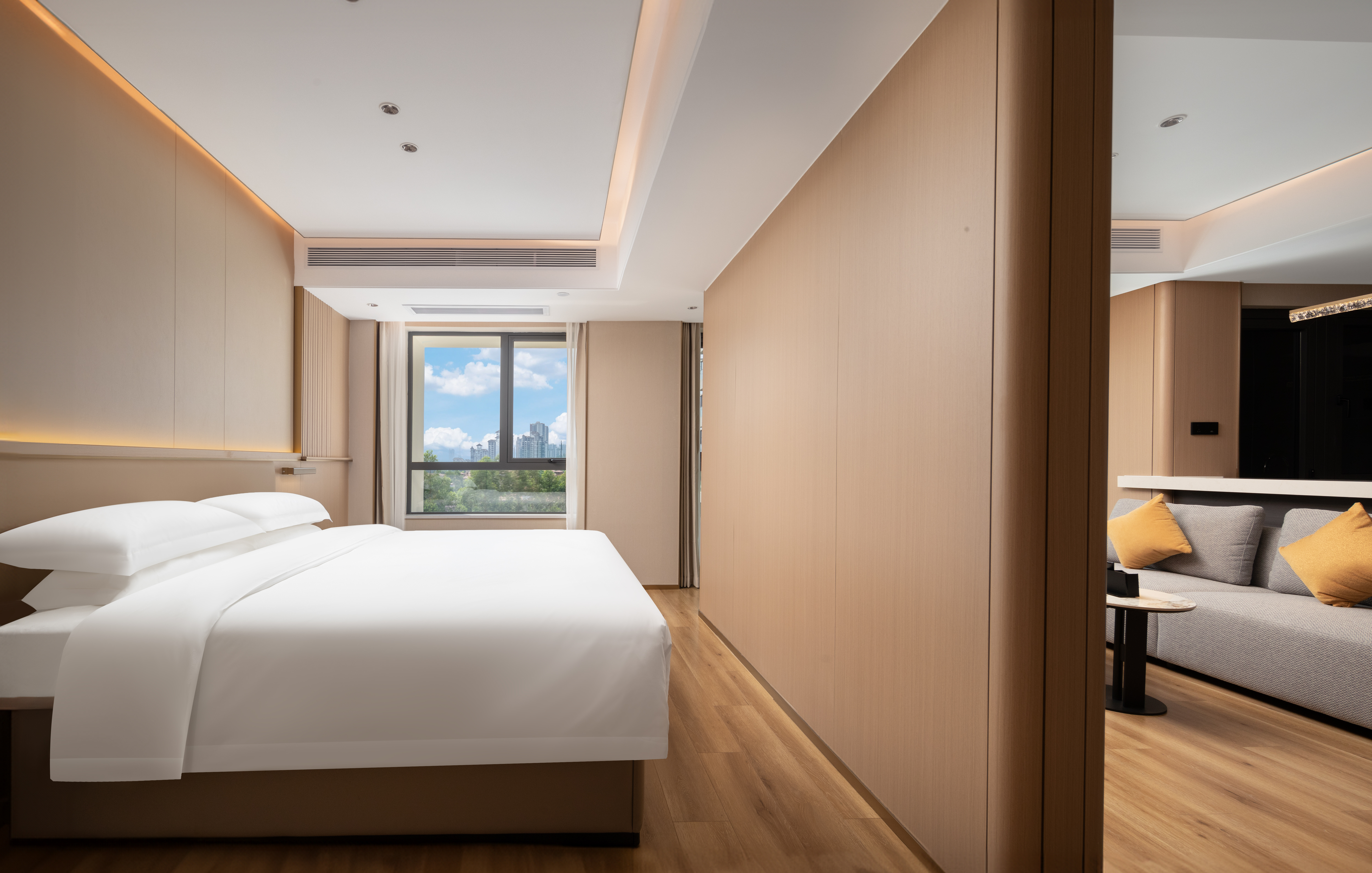 轻奢城景双床房(46平大空间+坐卧长沙发+独立分区+智能客控+65寸高清投屏)