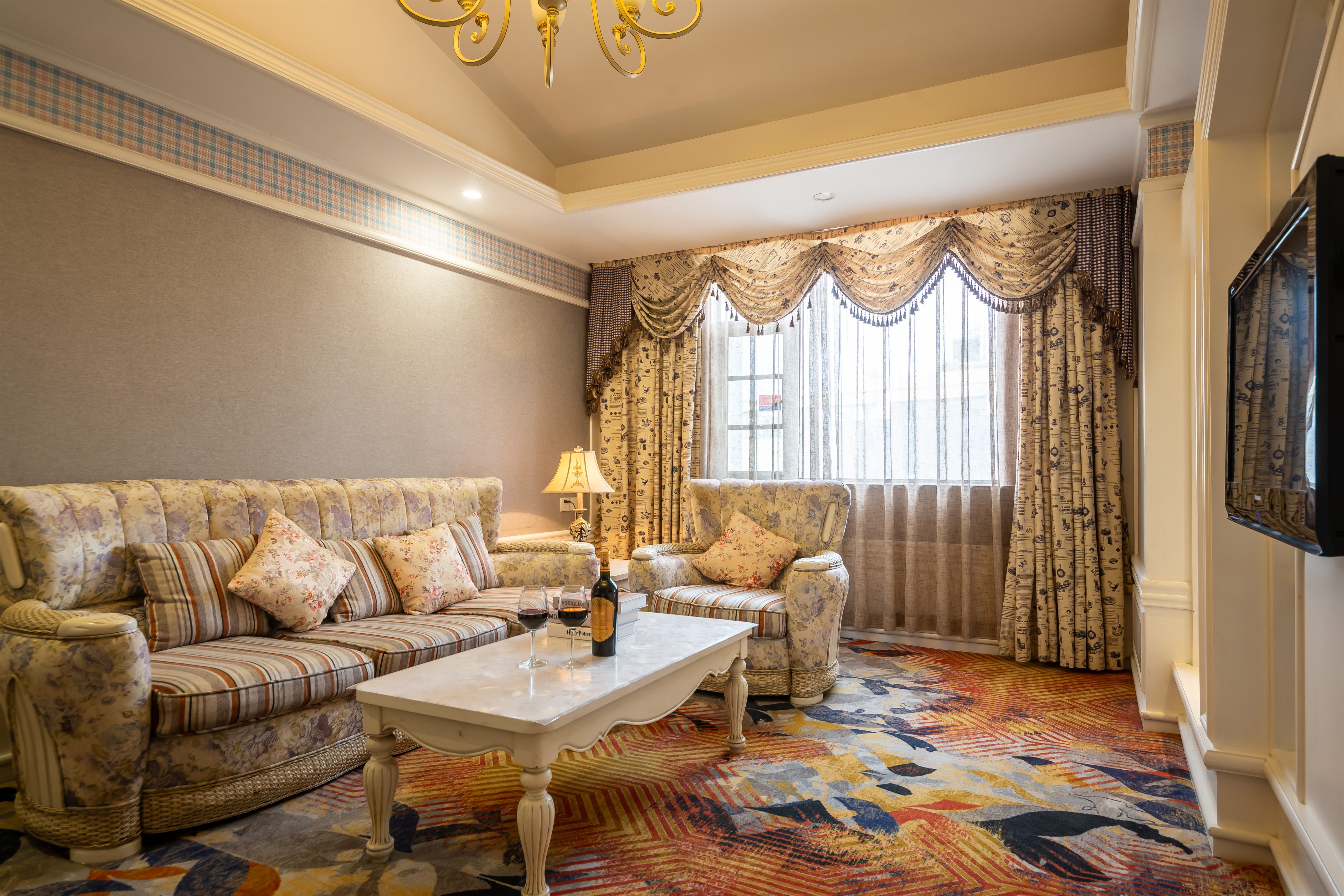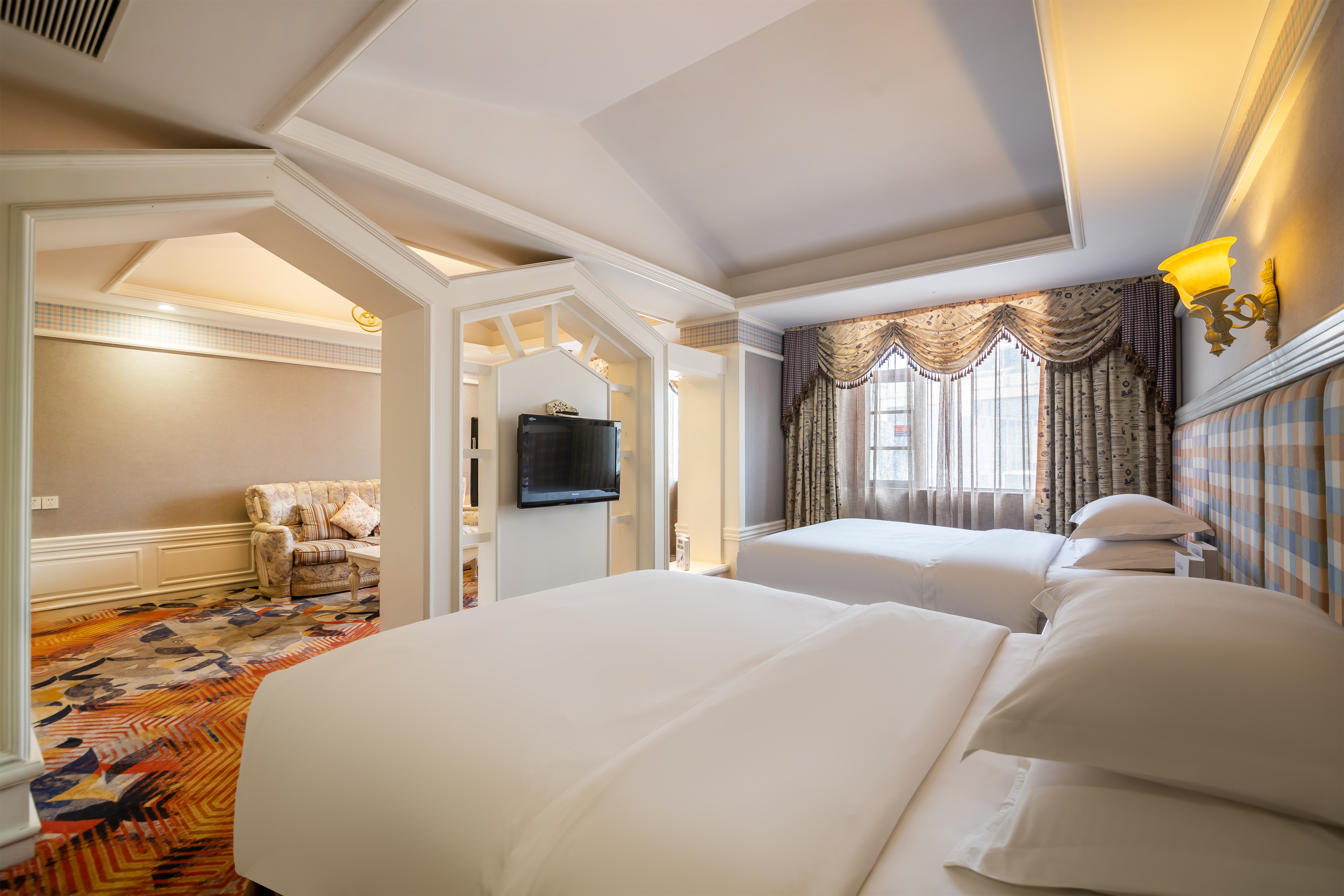美式田園雙大床親子家庭套房(獨立客廳+防墜床圍欄+三人沙發)