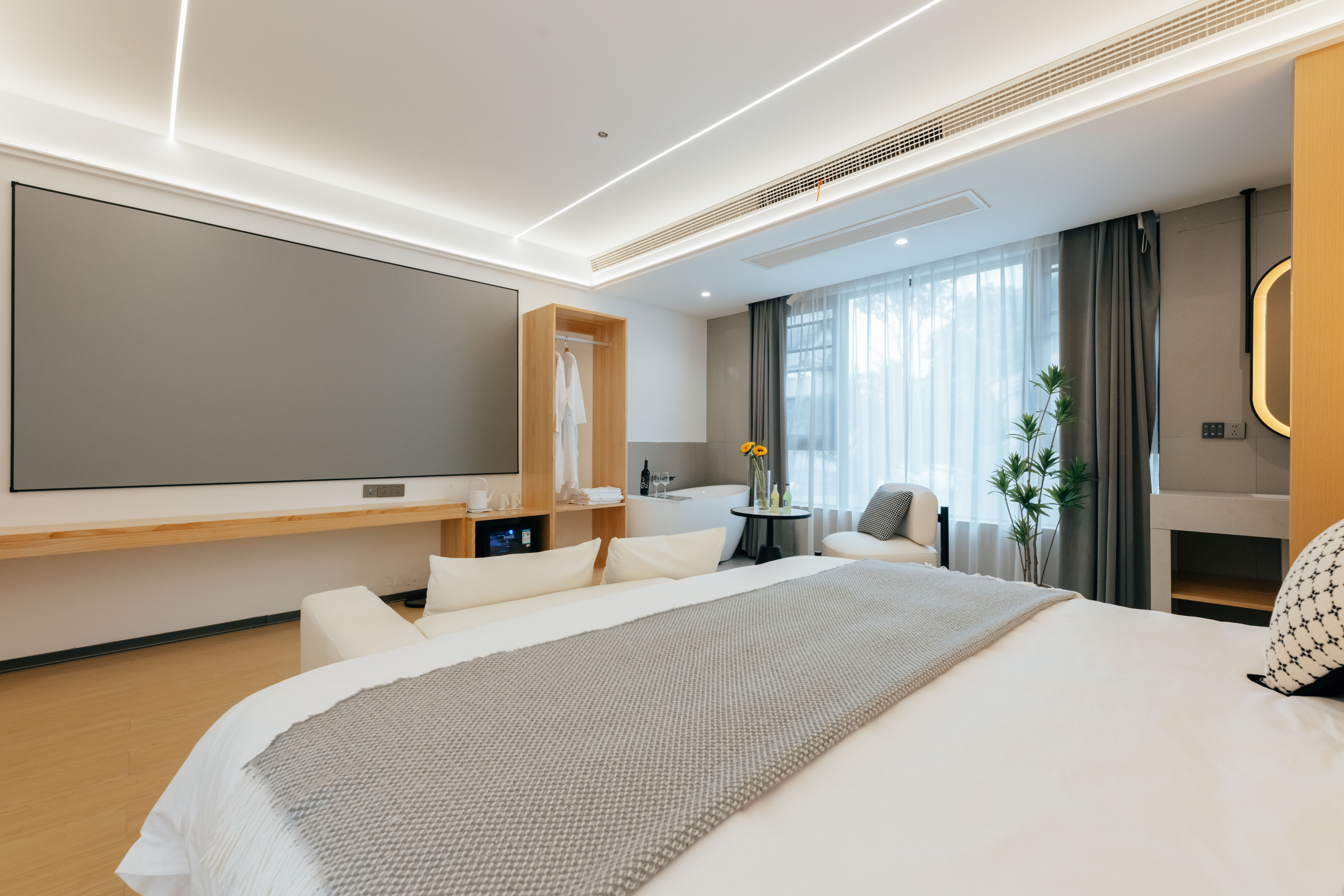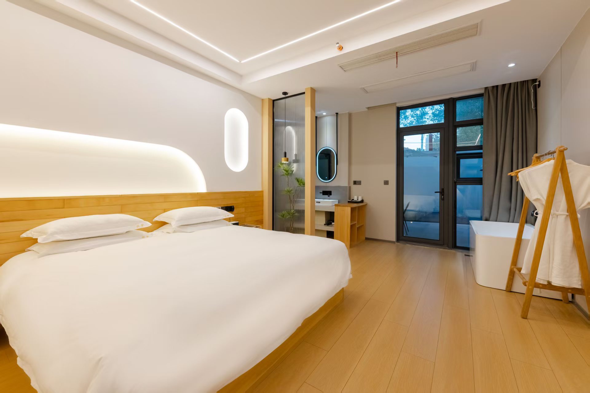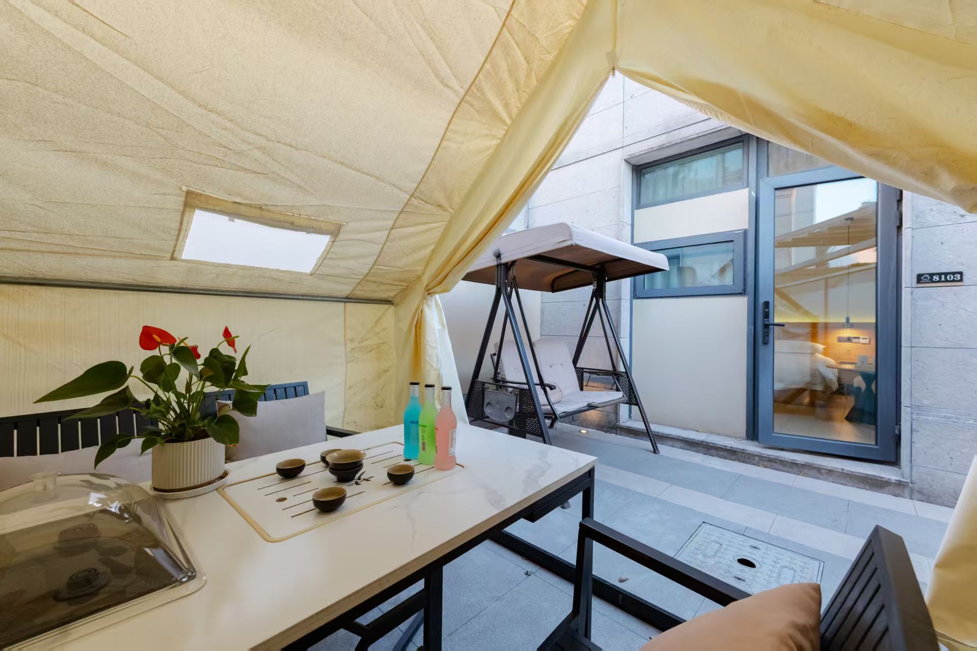 地暖独享庭院大床房+私享庭院秋千摇椅+沙发+浴缸+冰箱