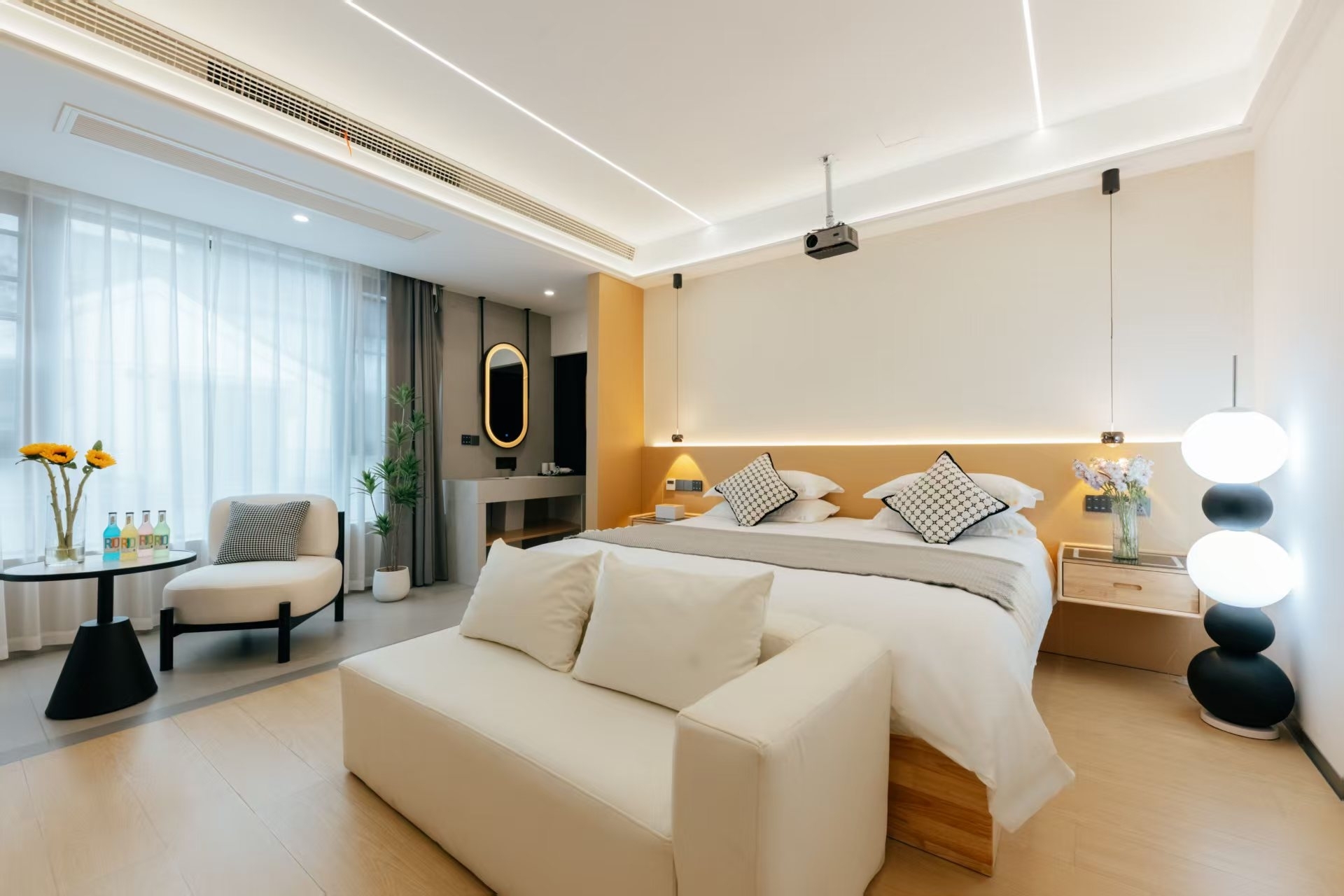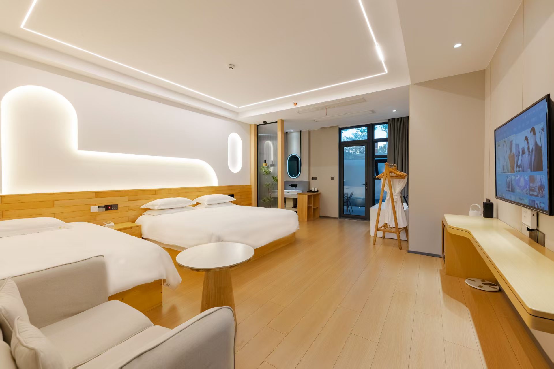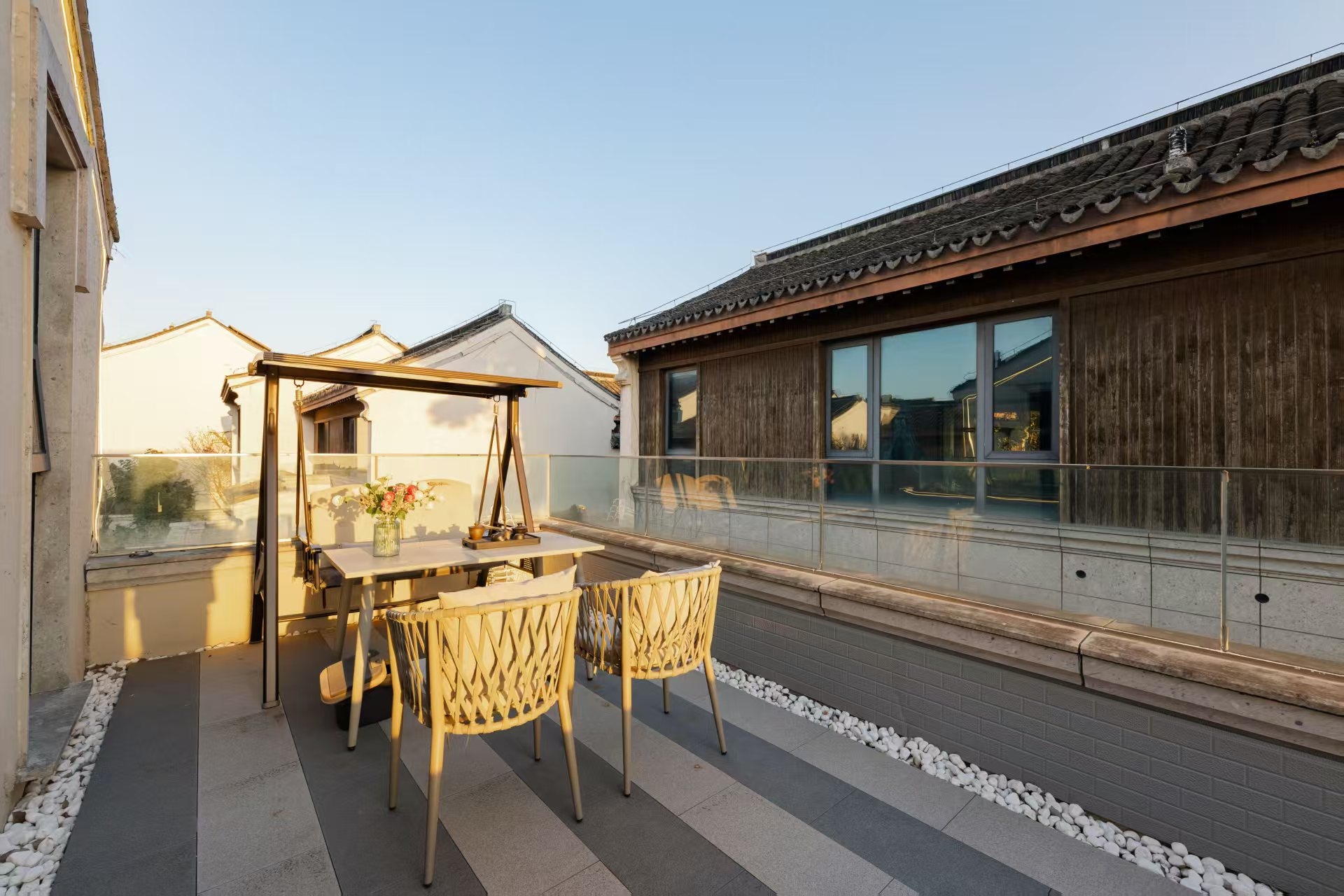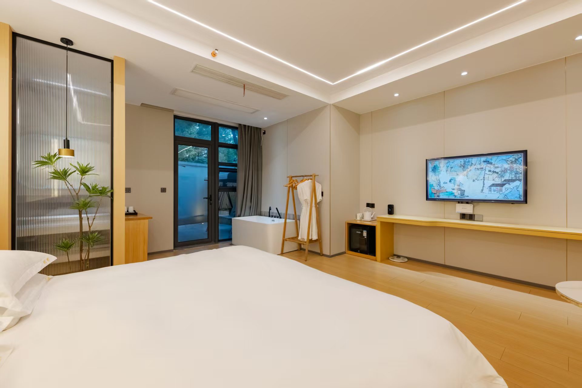 地暖独享庭院大床房+私享庭院秋千摇椅+沙发+浴缸+冰箱