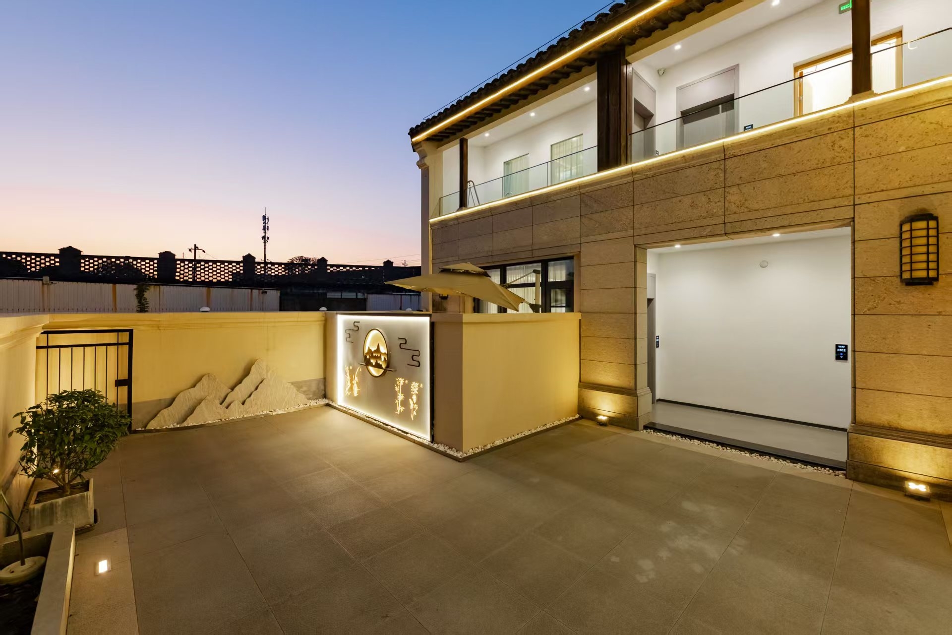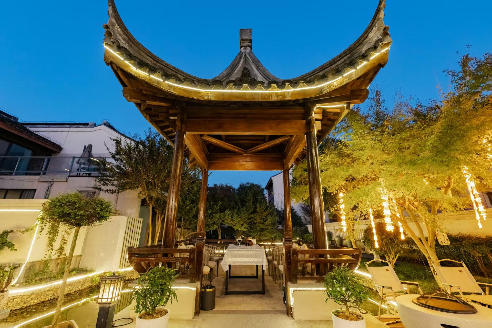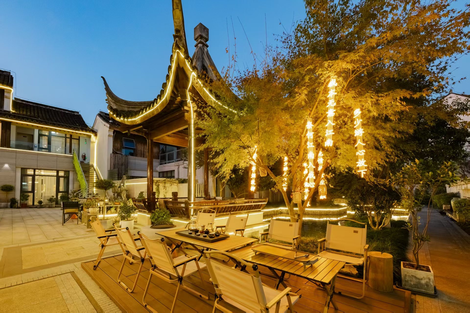 地暖精品庭院家庭亲子房+休闲庭院茶台+浴缸+冰箱