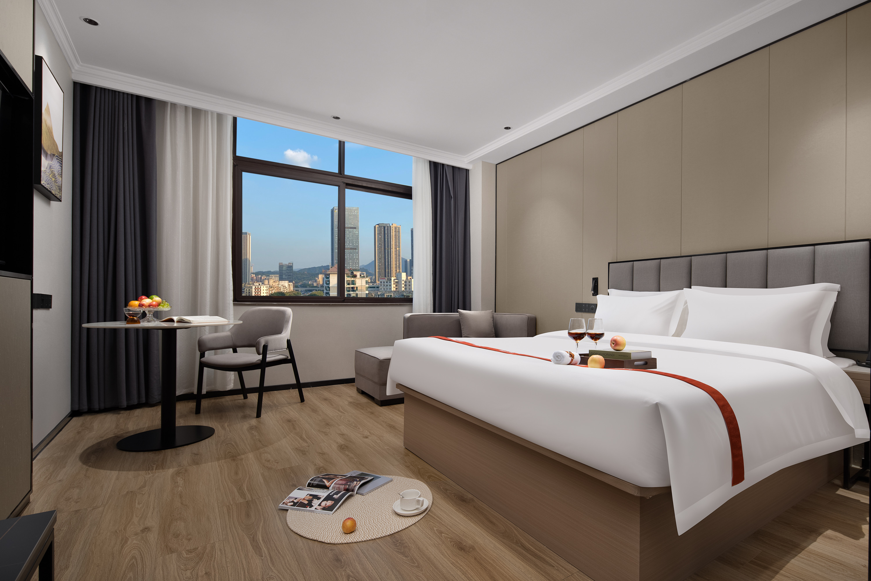 东方大床房(零压床垫+休闲沙发+55英寸影视)