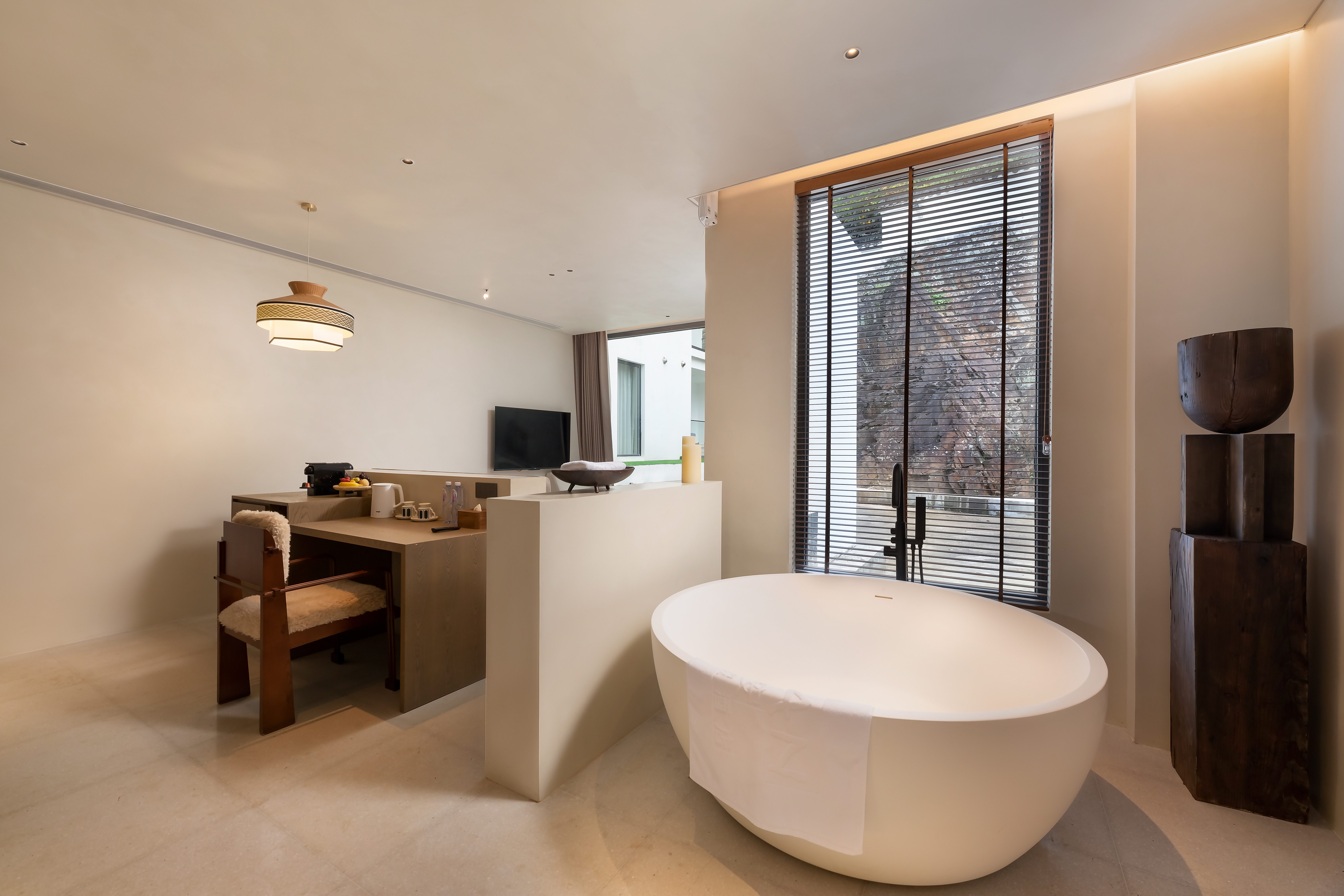 趣·山石丨大床房-庭院景观·智能马桶·阳台休闲椅+迷你冰箱+地暖
