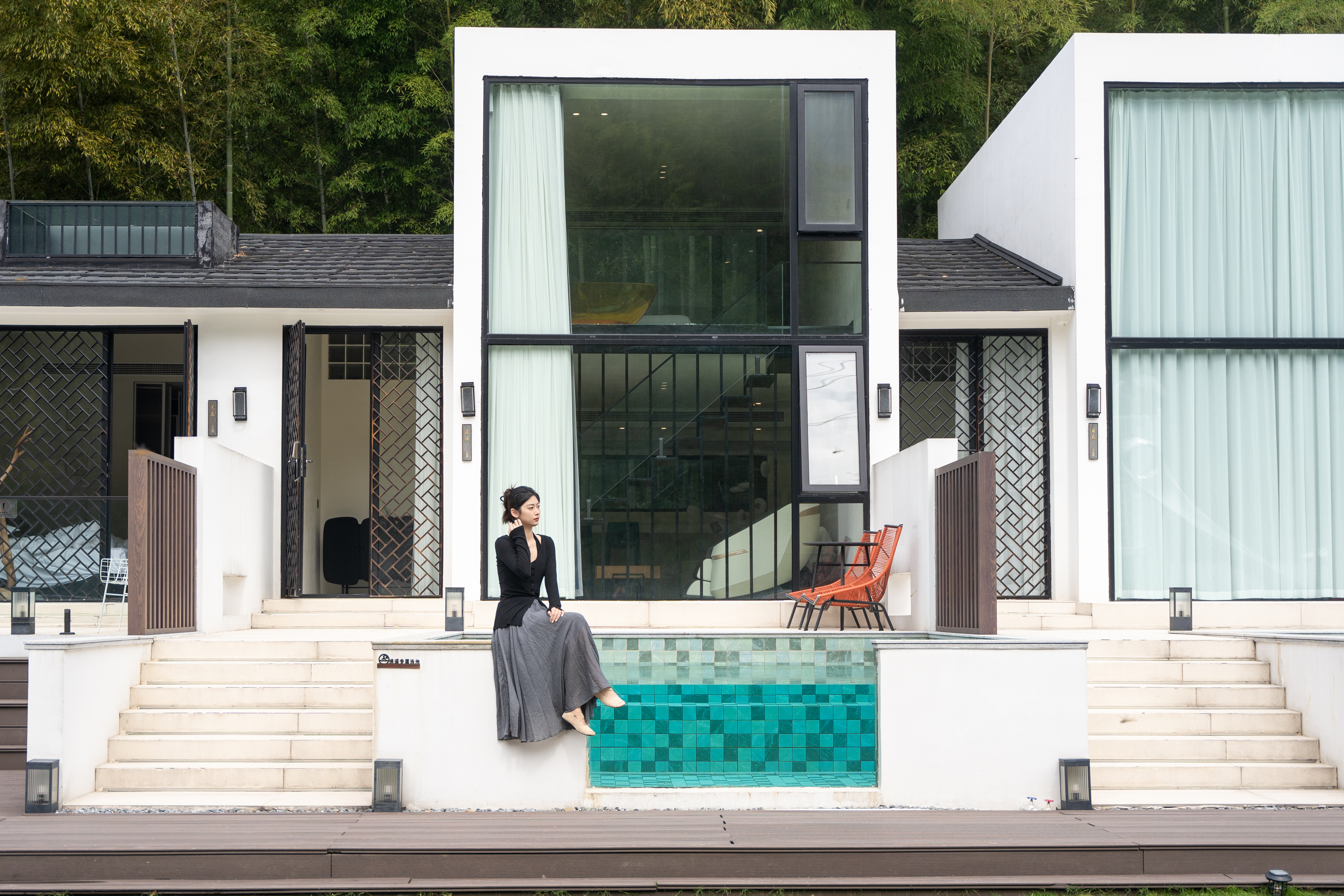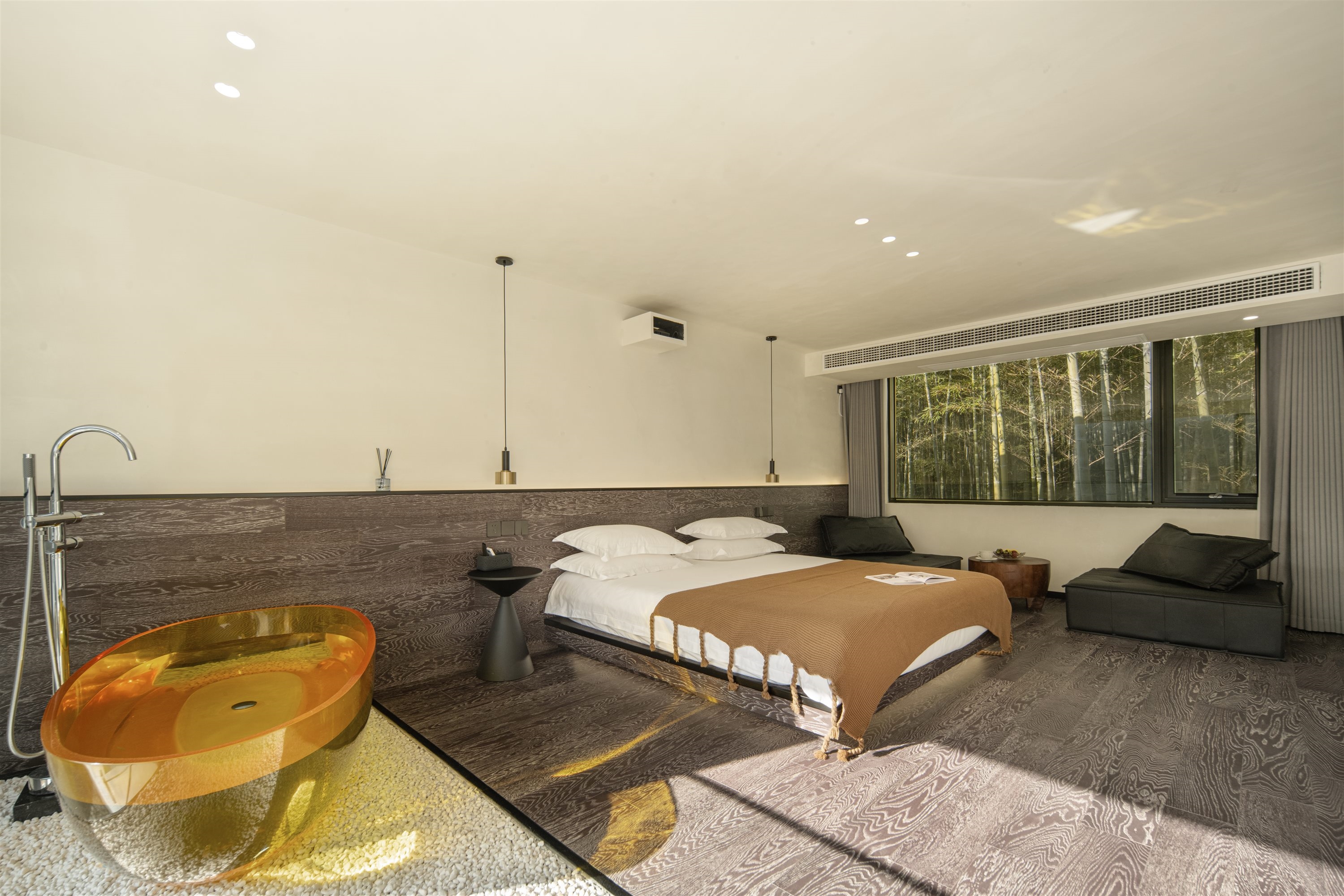 地暖·逍遥·山景loft浴缸大床房-独立户外泳池
