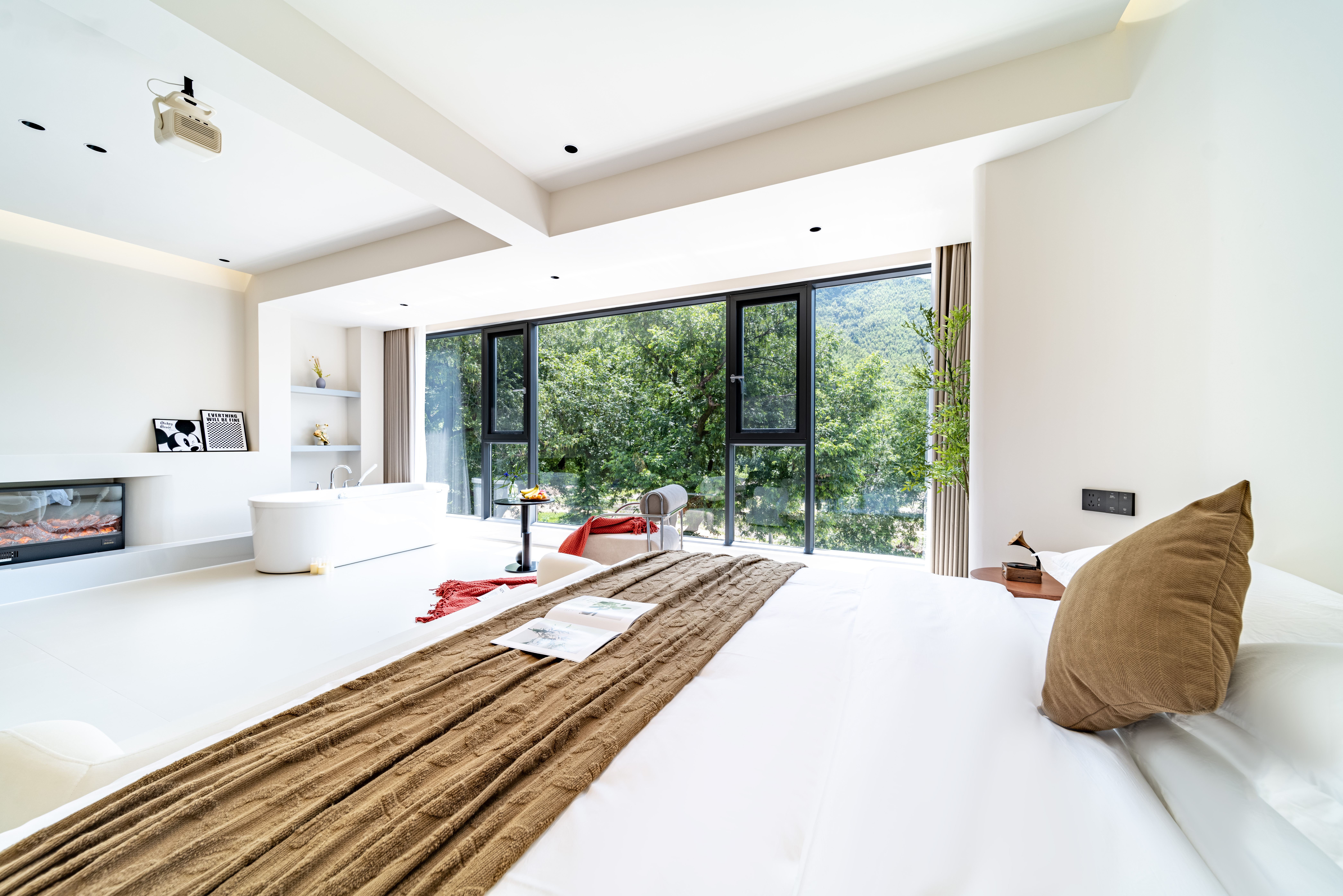 柠檬|超大落地山景大床房【深泡浴缸+巨幕投影+壁炉】