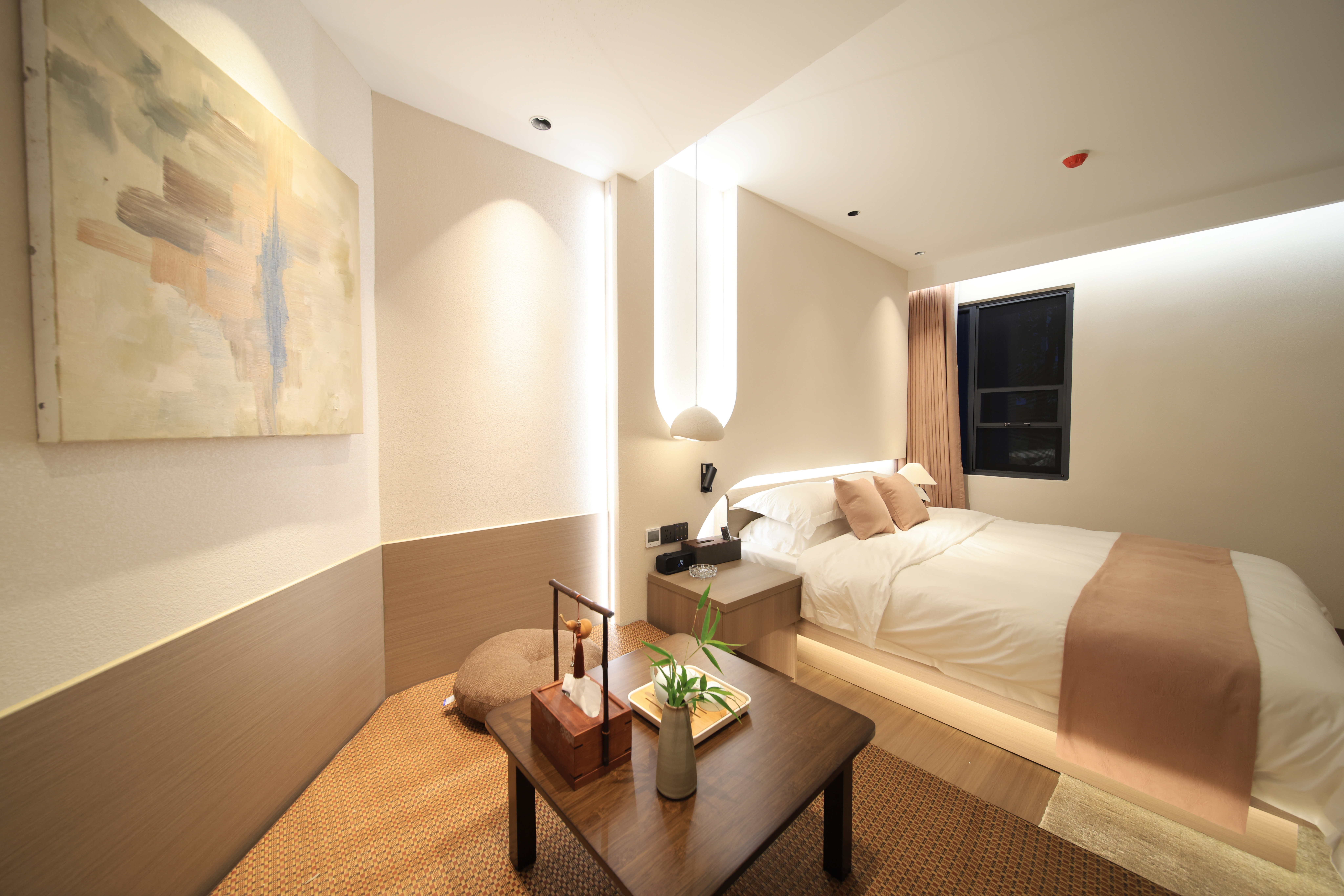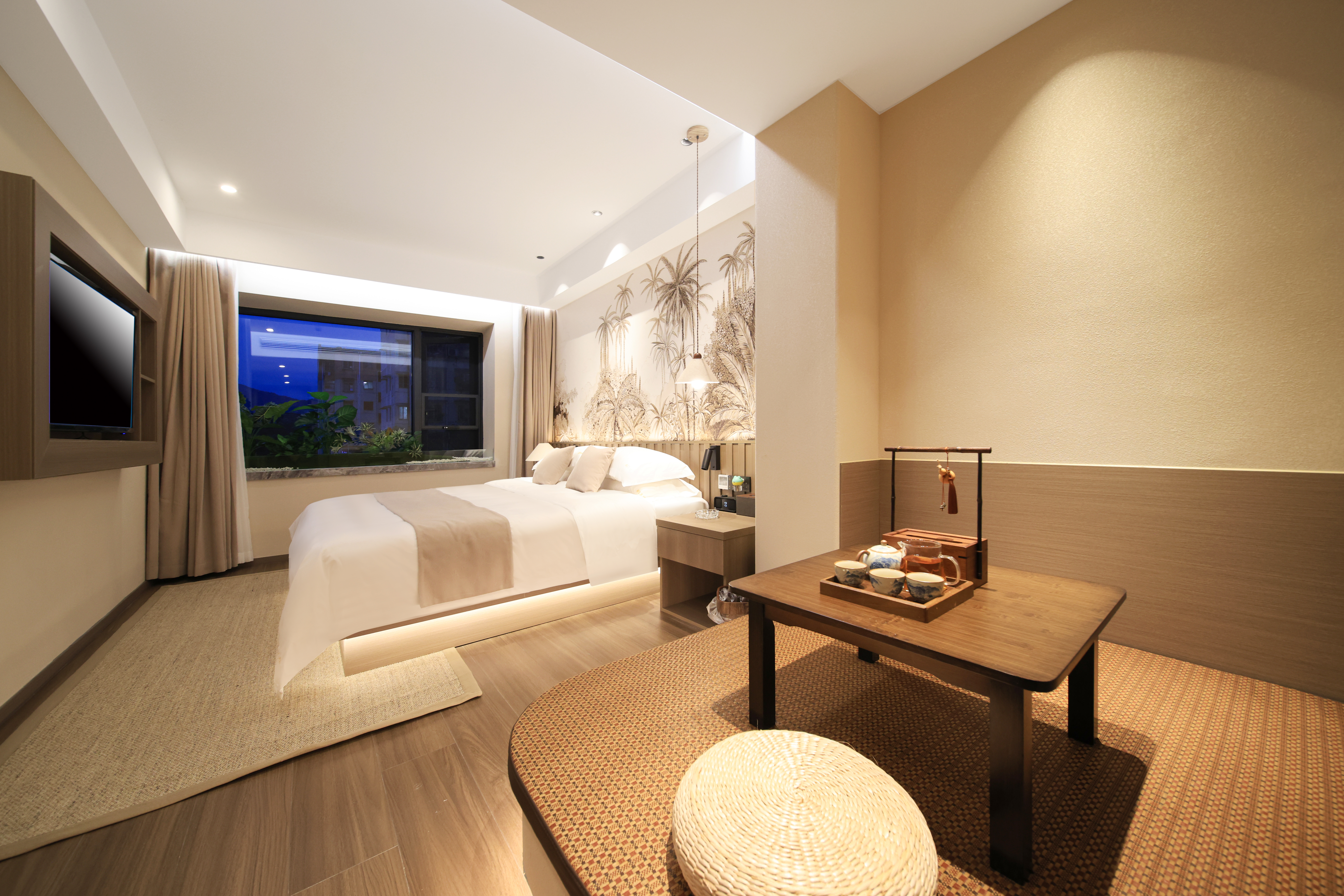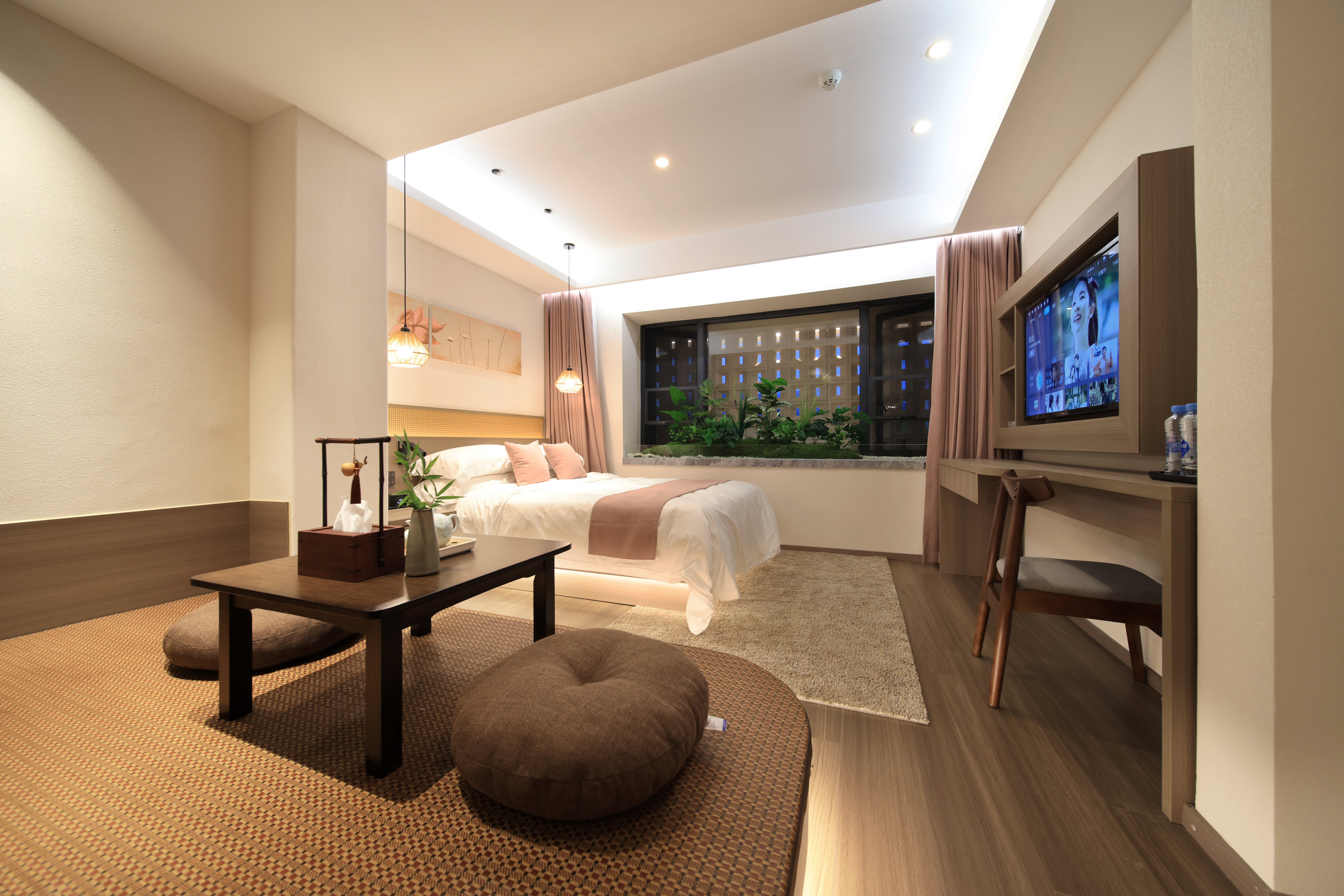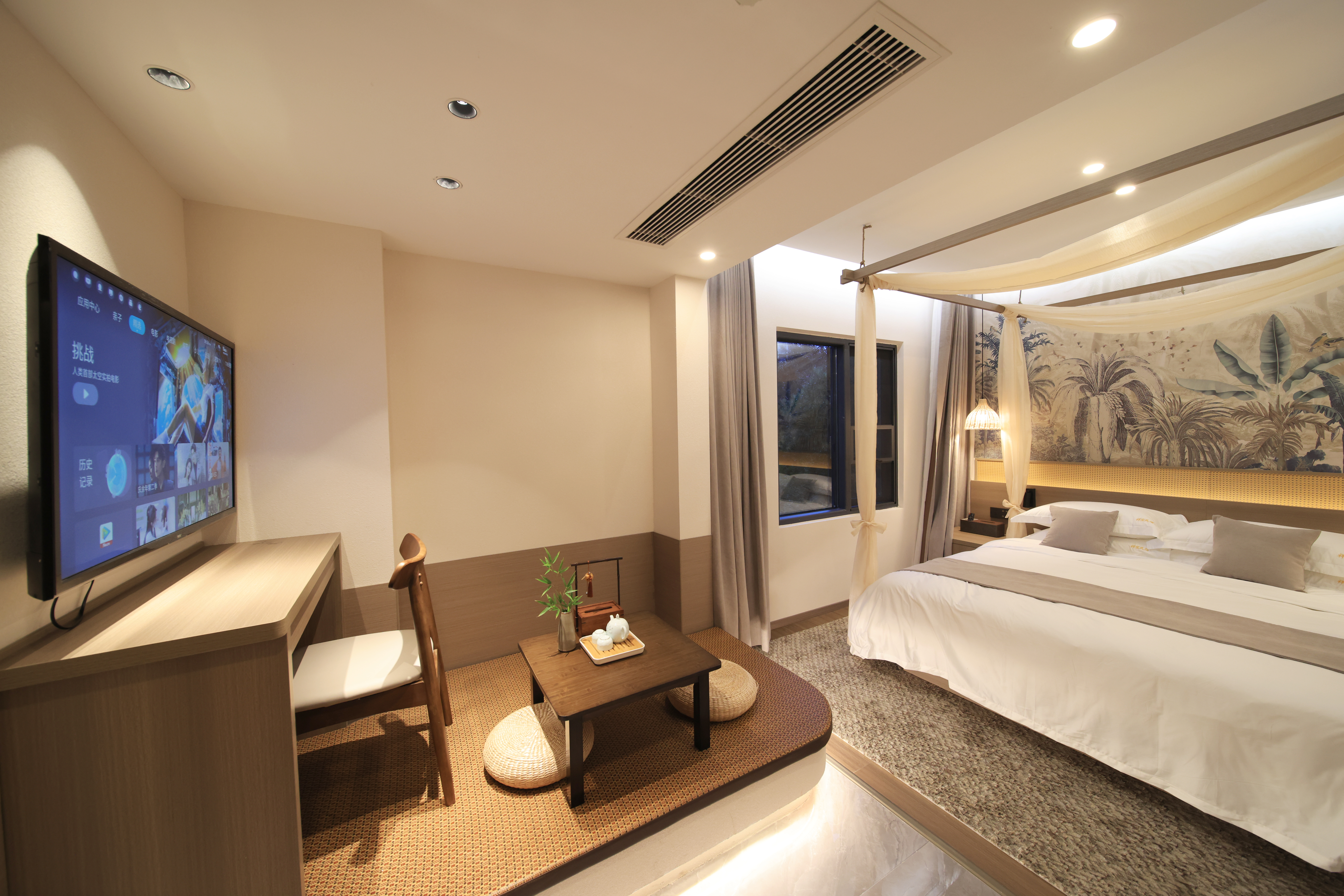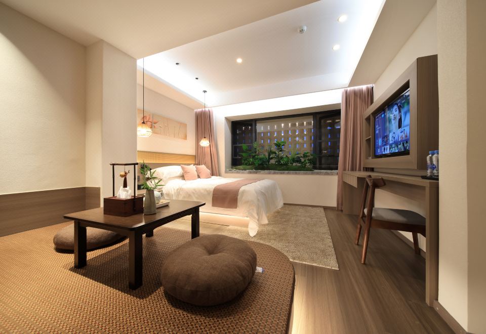 Mingyuefu Deluxe Double Bed Room – With Tea Table, Smart Home&Zero Pressure Mattress
