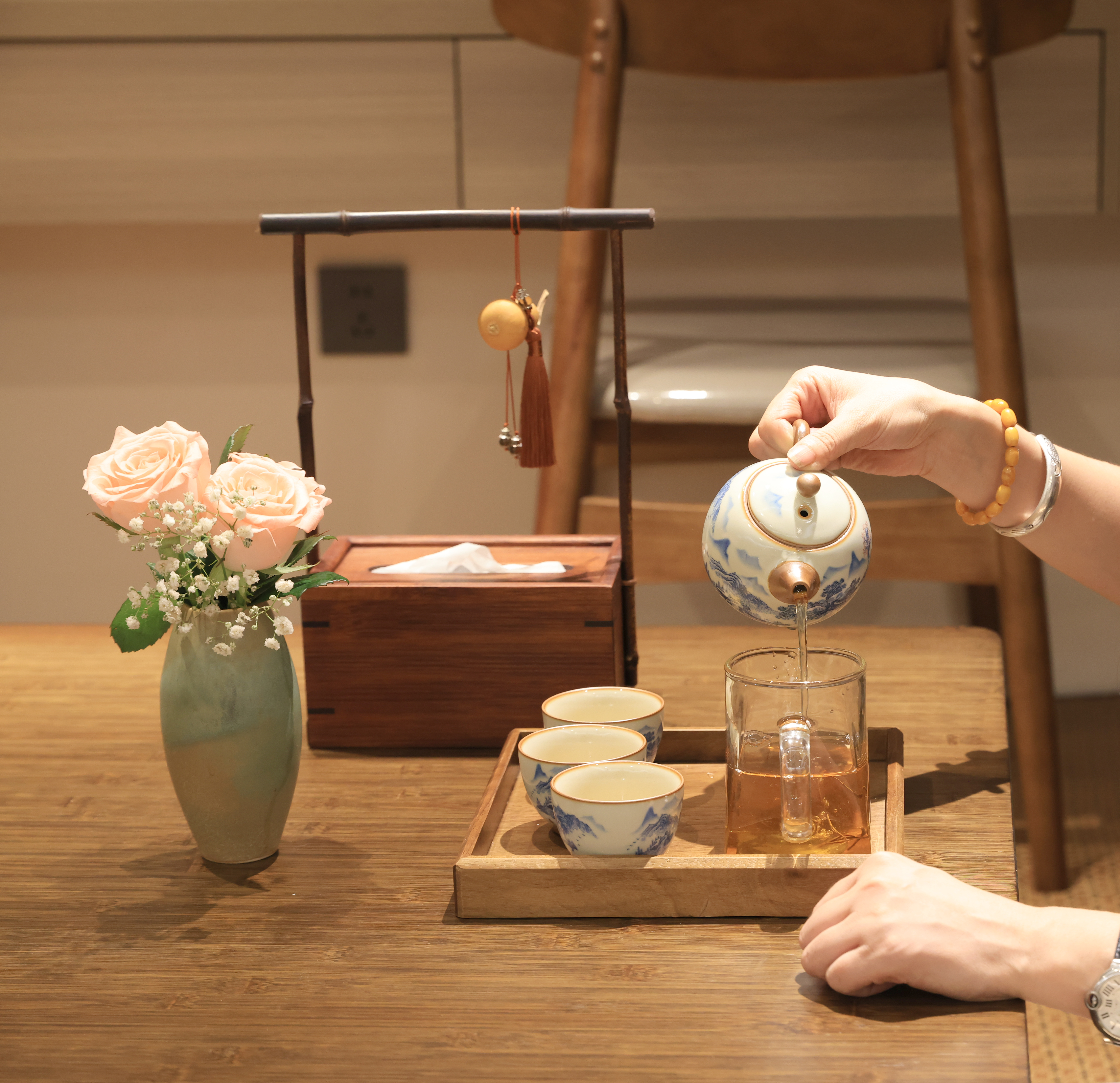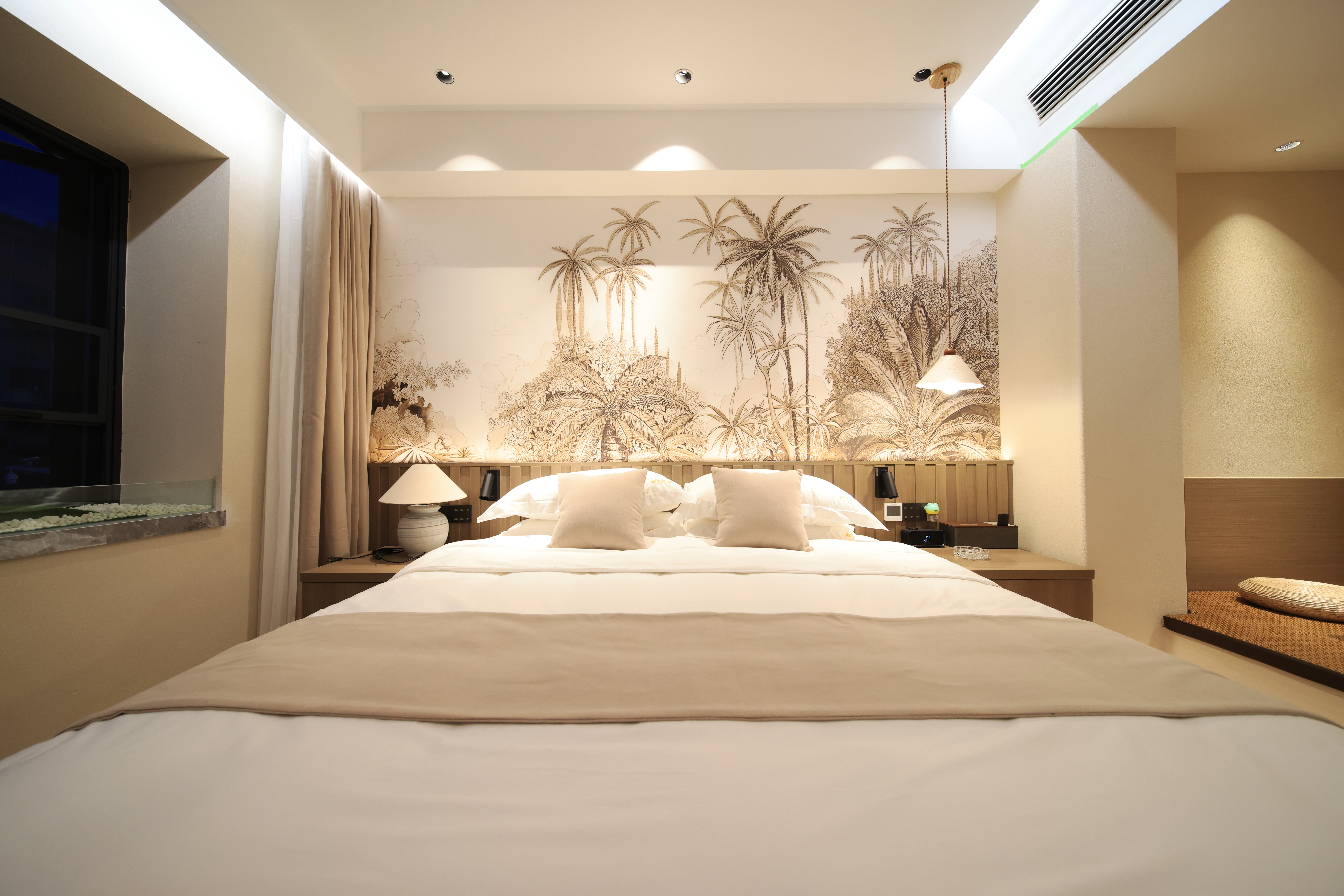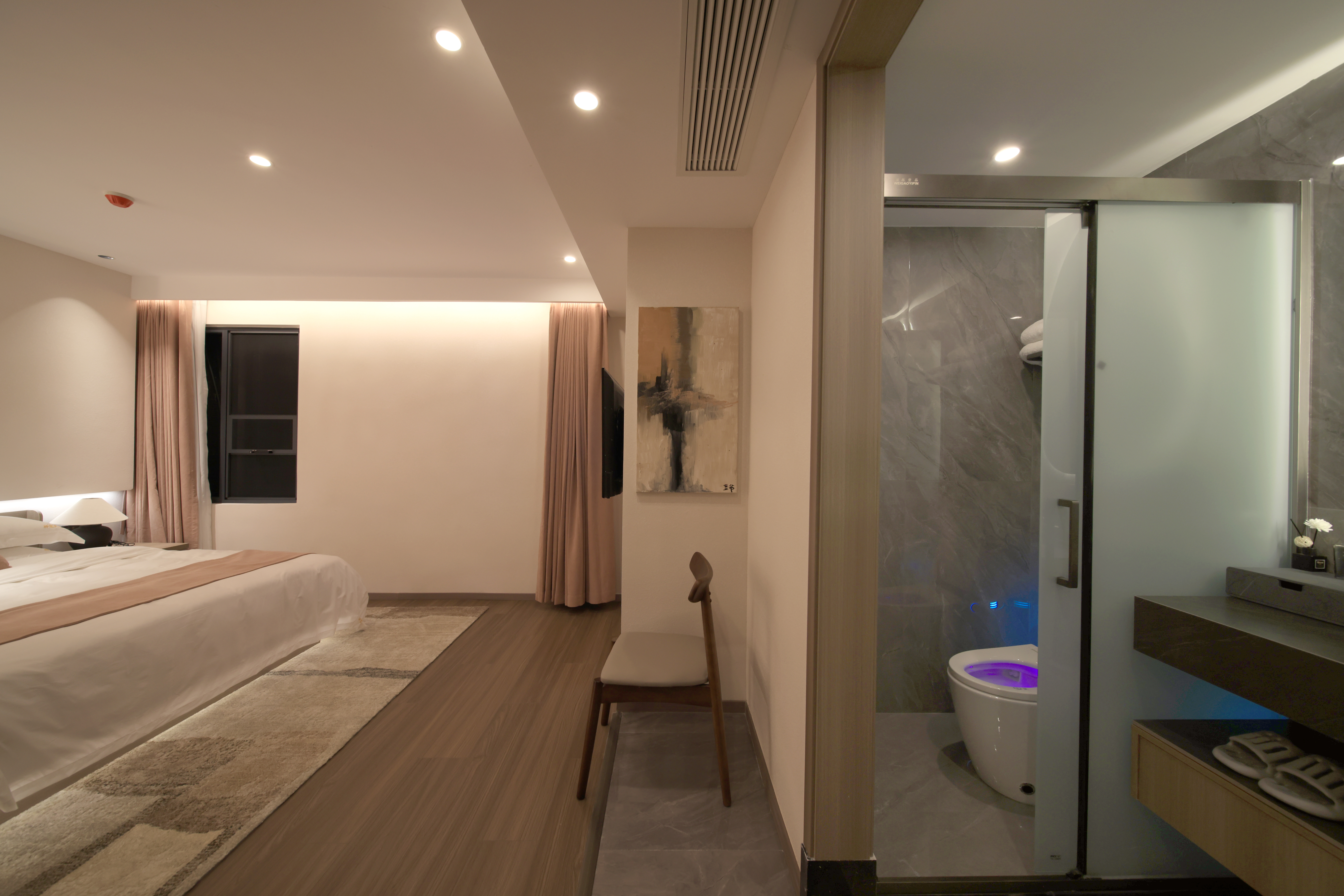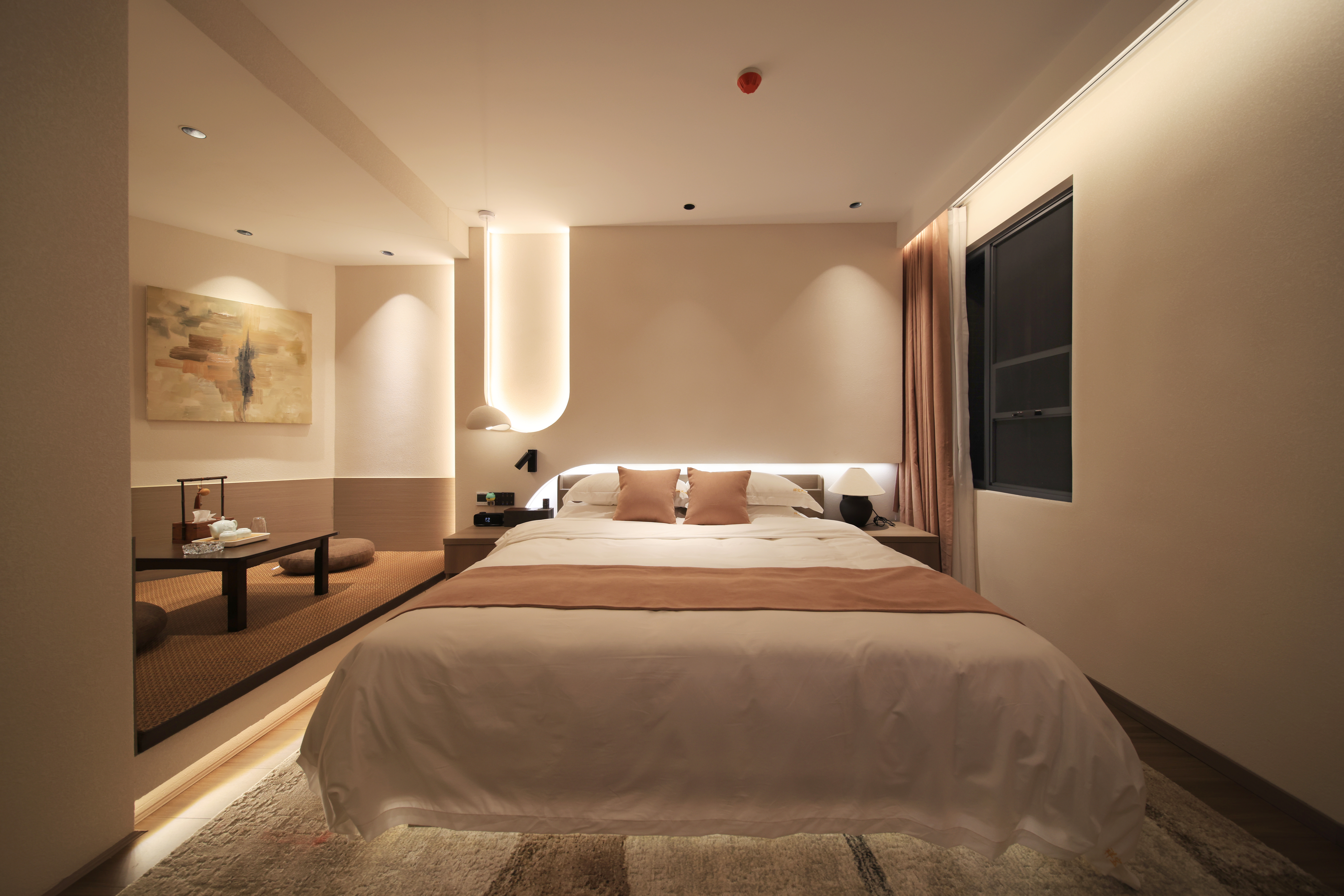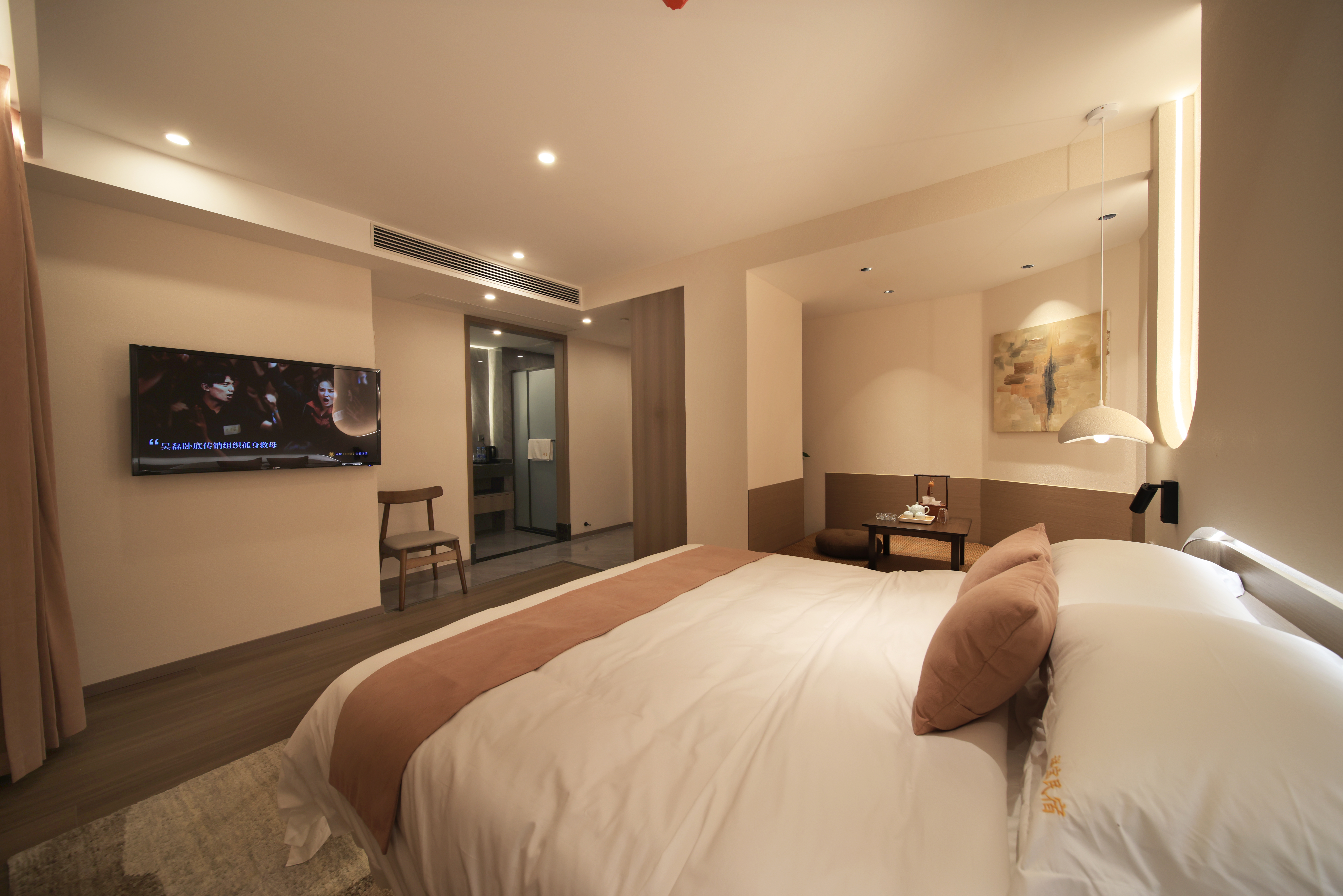 Mingyuefu Deluxe Double Bed Room – With Tea Table, Smart Home&Zero Pressure Mattress