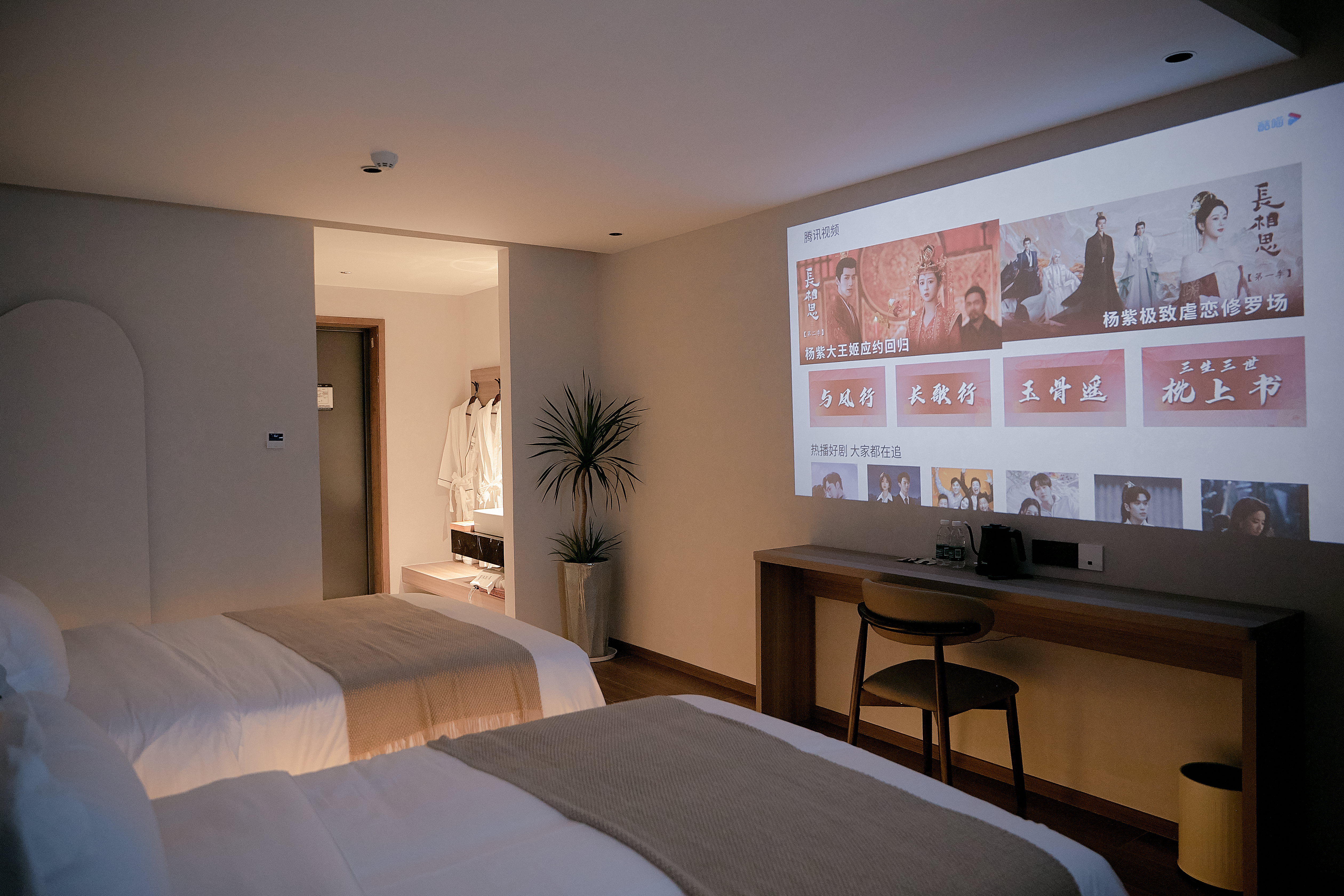 沐溪·空中遠景高級雙床房(零壓床墊+投影)