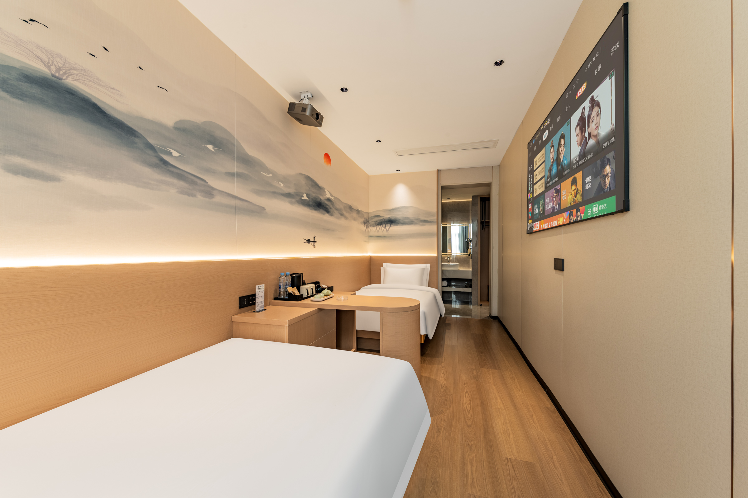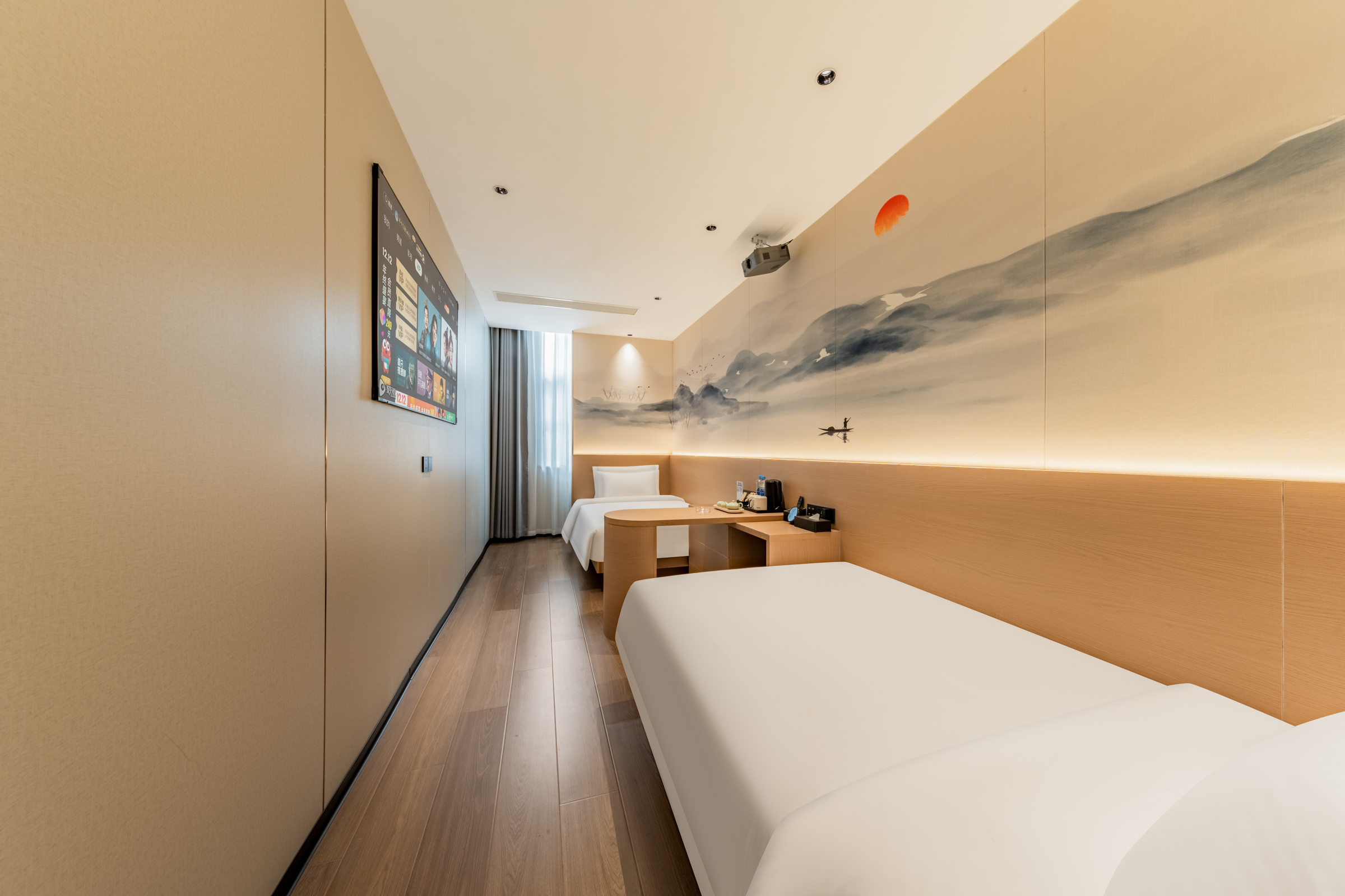 清華宿舍影音雙床房—4K投影儀+100寸幕布