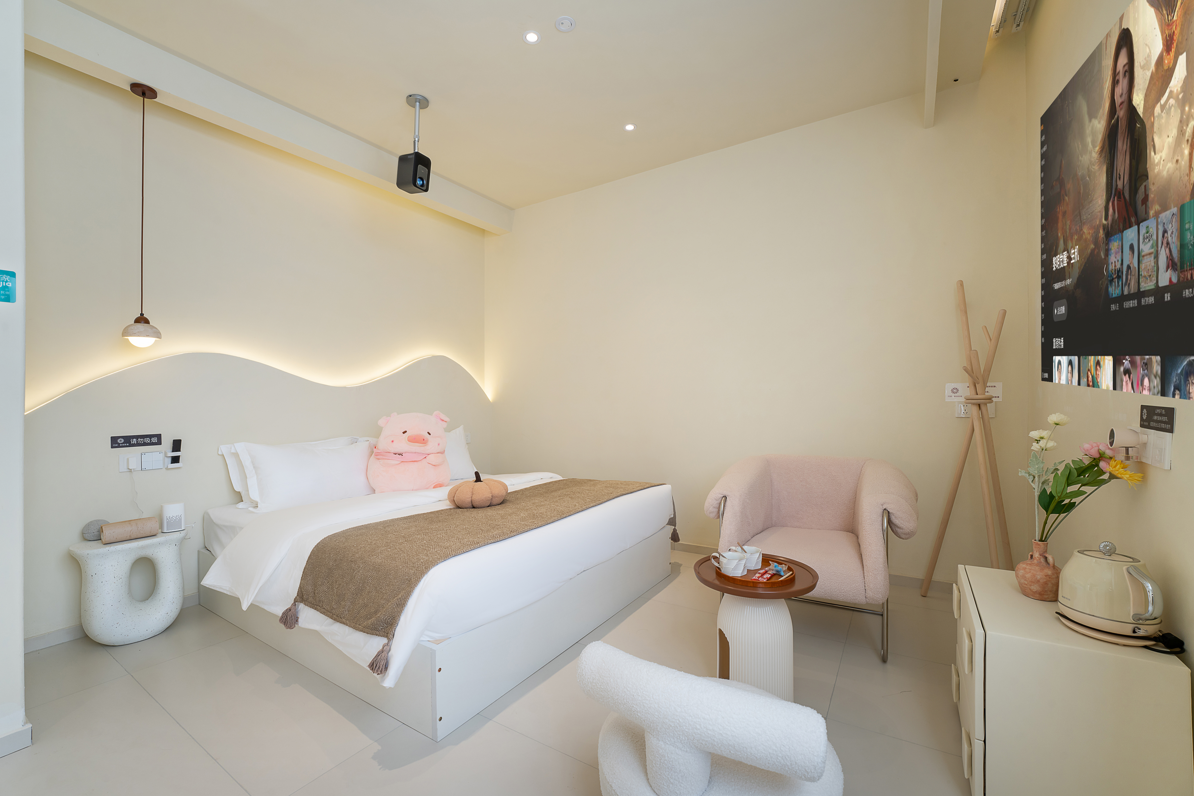 畫·靜謐大床房『全屋米家智能家居【小米投影儀+小米浴霸】+安心無憂床品+英斯漢雅衞浴+徠芬吹風機』
