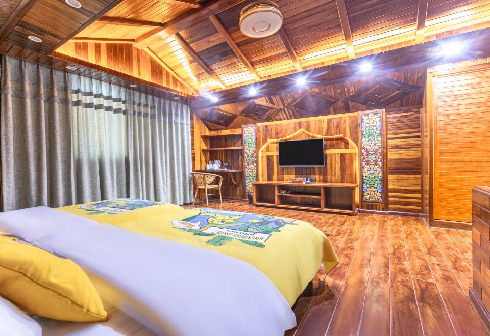 Peacock Dance Loft Family Room (180 ° Peacock Tower View + Dai Crafts + Rosewood Furniture + Thai Latex Deep Sleep Mattress + Smart Toilet + Children's Tent And Toys + Two Bathrooms)