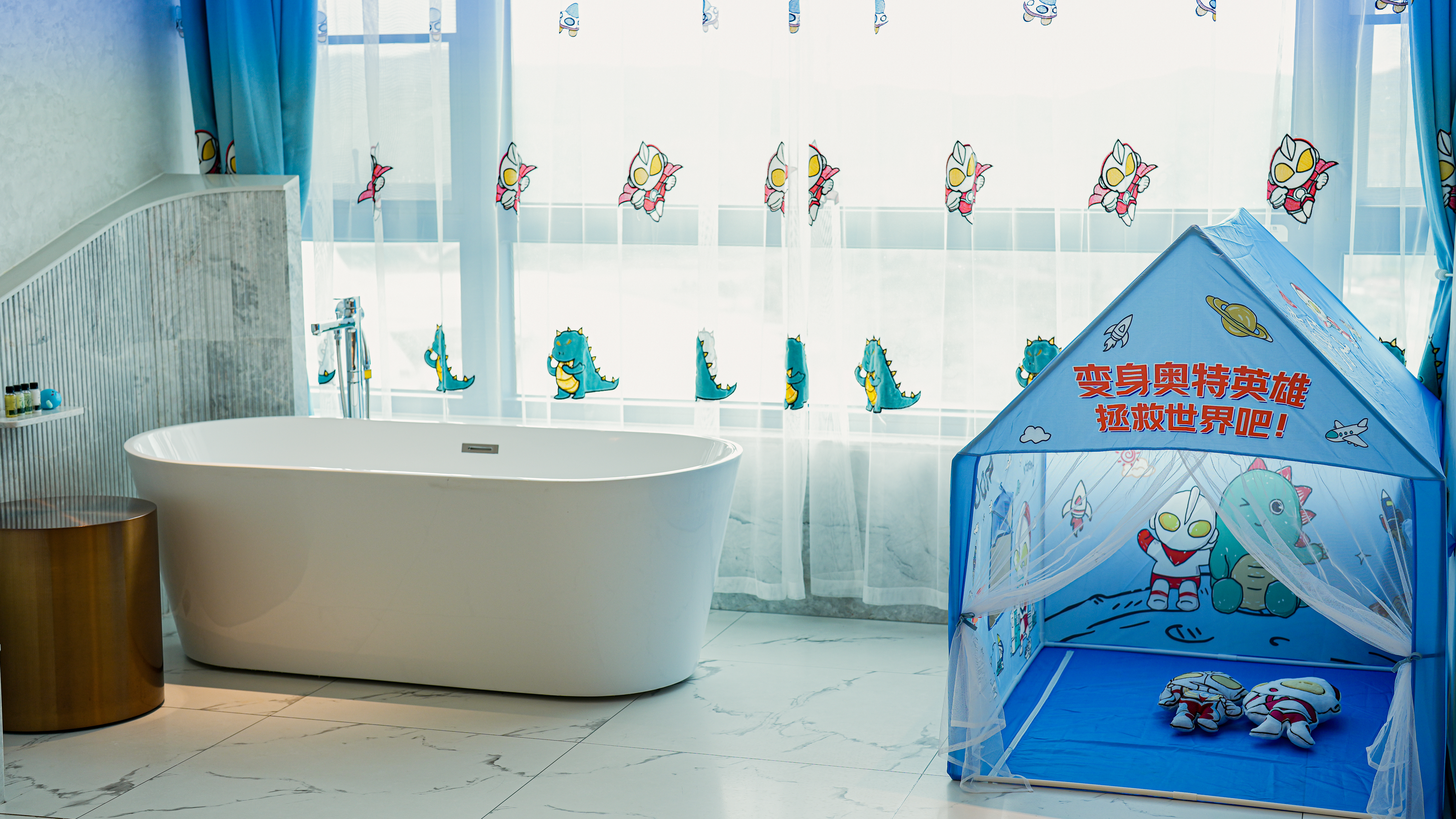 Cool Boy Family Room With Children's Theme And River-View Tub