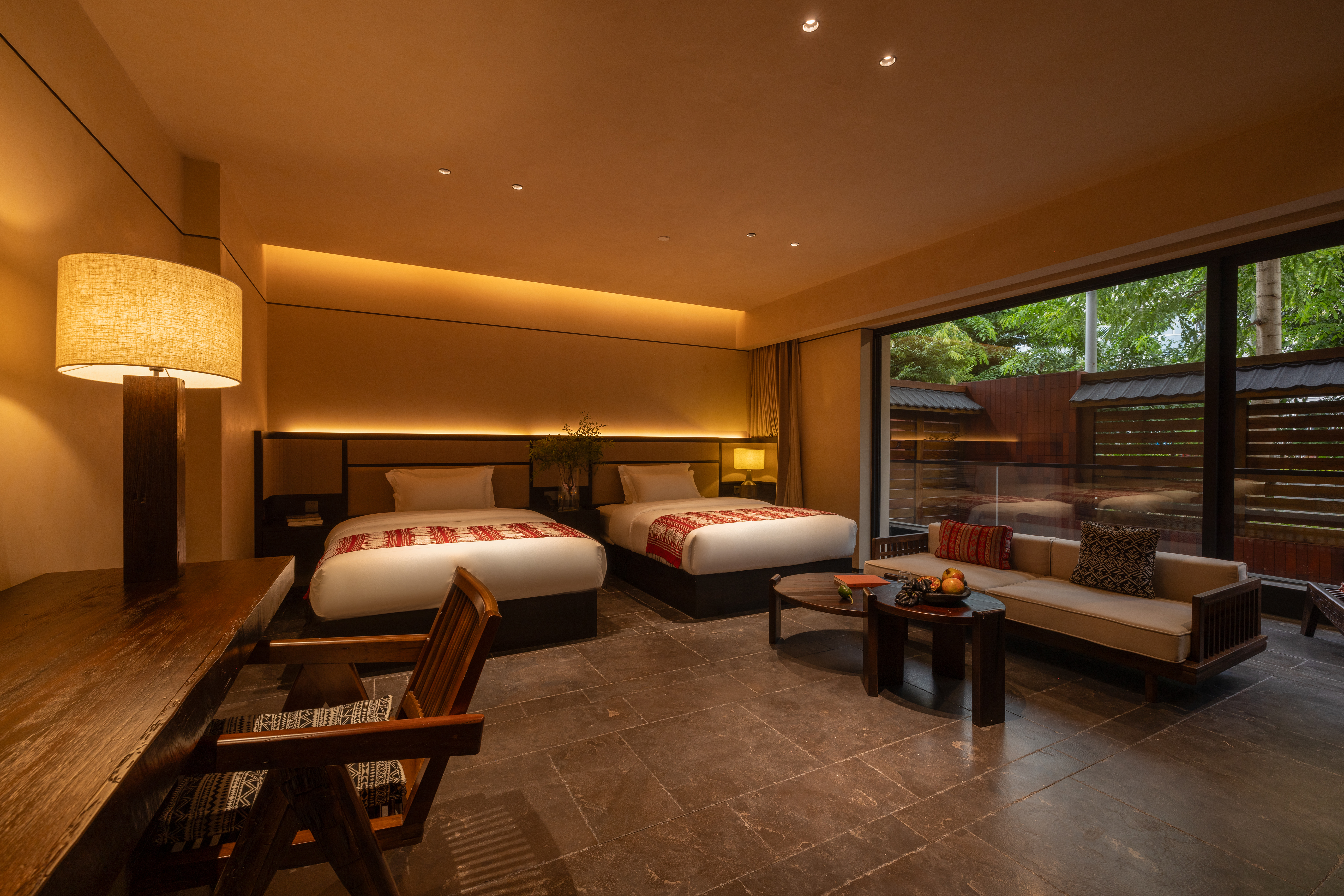 Courtyard View Balcony Twin Bed Room