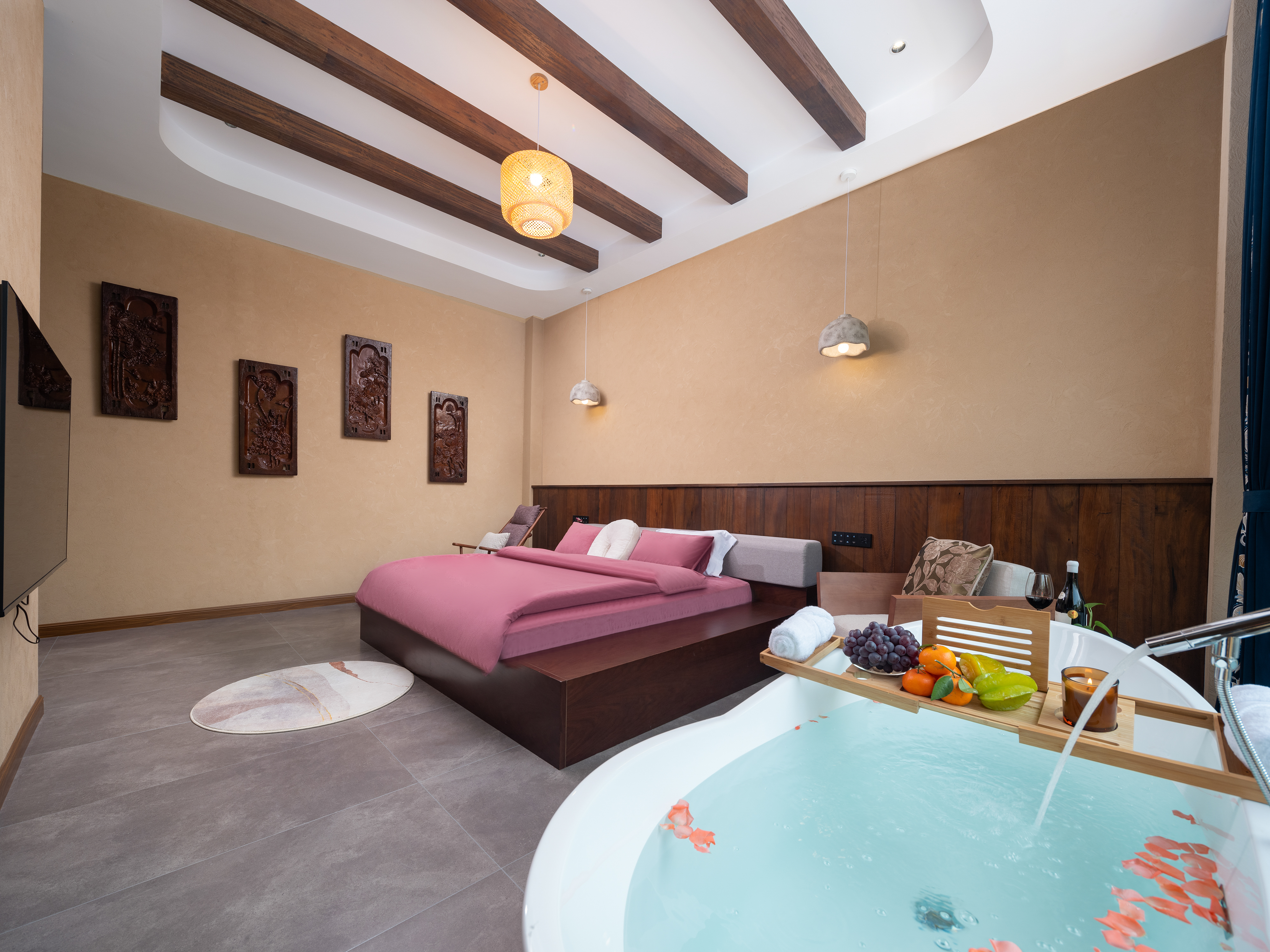 Linyu Jiao Courtyard Supreme Panoramic Modern Double Bed Room