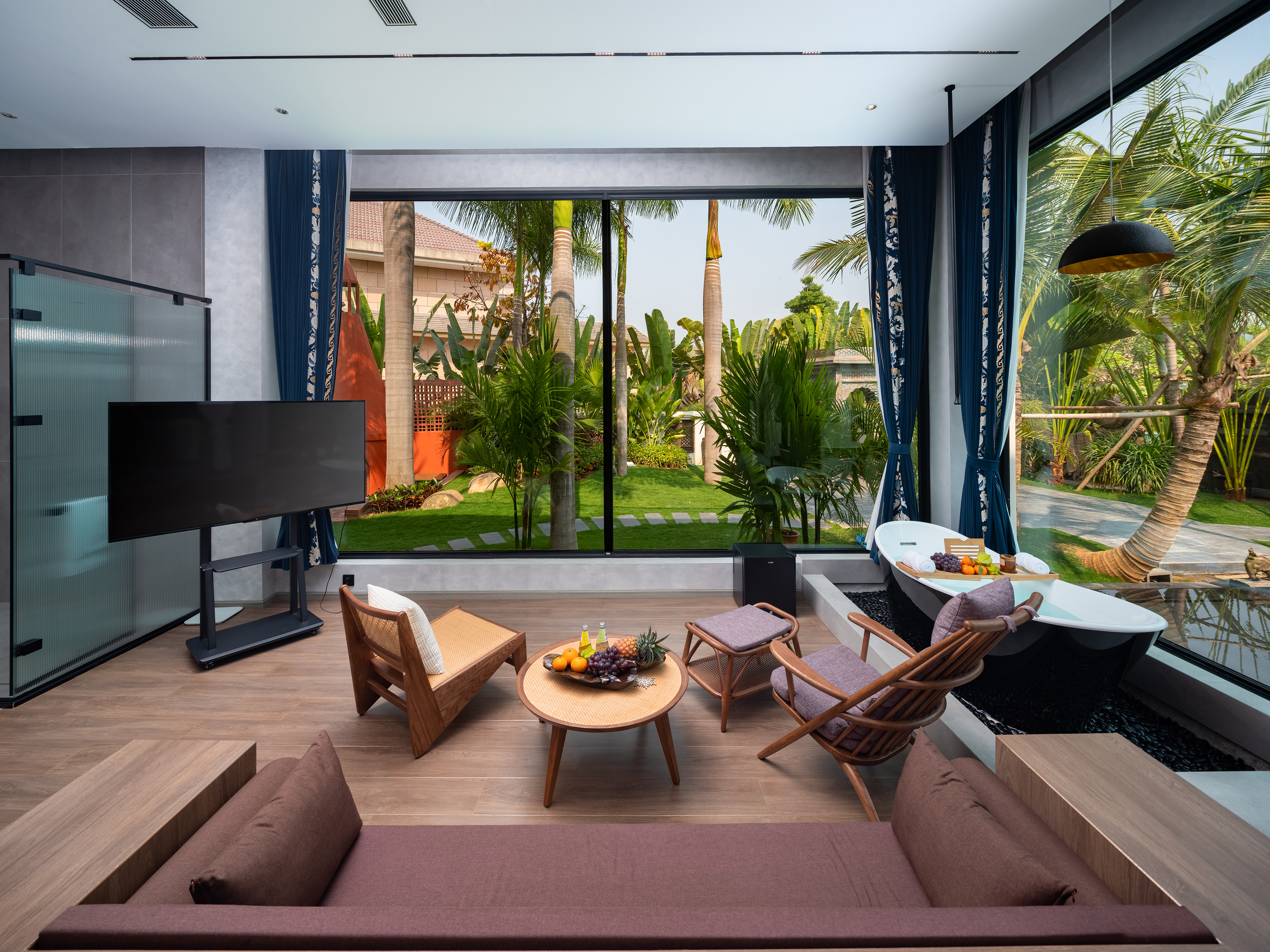 Linyu Yan Garden Terrace Tub Double Bed Room