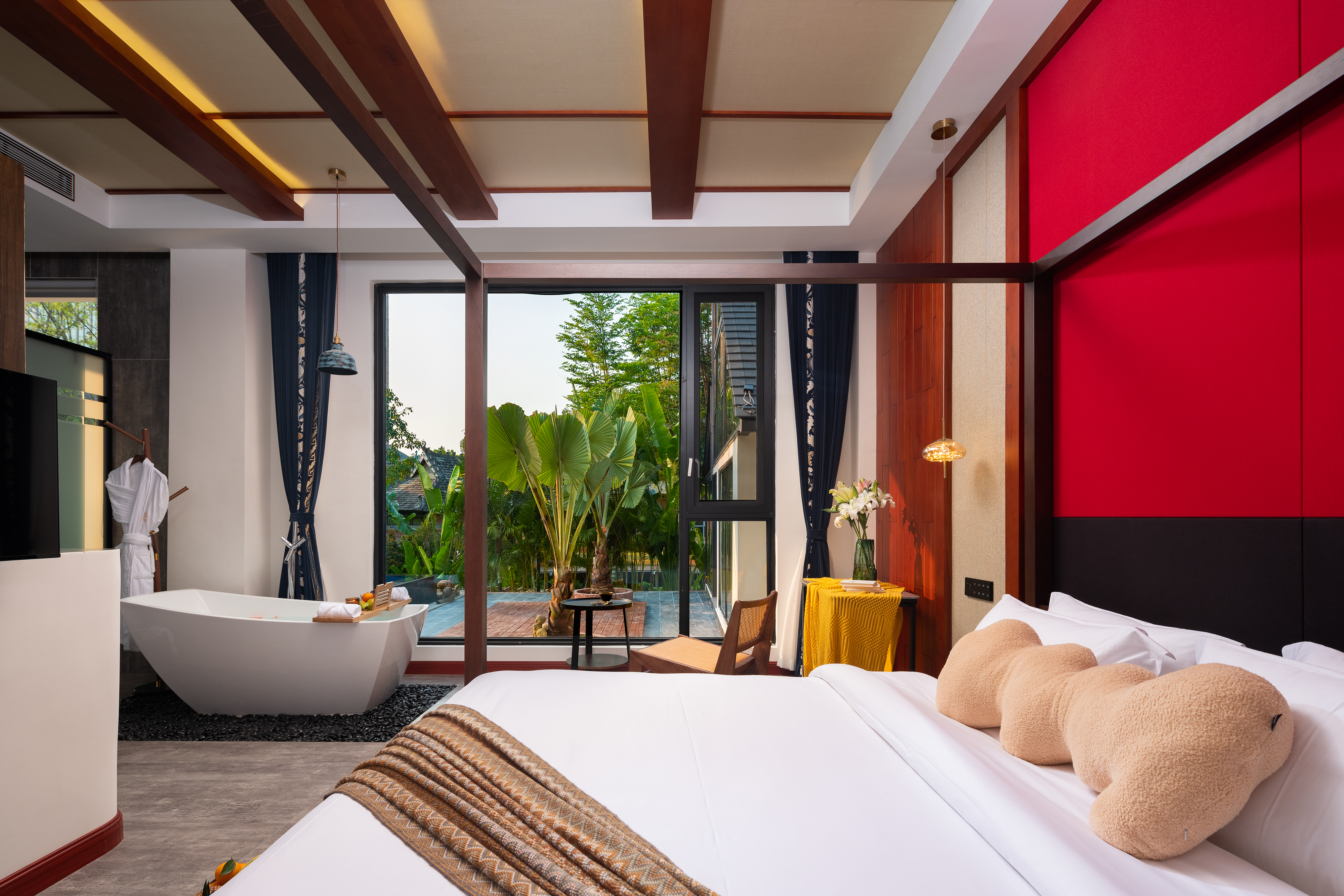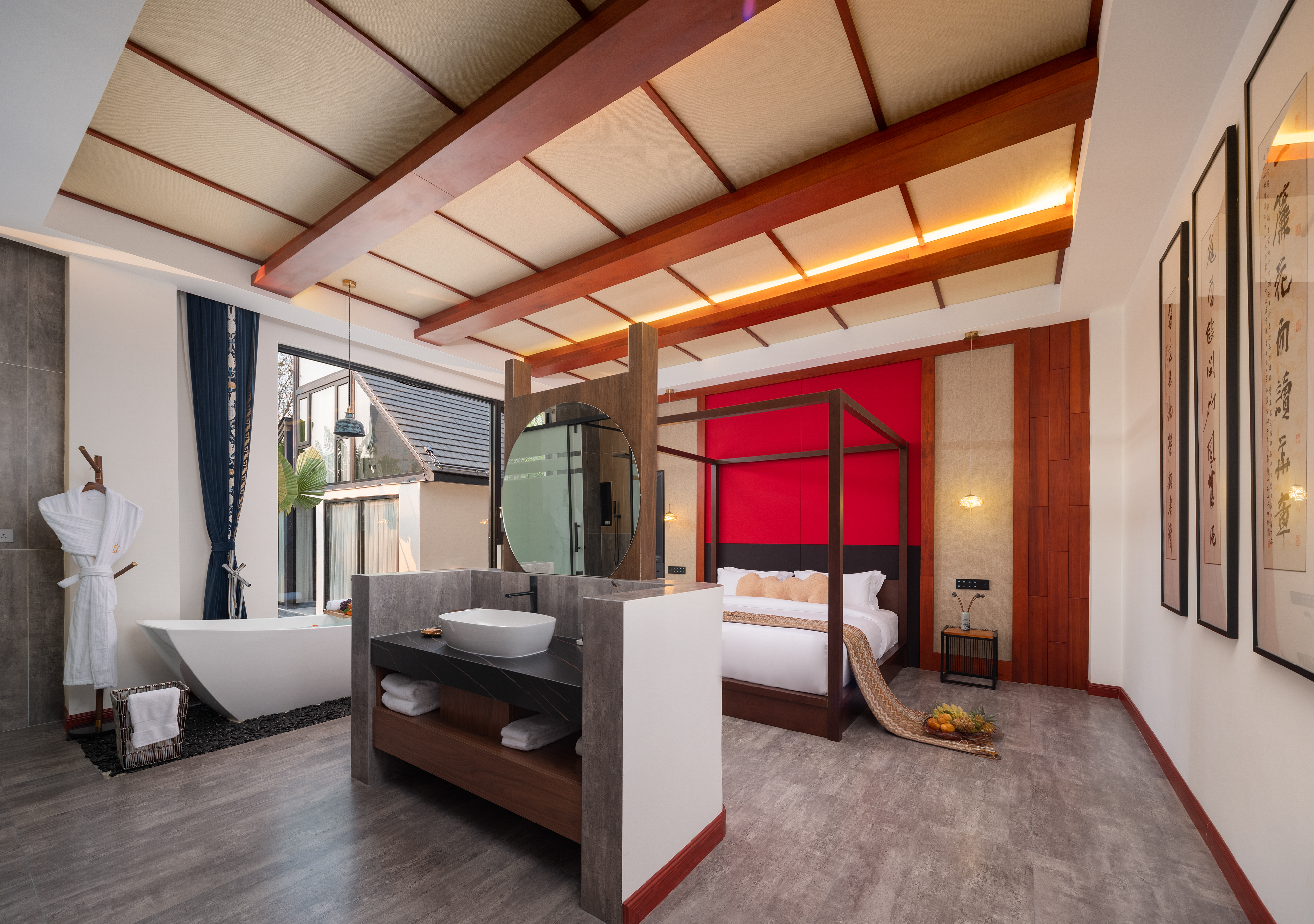 Linyu Xi Chinese-Style Minimalist Tub Double Bed Room