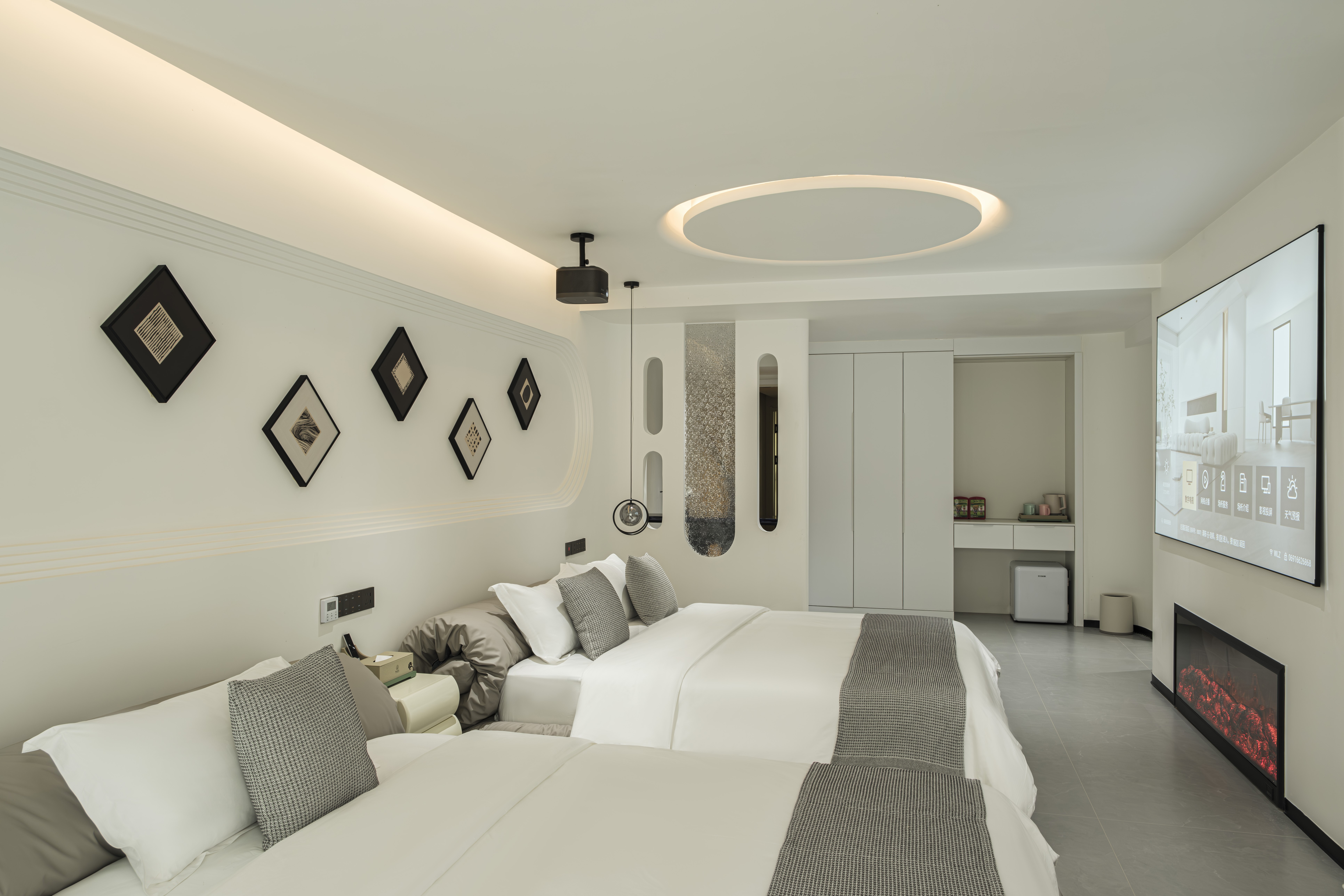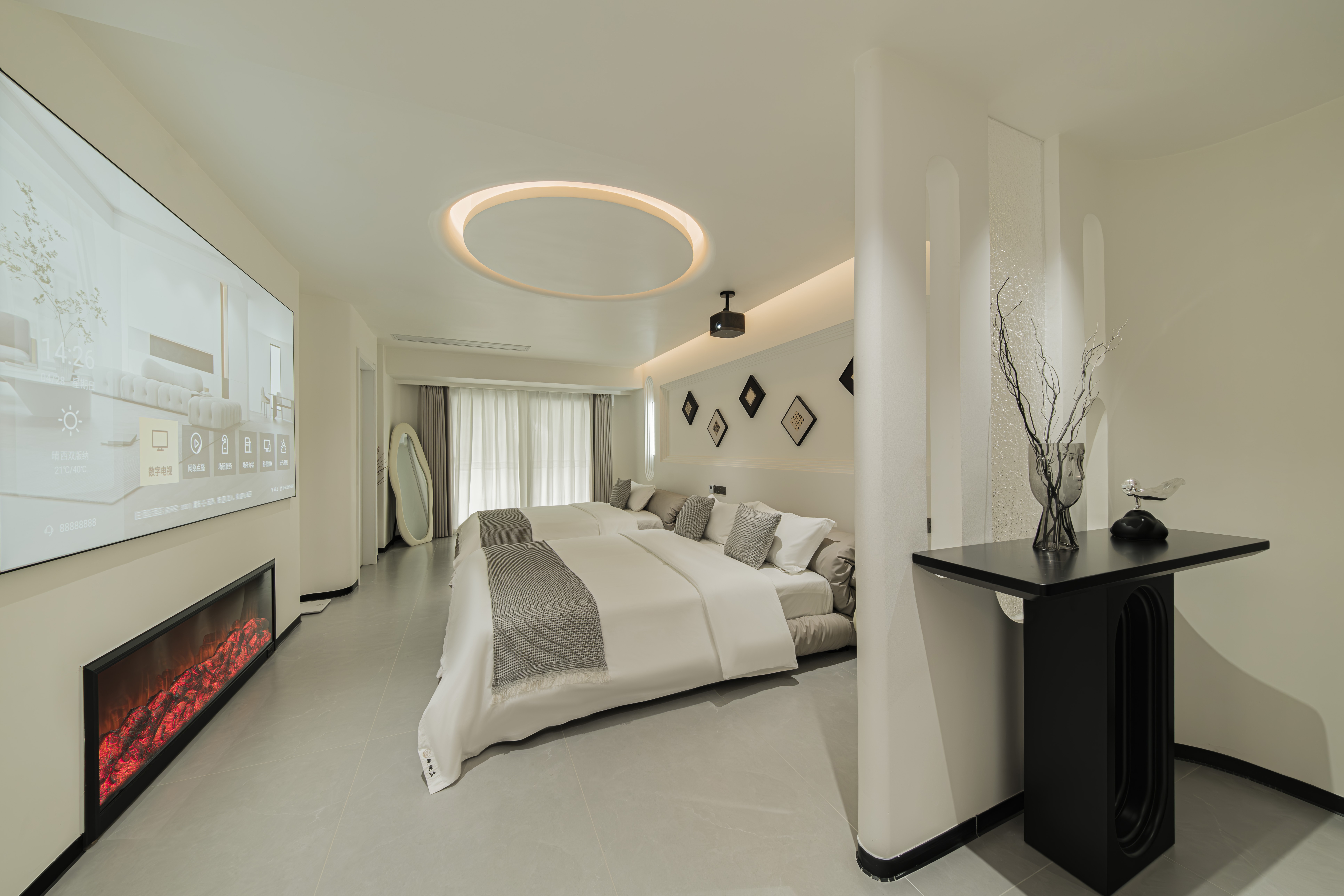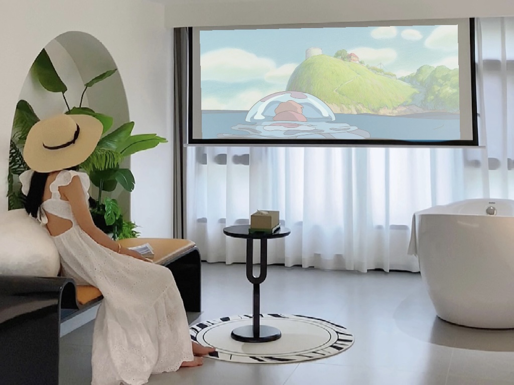 巨幕投影城景浴缸大床房