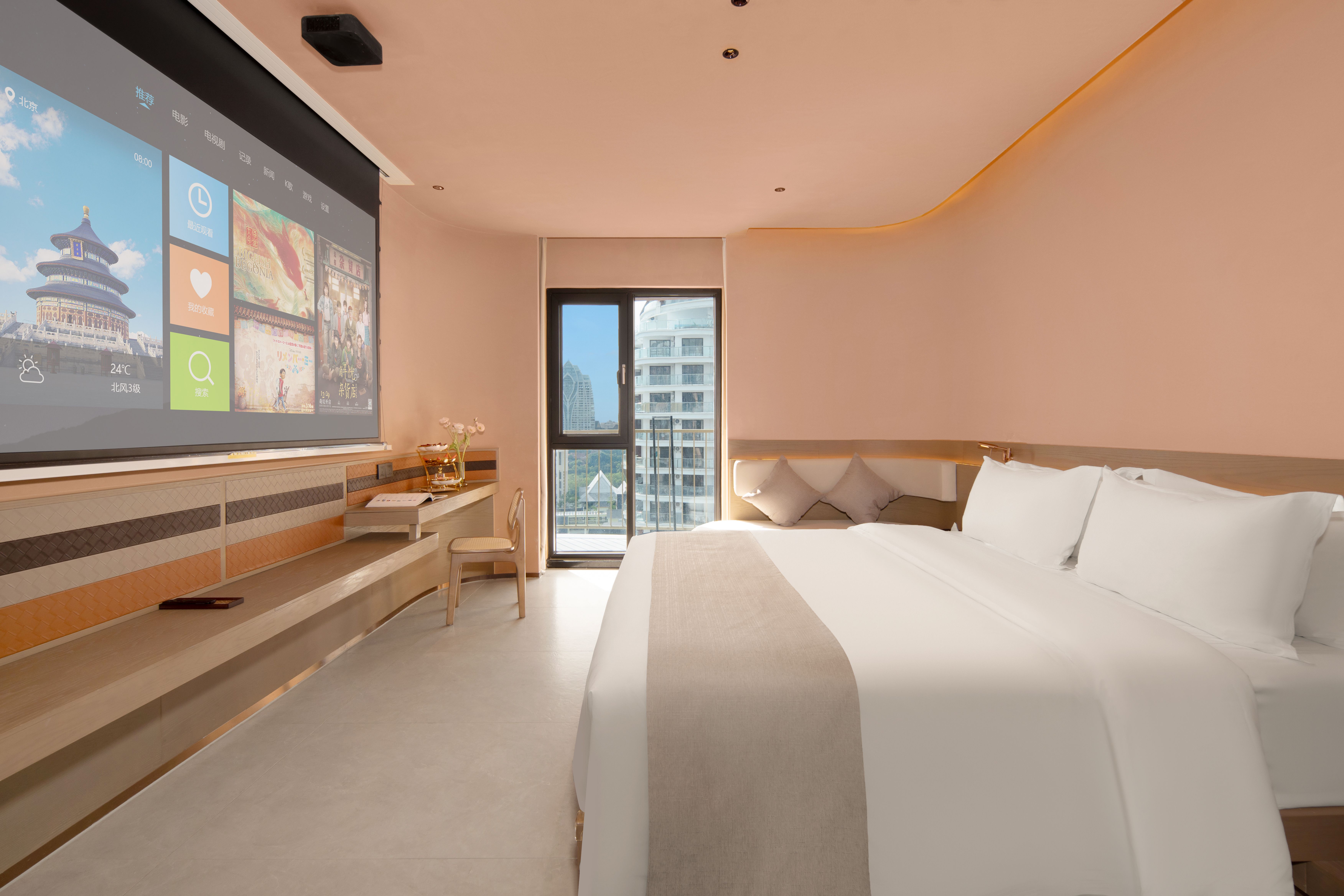 觅星·云端观景浴缸大床房(夜景悠扬+智能马桶+全屋智能+巨幕投影+迷你冰箱)