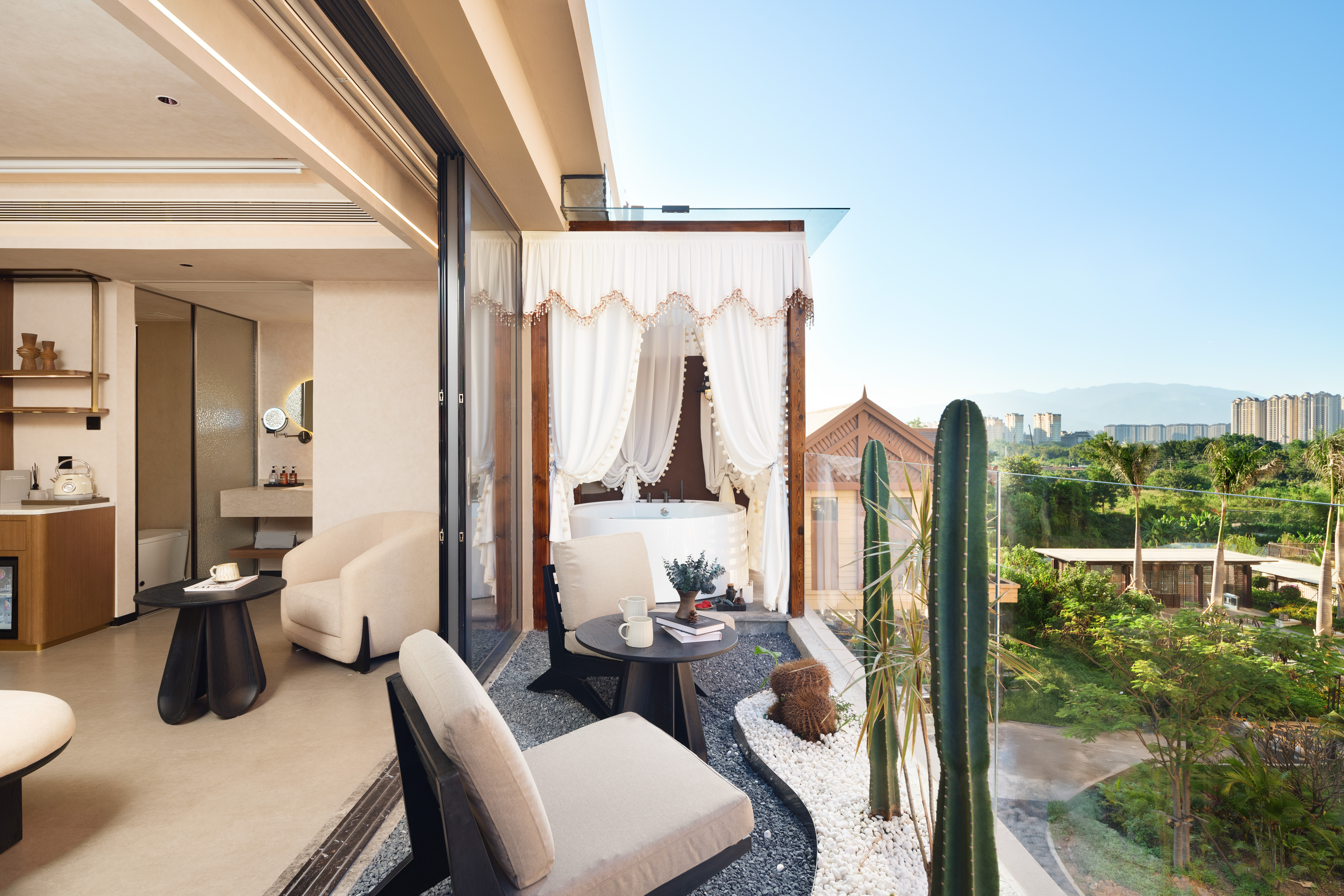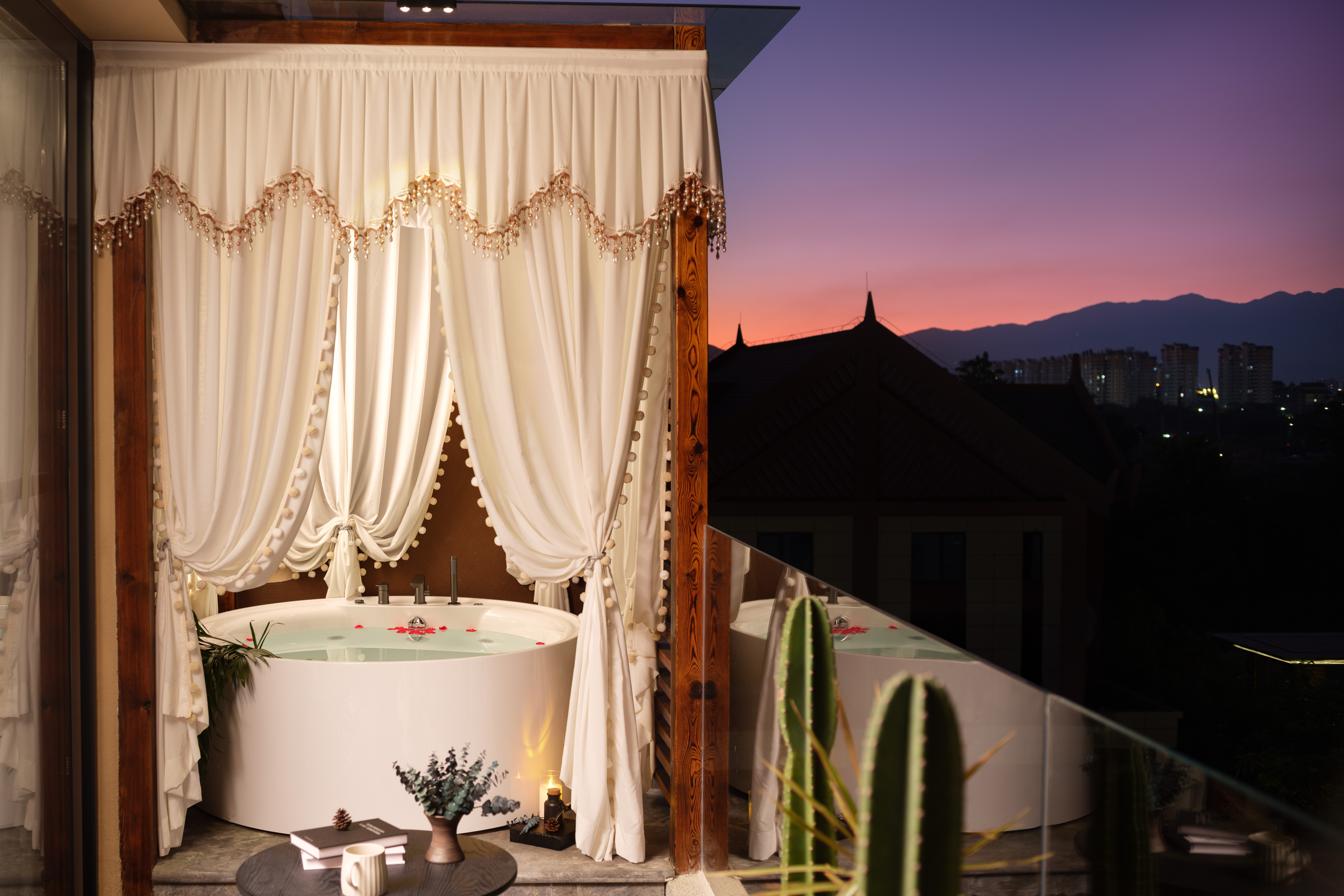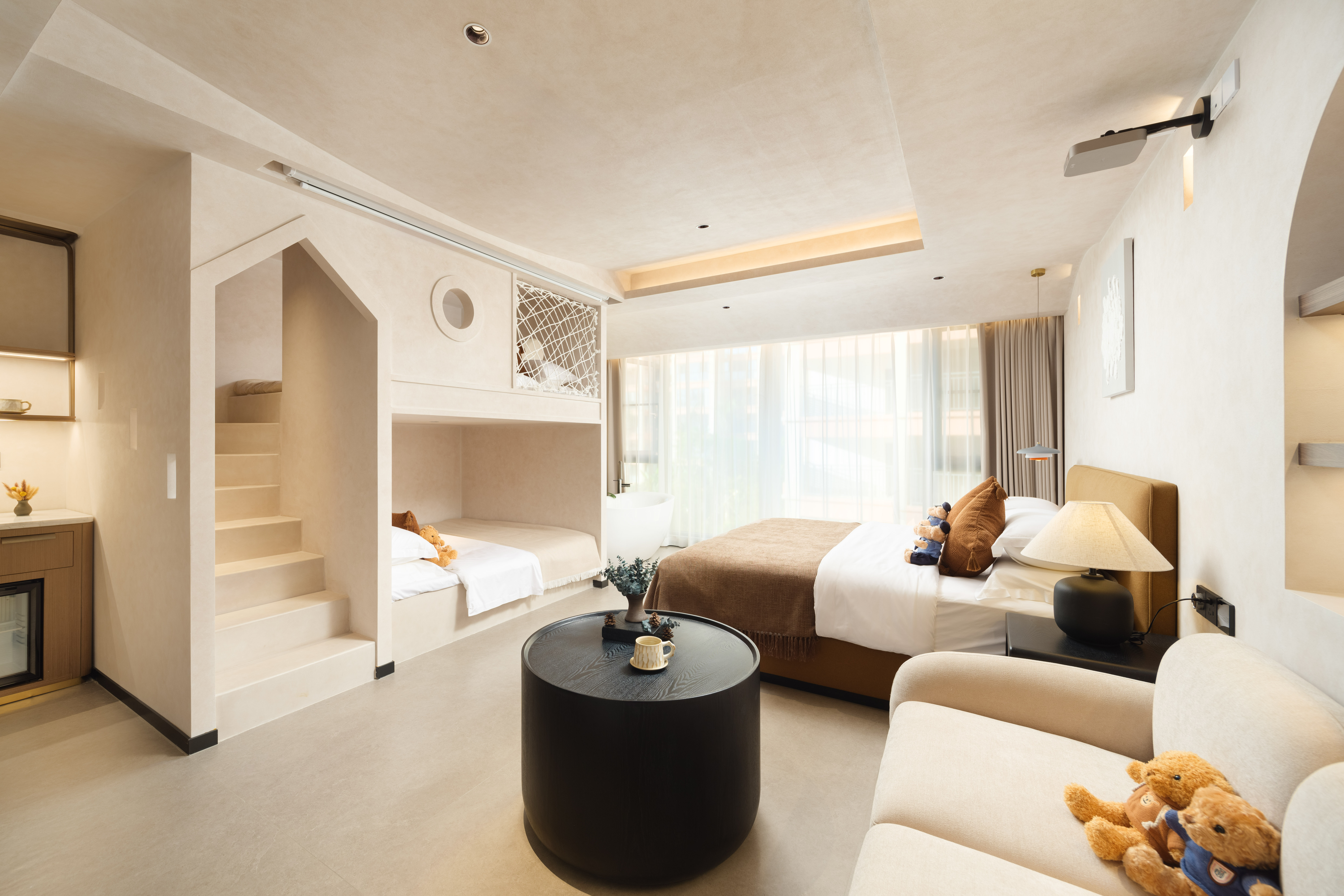 知意.露台浴缸投影拼床房